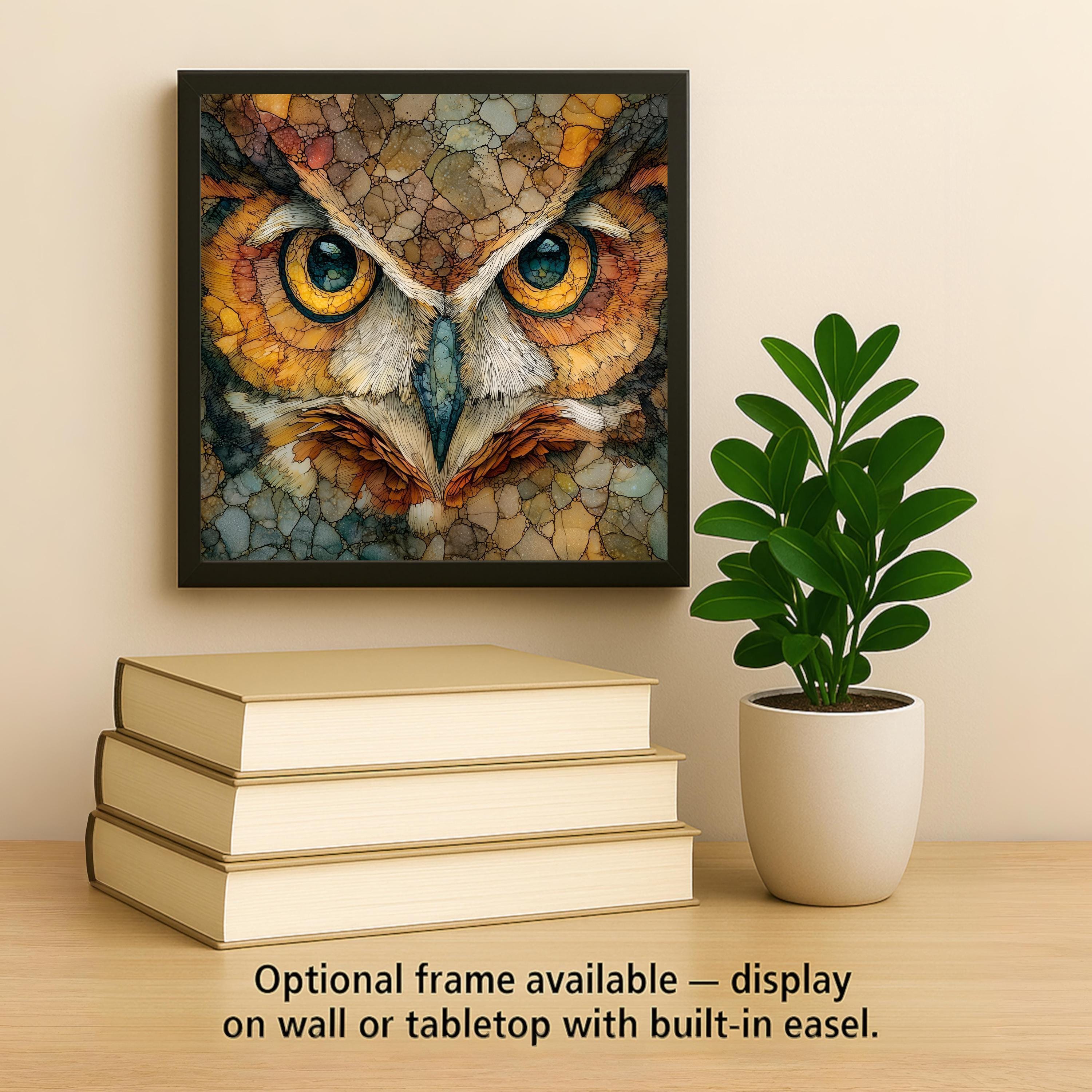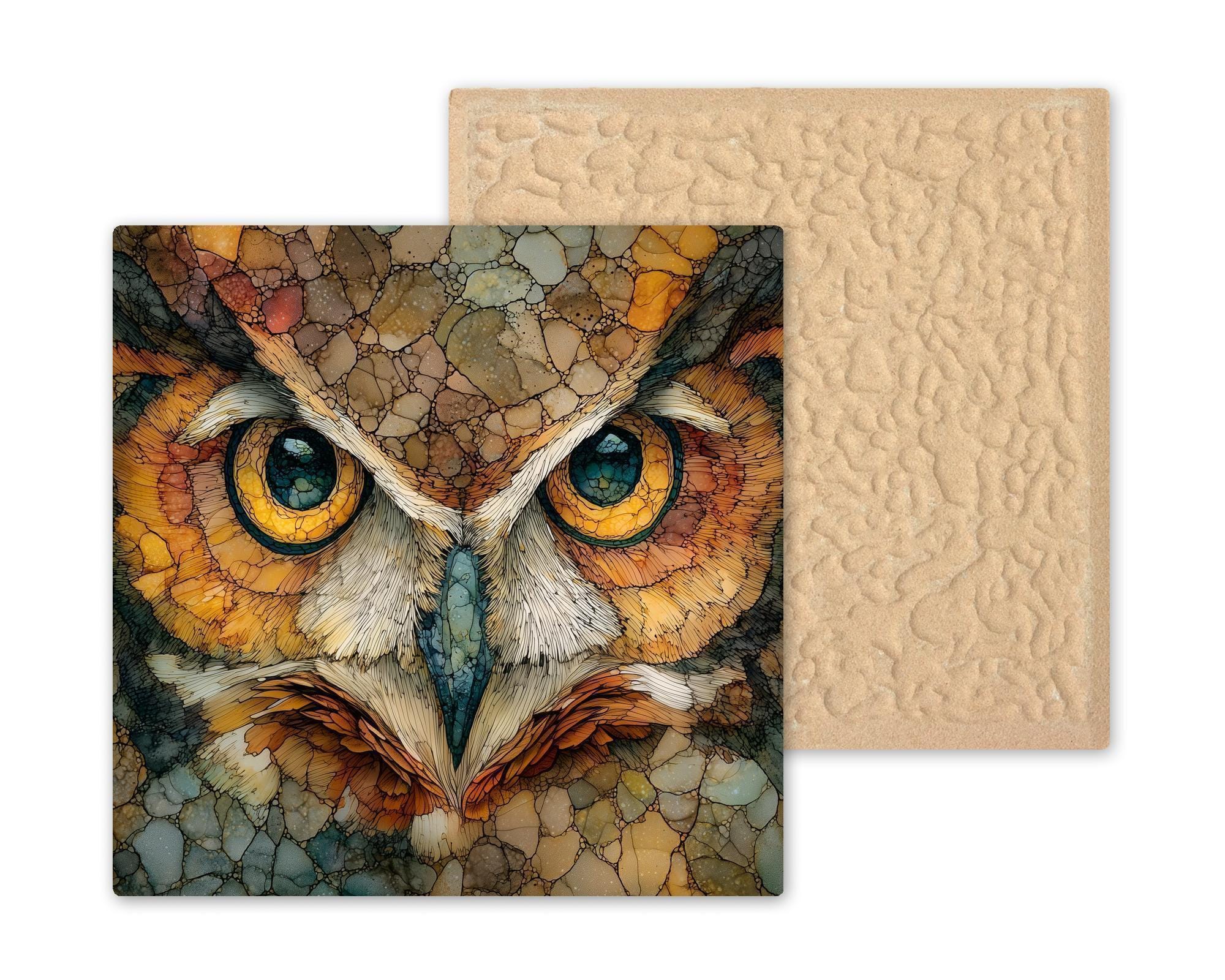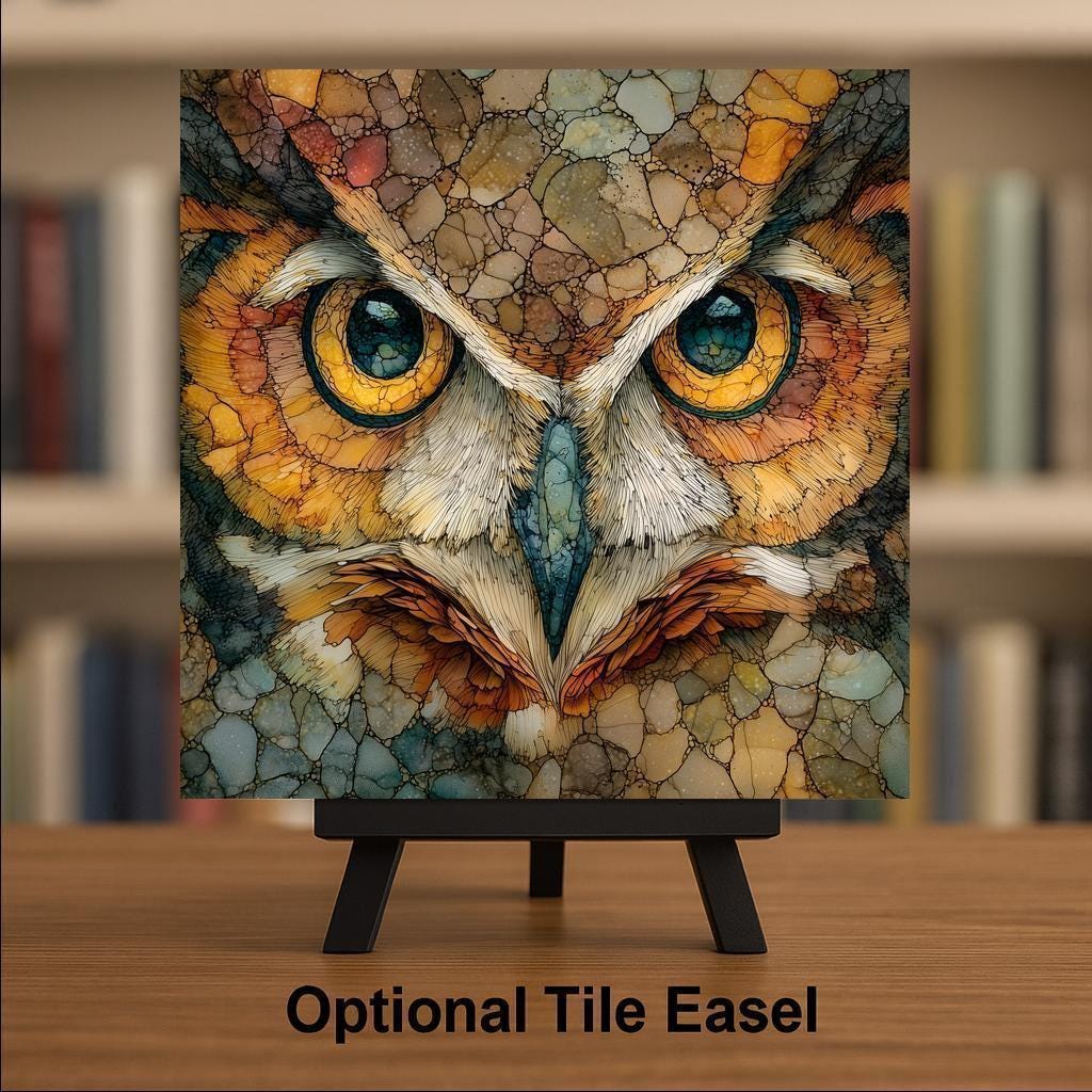 This striking owl decorative tile captures the quiet power and wisdom of the forest in a rich stained glass–inspired style. The owl’s intense golden eyes and layered mosaic textures create a sense of calm focus, making this piece feel alive the moment it’s displayed. Designed for nature lovers, bird enthusiasts, and collectors of meaningful art, this tile brings warmth and depth to any space.