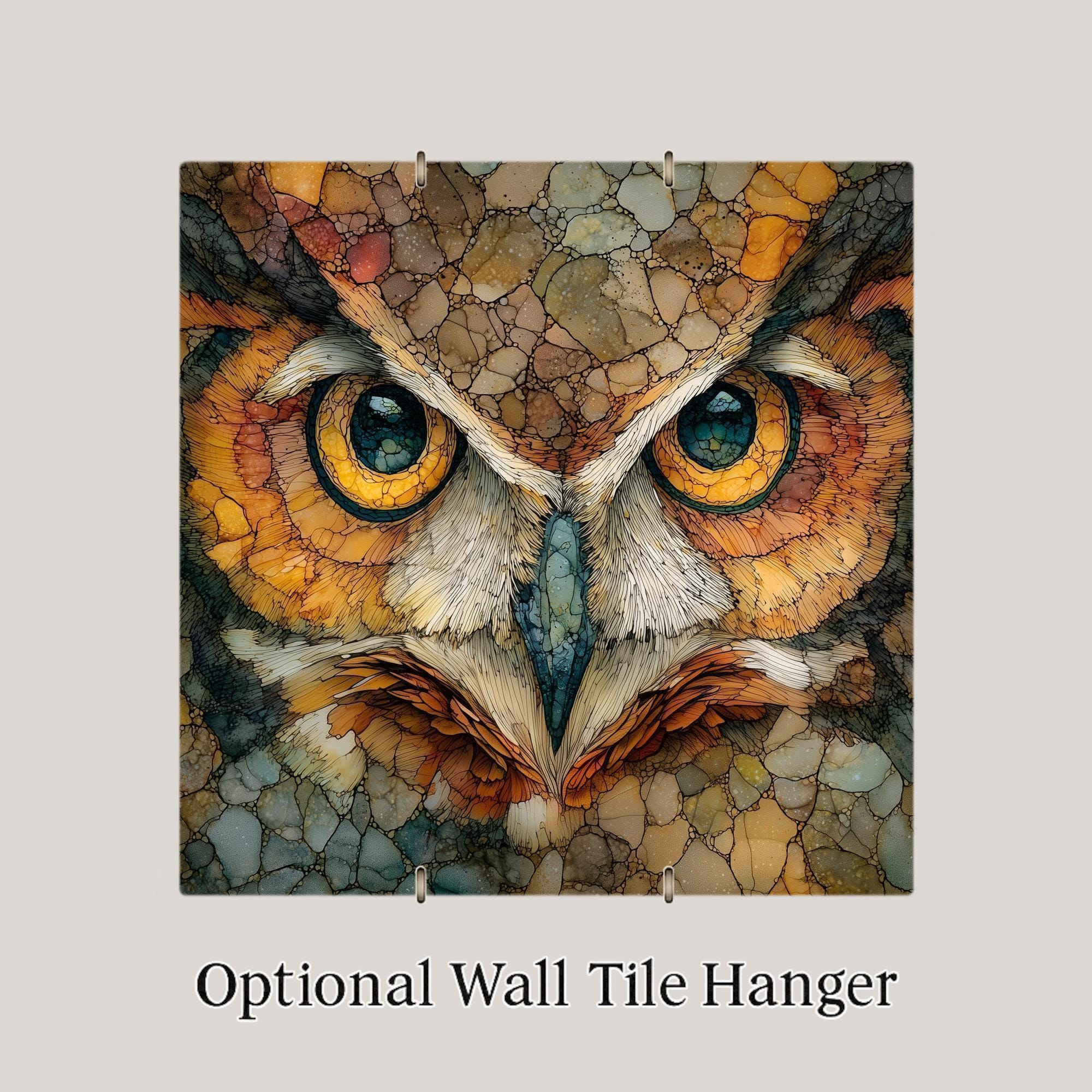 Owls symbolize wisdom, protection, and intuition, making this tile a thoughtful gift for anyone who feels connected to nature or values symbolic art. It works beautifully as a standalone statement piece or as part of a curated gallery wall with other wildlife or nature-themed tiles. The stained glass look gives it a timeless feel that pairs well with rustic, woodland, farmhouse, and cabin-style decor.