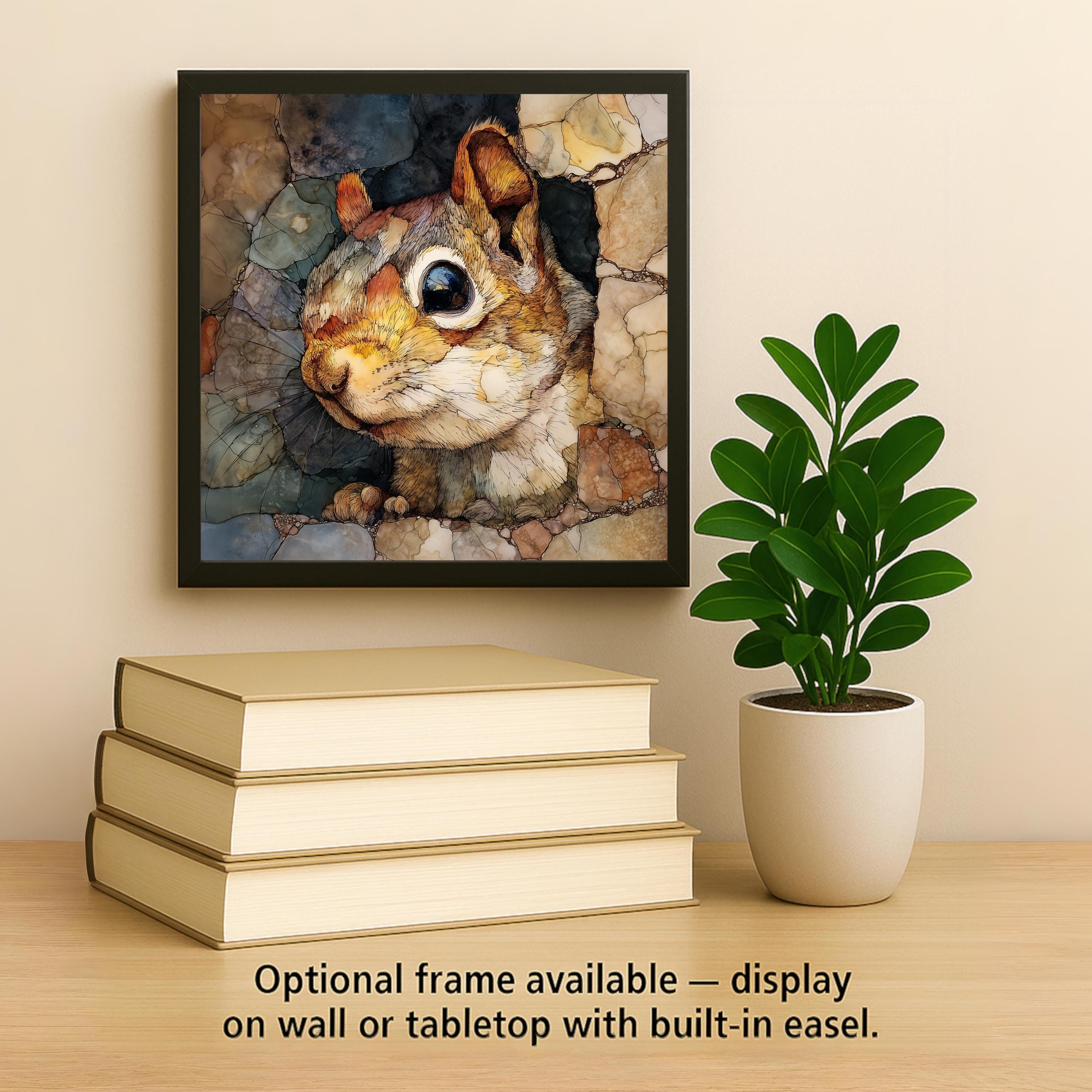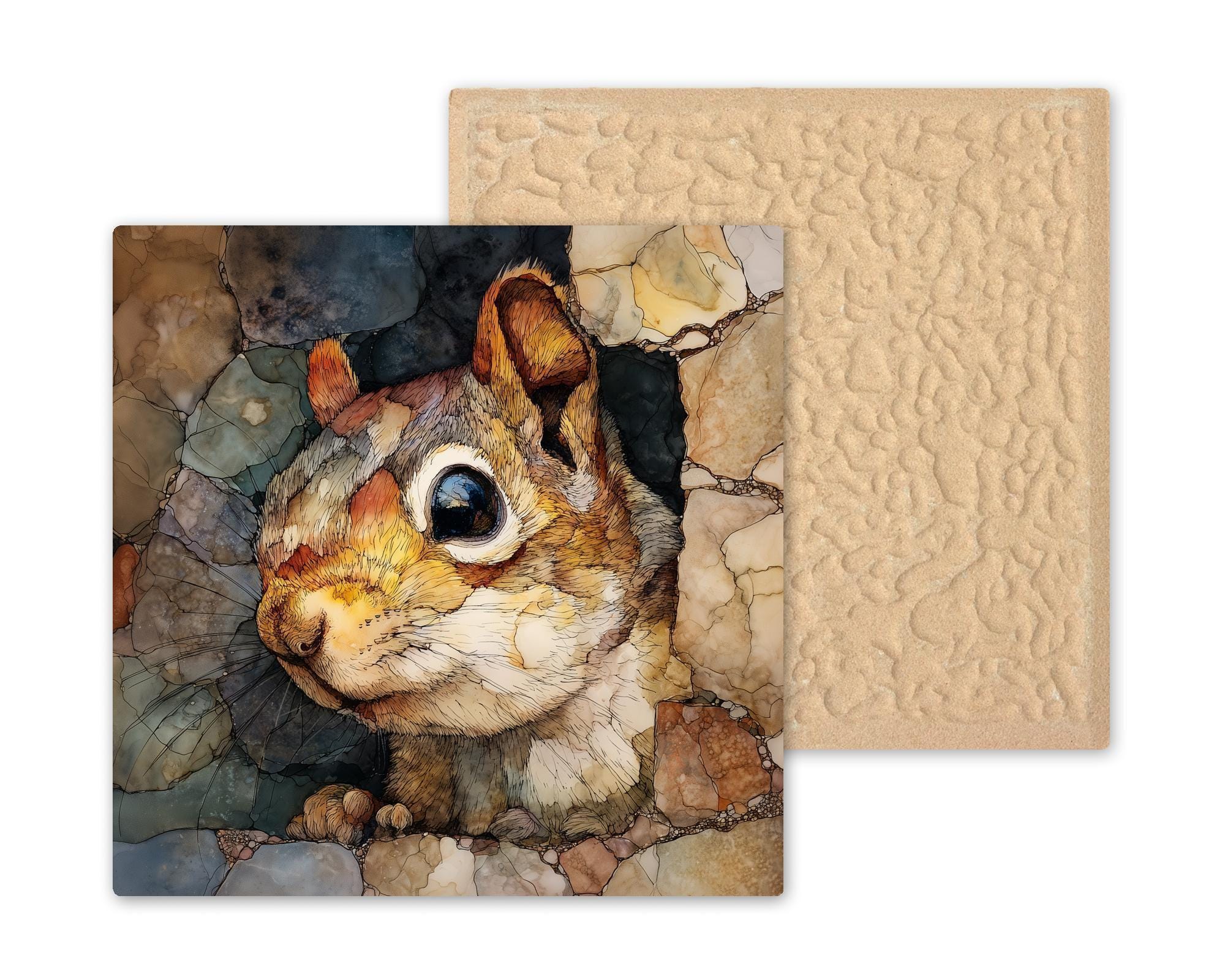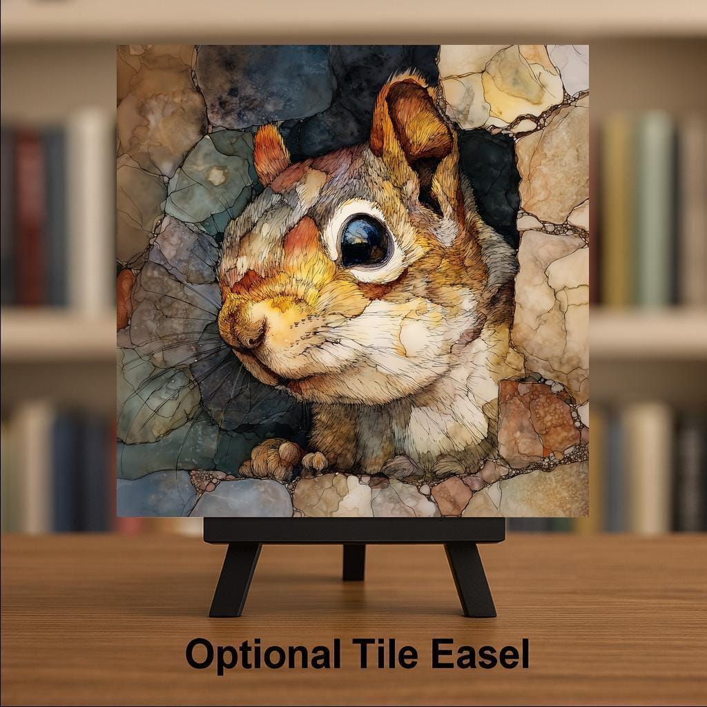 Add a gentle woodland touch to your home with this stained glass–style squirrel decorative tile. The detailed portrait features layered textures and natural colors that highlight the squirrel’s expressive eye and soft fur. The mosaic-style linework gives the piece depth and movement while maintaining a calm, organic feel.