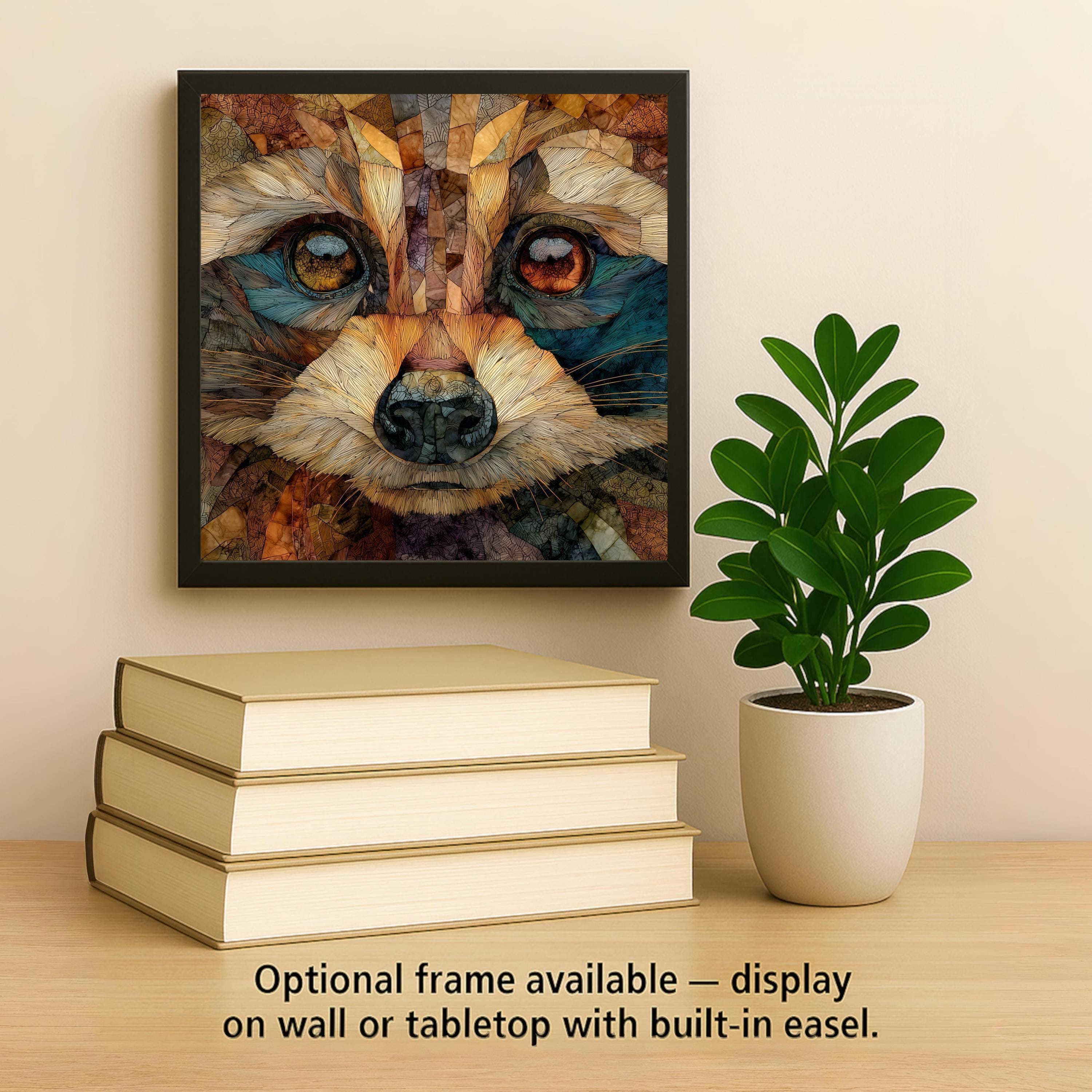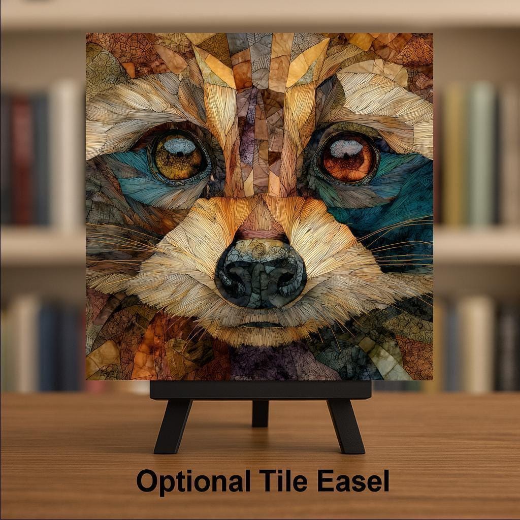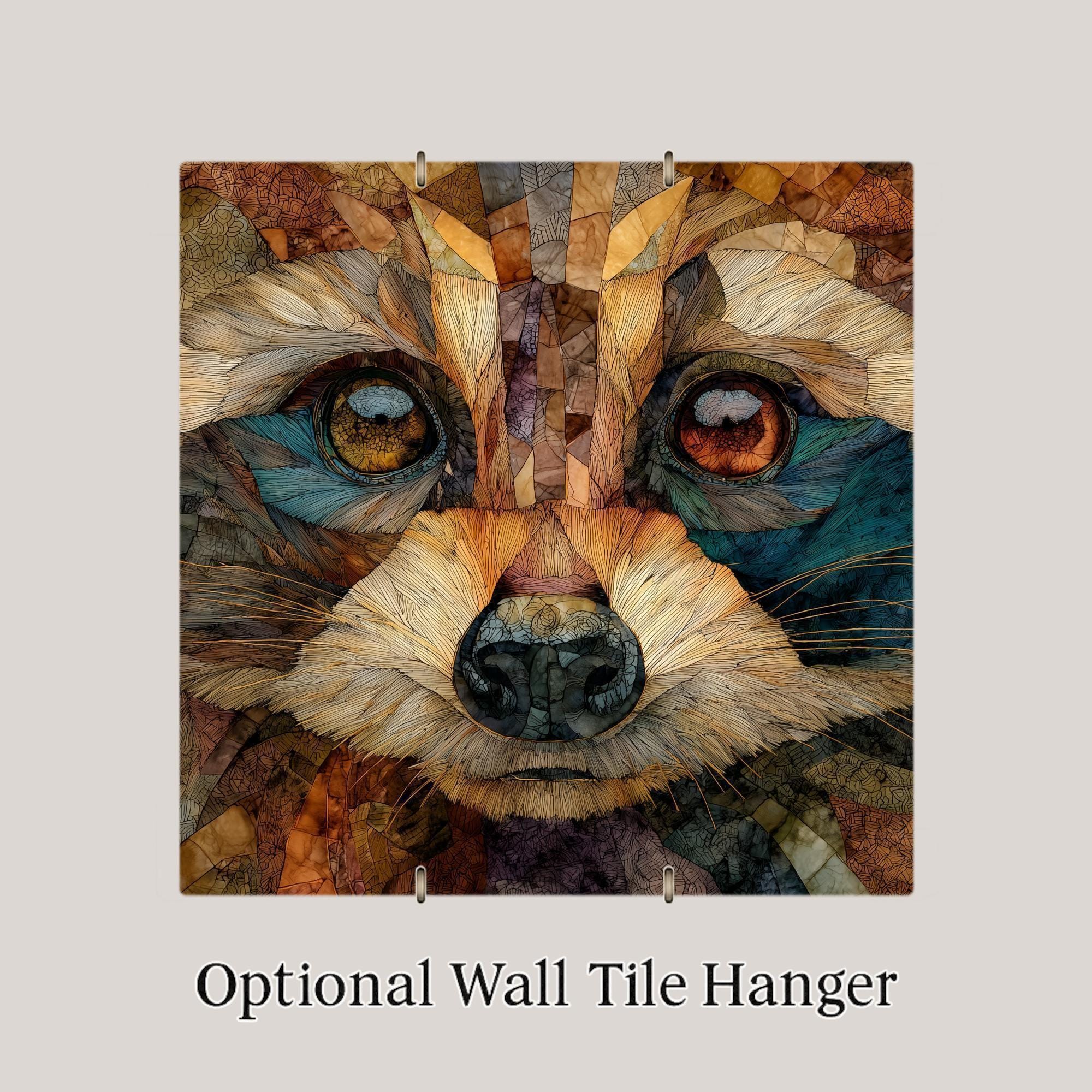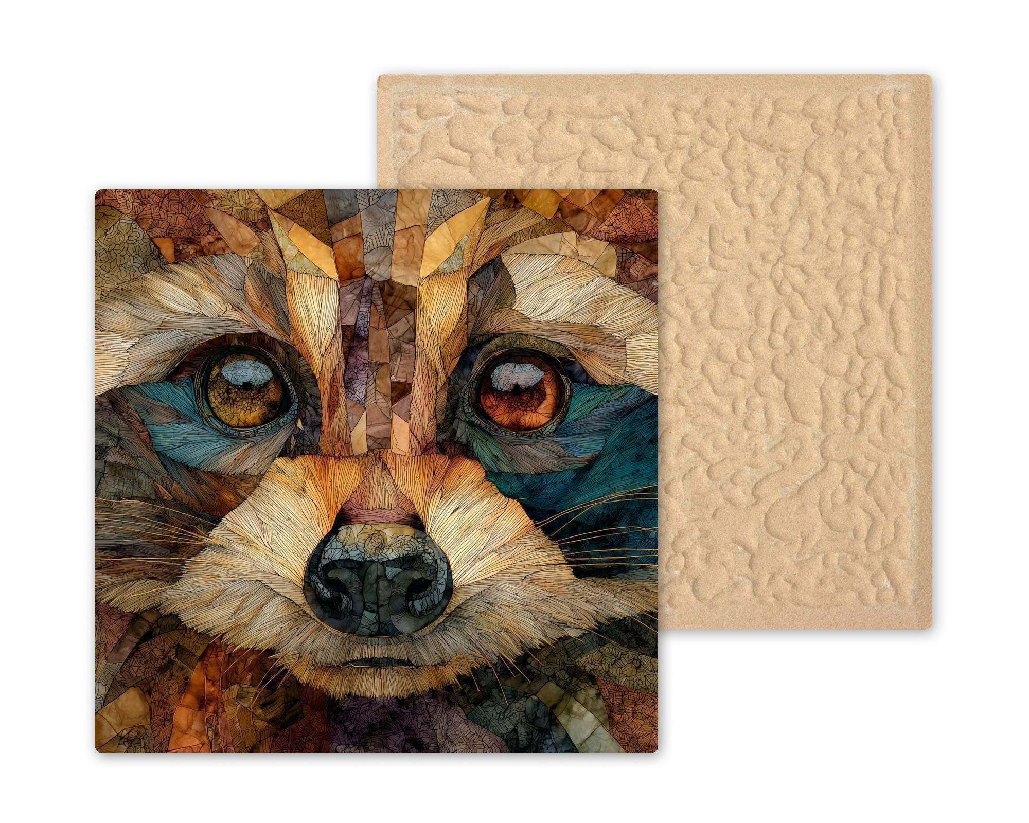 Add a touch of woodland character to your home with this stained glass–style raccoon decorative tile. Layered textures and natural colors come together to form a detailed portrait that highlights the raccoon’s expressive eyes and distinctive markings. The artistic linework gives the tile depth while maintaining a calm, nature-inspired aesthetic.