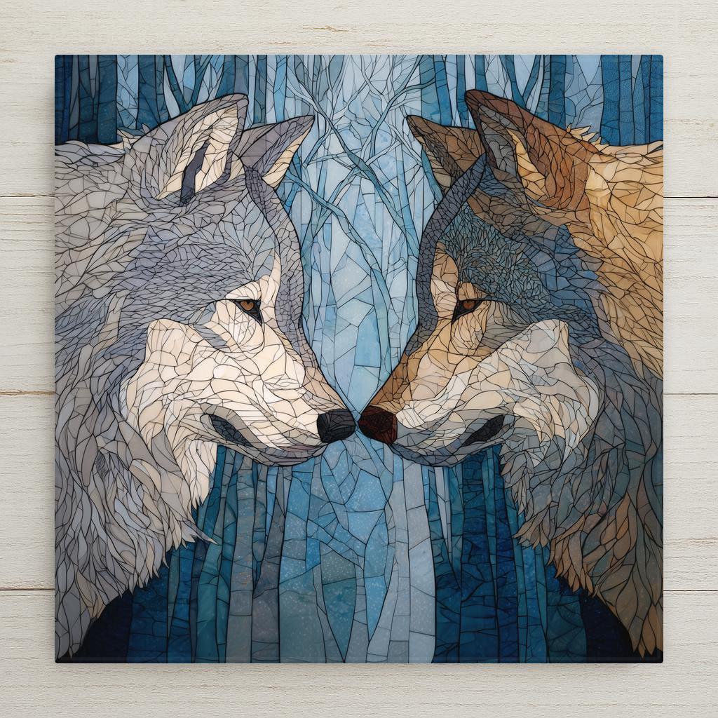 Ideal for couples who value symbolism and emotional connection, this piece is often chosen as an anniversary gift, partner gift, or romantic keepsake. Wolves are known for forming strong pair bonds, making this artwork a natural representation of commitment, trust, and shared life paths.