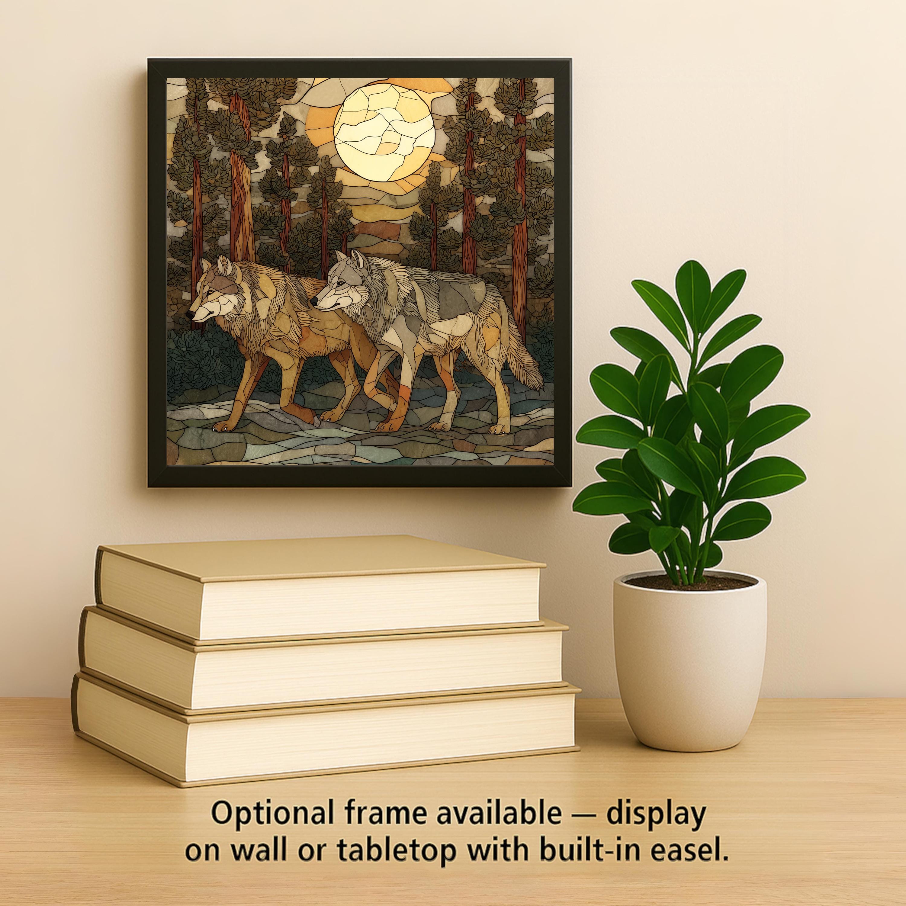 Whether displayed in your home or given as a gift, this wolf pair tile serves as a lasting symbol of connection and shared journeys. Optional accessories—including a tile wall hanger, easel tile stand, cork backing, or premium frame—allow flexible display options.