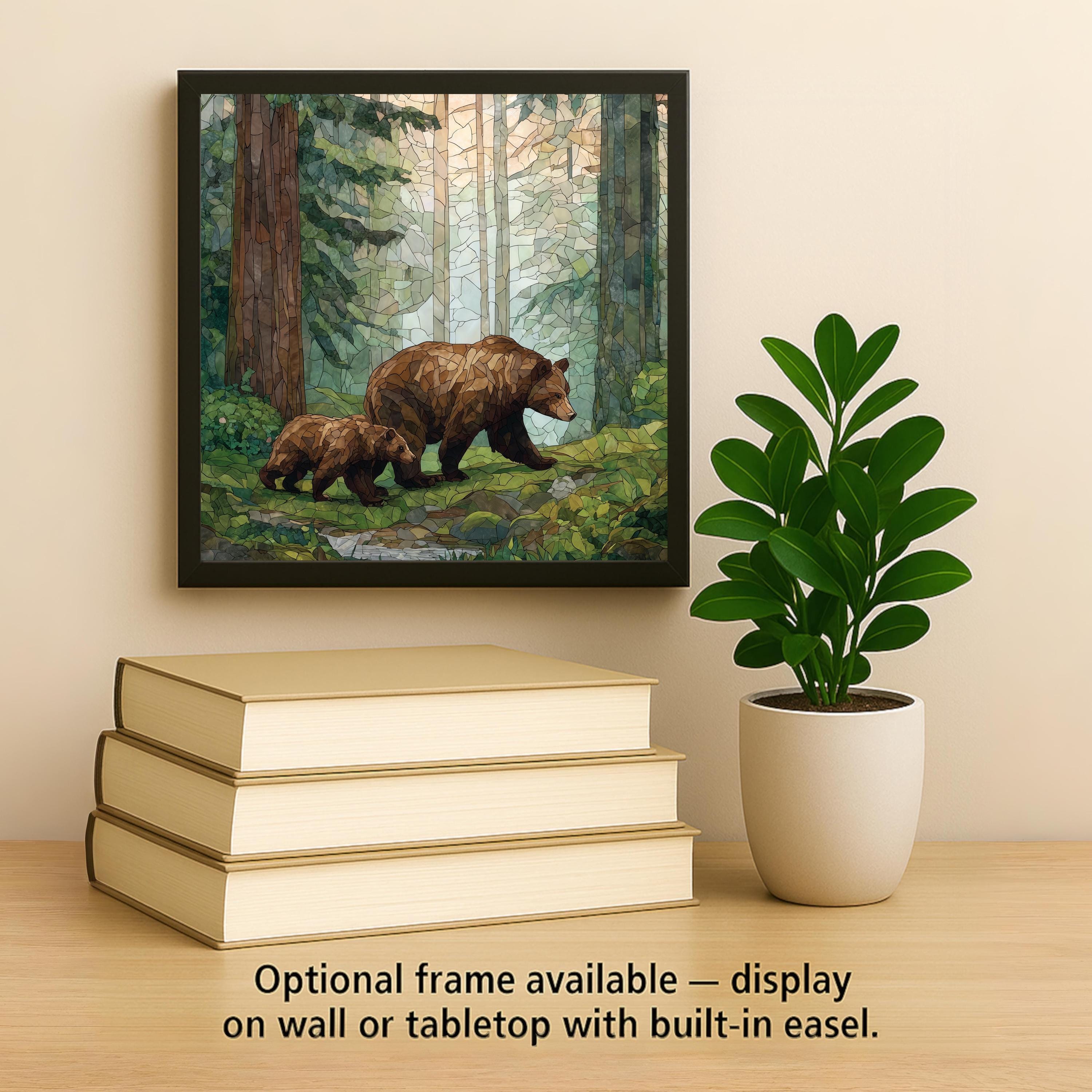 Whether gifted for a family milestone or displayed as a daily reminder of protection and guidance, this bear and cub artwork brings warmth and meaning to any room. Optional accessories—including a tile wall hanger, easel tile stand, cork backing, or premium frame—allow flexible display options.
