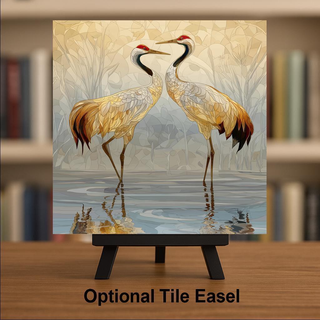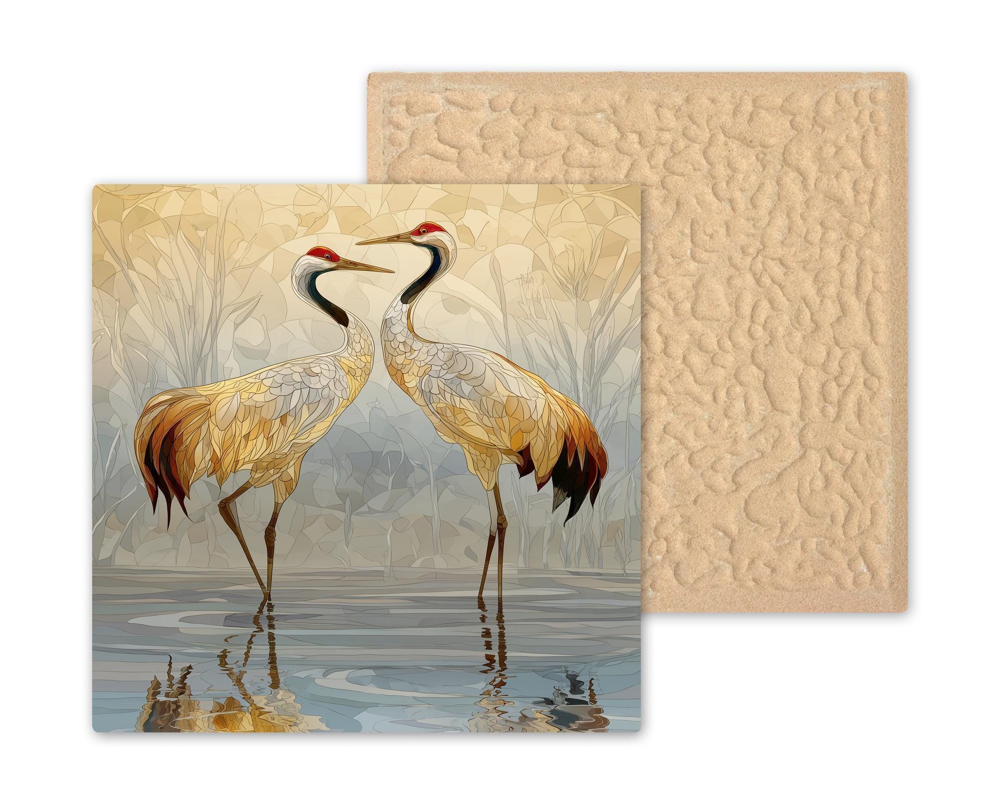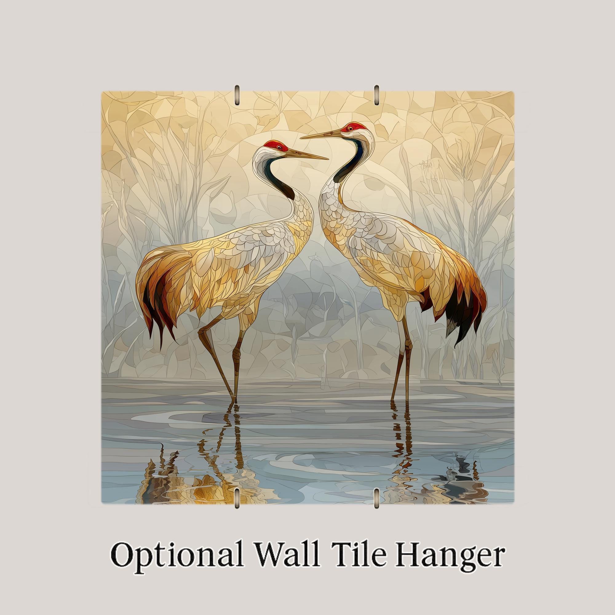 This crane couple ceramic tile wall art is designed for those who appreciate meaningful symbolism woven into elegant home decor. Cranes are revered in many traditions as emblems of fidelity, longevity, and mutual care—qualities reflected in the poised stance and gentle closeness of the two birds featured here. The stained glass-style artwork adds visual richness while maintaining a serene, balanced composition that feels timeless rather than trendy.