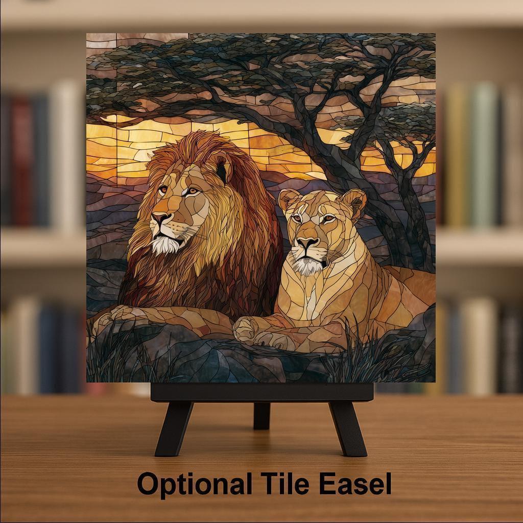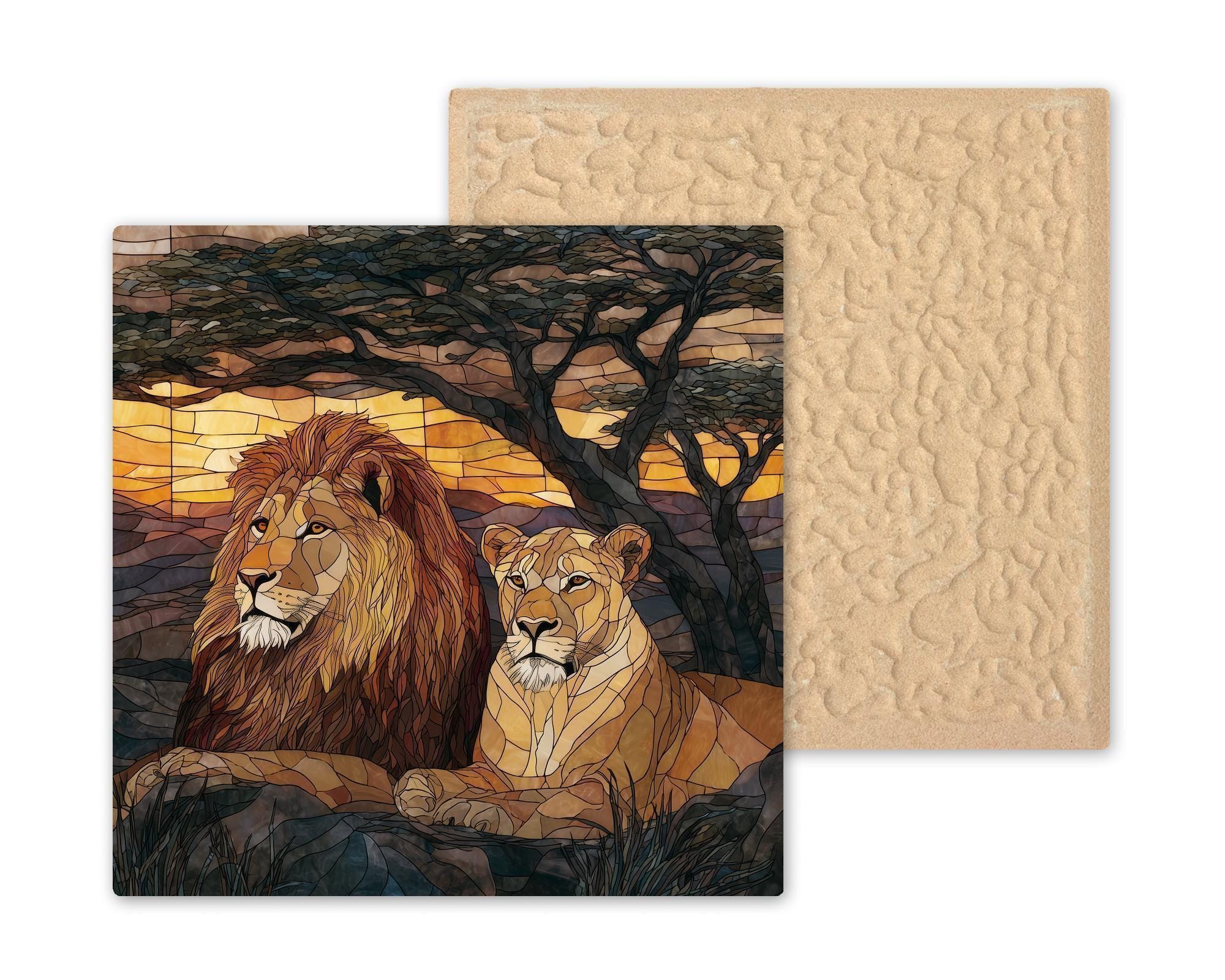 Bring the timeless symbolism of the wild into your space with this Lion Couple Ceramic Tile Wall Art. The paired lions reflect unity, guardianship, and enduring partnership—values celebrated across cultures and generations. Their relaxed yet watchful posture conveys confidence and trust, making this piece especially meaningful for couples, milestones, and shared journeys.