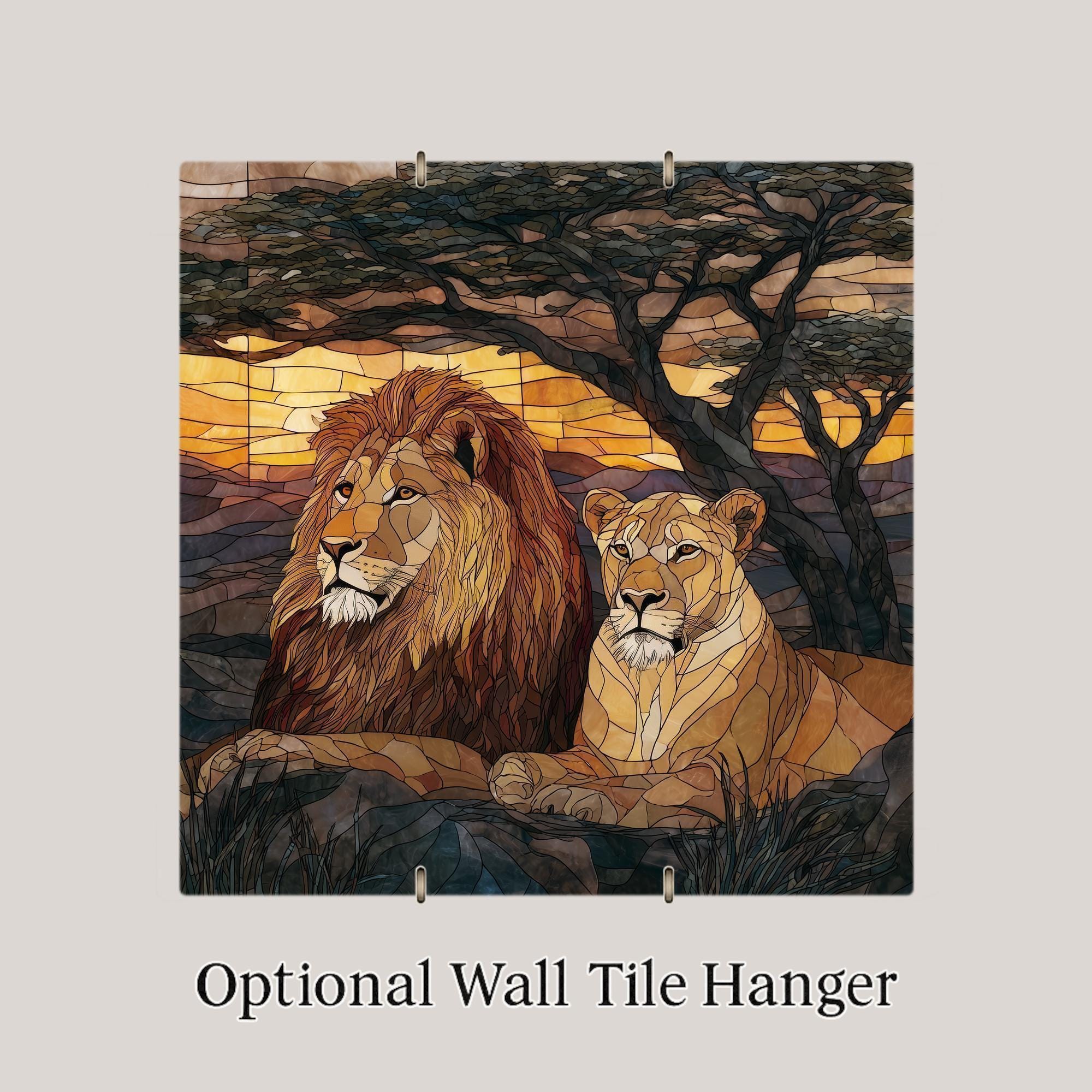 Throughout history, lions have symbolized guardianship, leadership, and legacy. When paired, the lion and lioness represent balance—strength guided by wisdom and unity forged through trust. This stained glass style lion artwork captures that timeless symbolism, making it a powerful addition to spaces centered on family, partnership, and resilience.