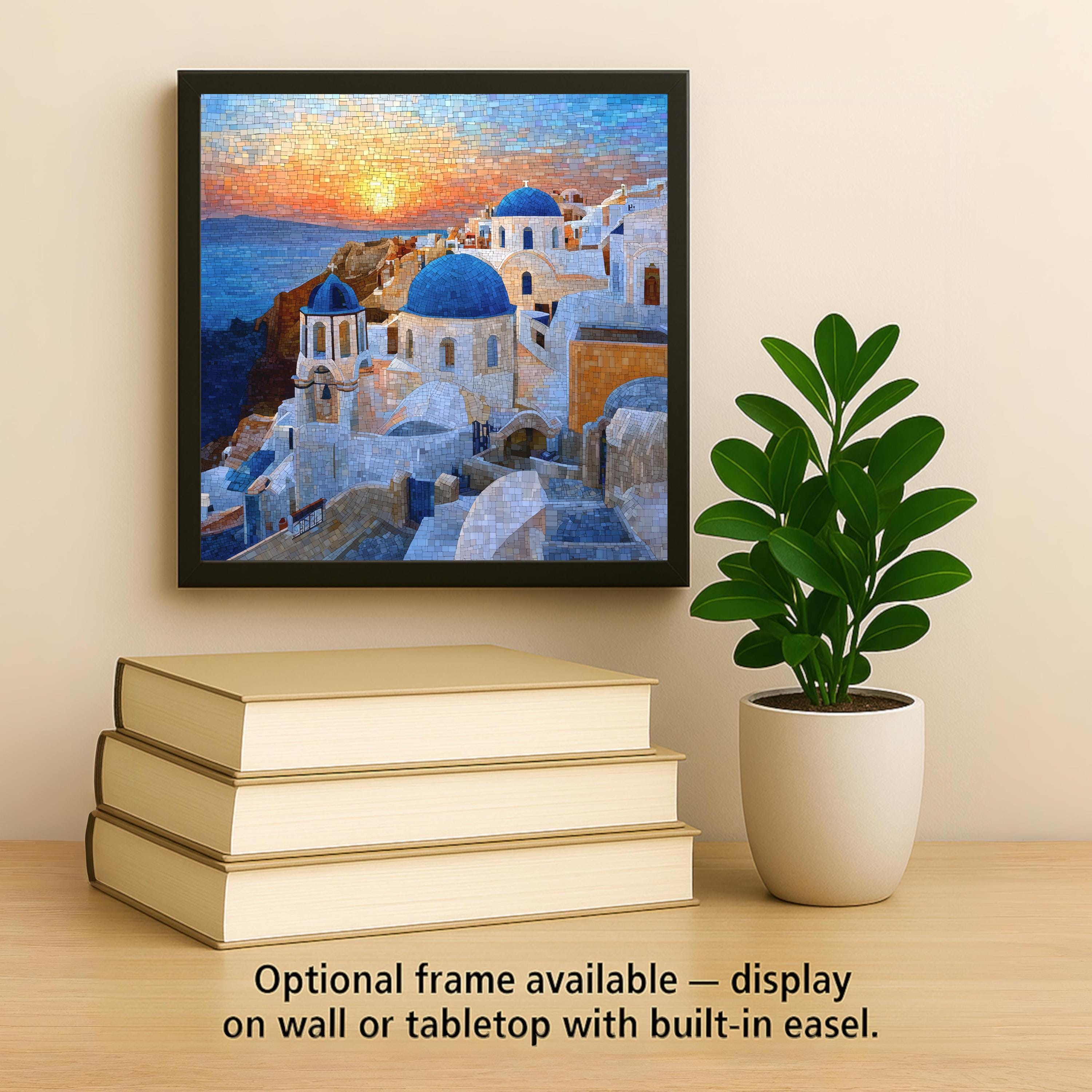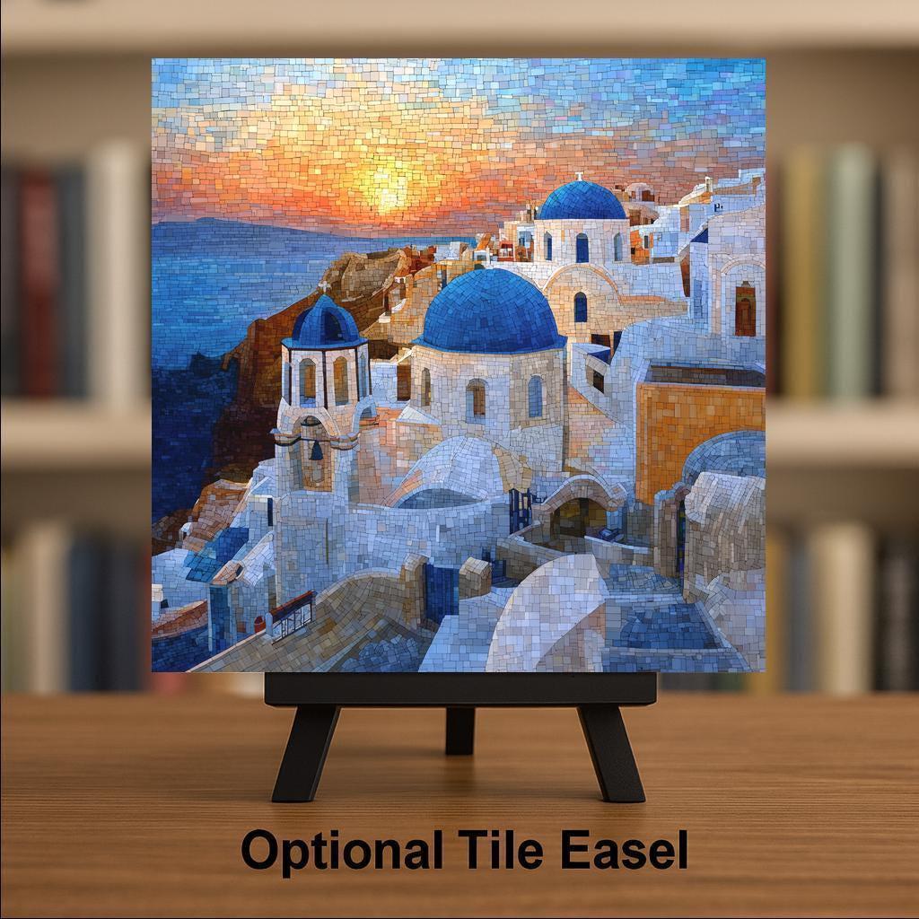 Perfect as meaningful home decor or a memorable gift for travelers, honeymooners, or Greece lovers, this tile is available with optional display enhancements including a tile wall hanger, easel tile stand, cork backing, or a premium frame option.