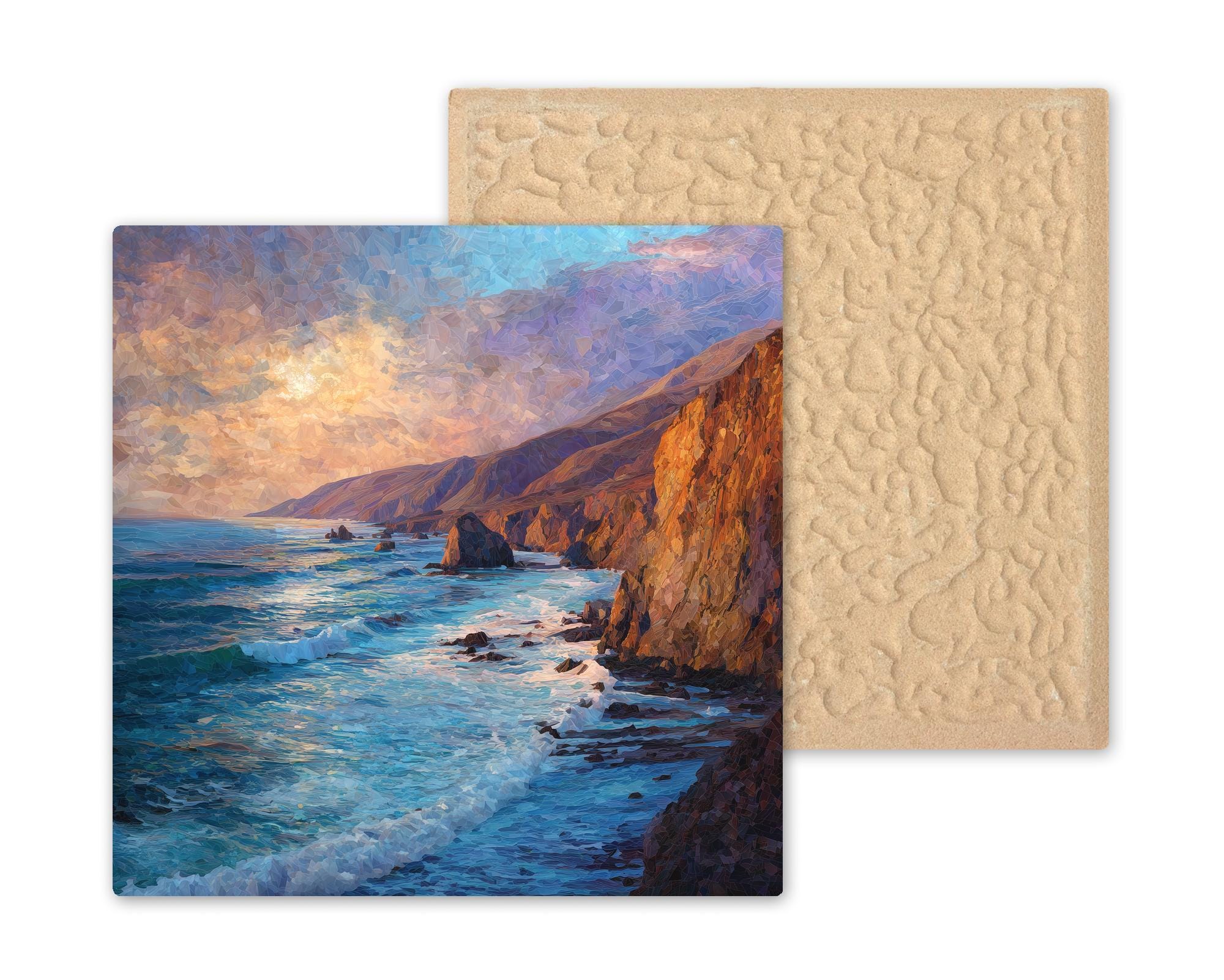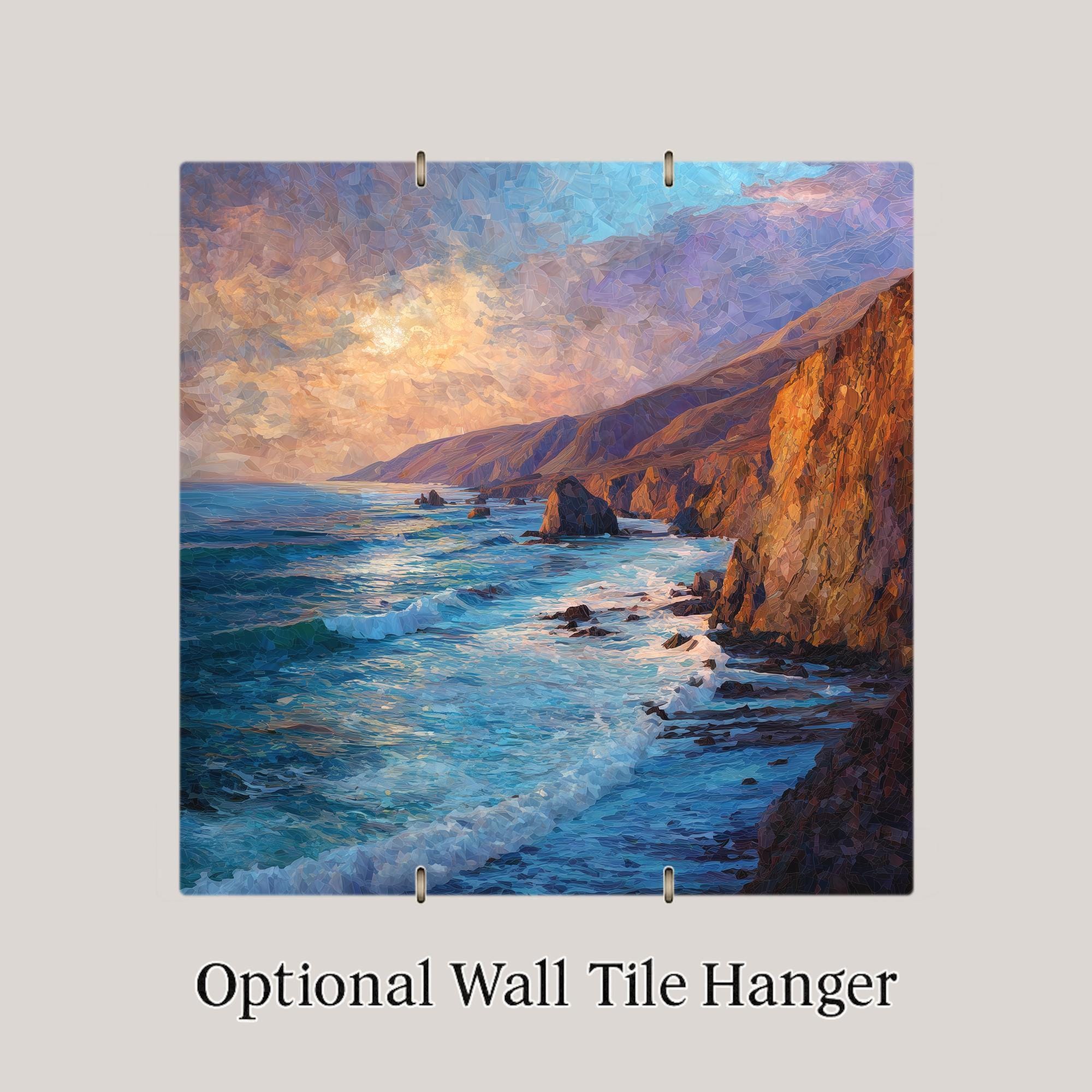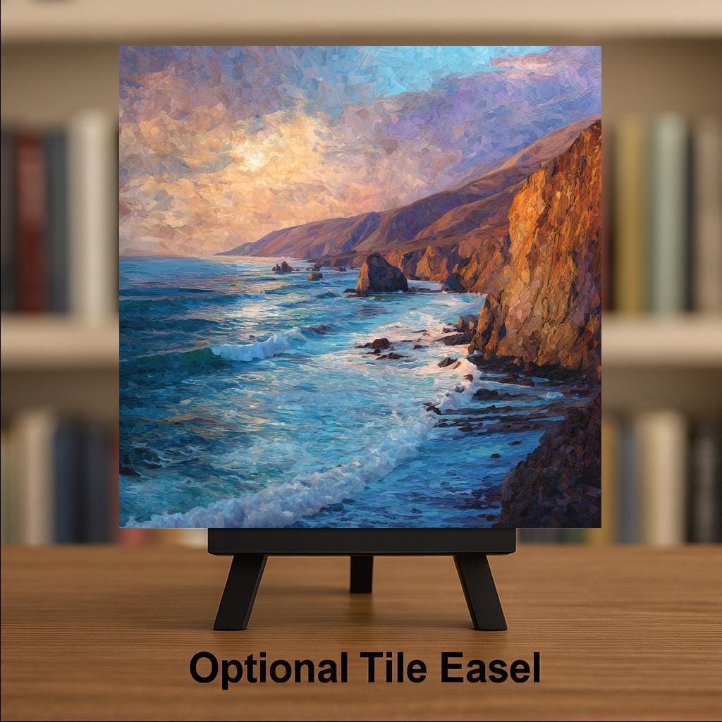 This scenic Big Sur ceramic tile wall art celebrates one of California’s most beloved coastal landscapes. The sweeping cliffs, textured rock formations, and luminous ocean waves create a sense of movement and depth that brings the Pacific coastline indoors. It’s an ideal choice for coastal home decor lovers, California natives, travelers, or anyone drawn to ocean views and natural beauty.