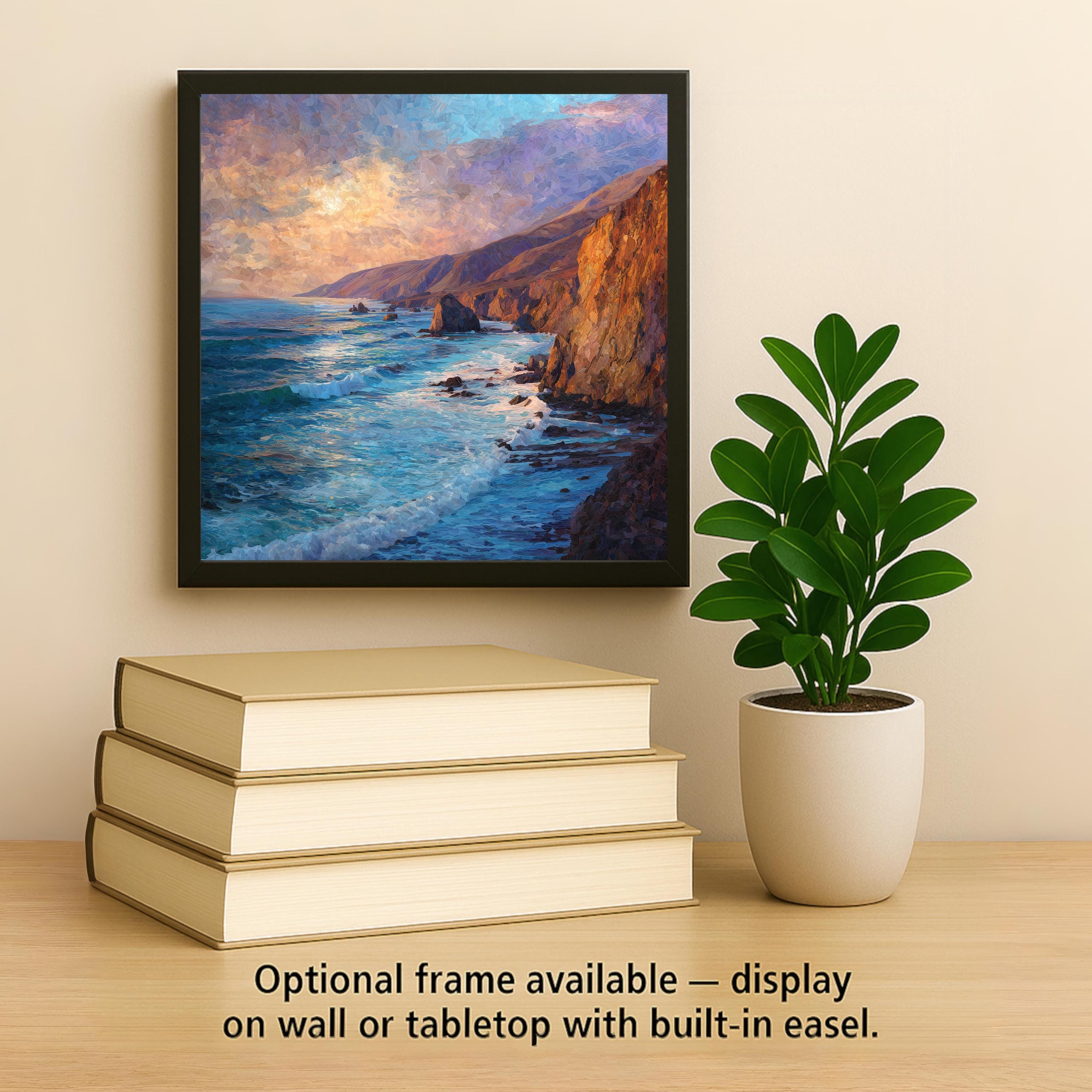 The artwork feels peaceful yet dramatic, making it a thoughtful gift for housewarmings, anniversaries, birthdays, or as a meaningful reminder of a favorite trip along the Pacific Coast Highway. It pairs especially well with coastal, beach, modern, and nature-inspired interiors.