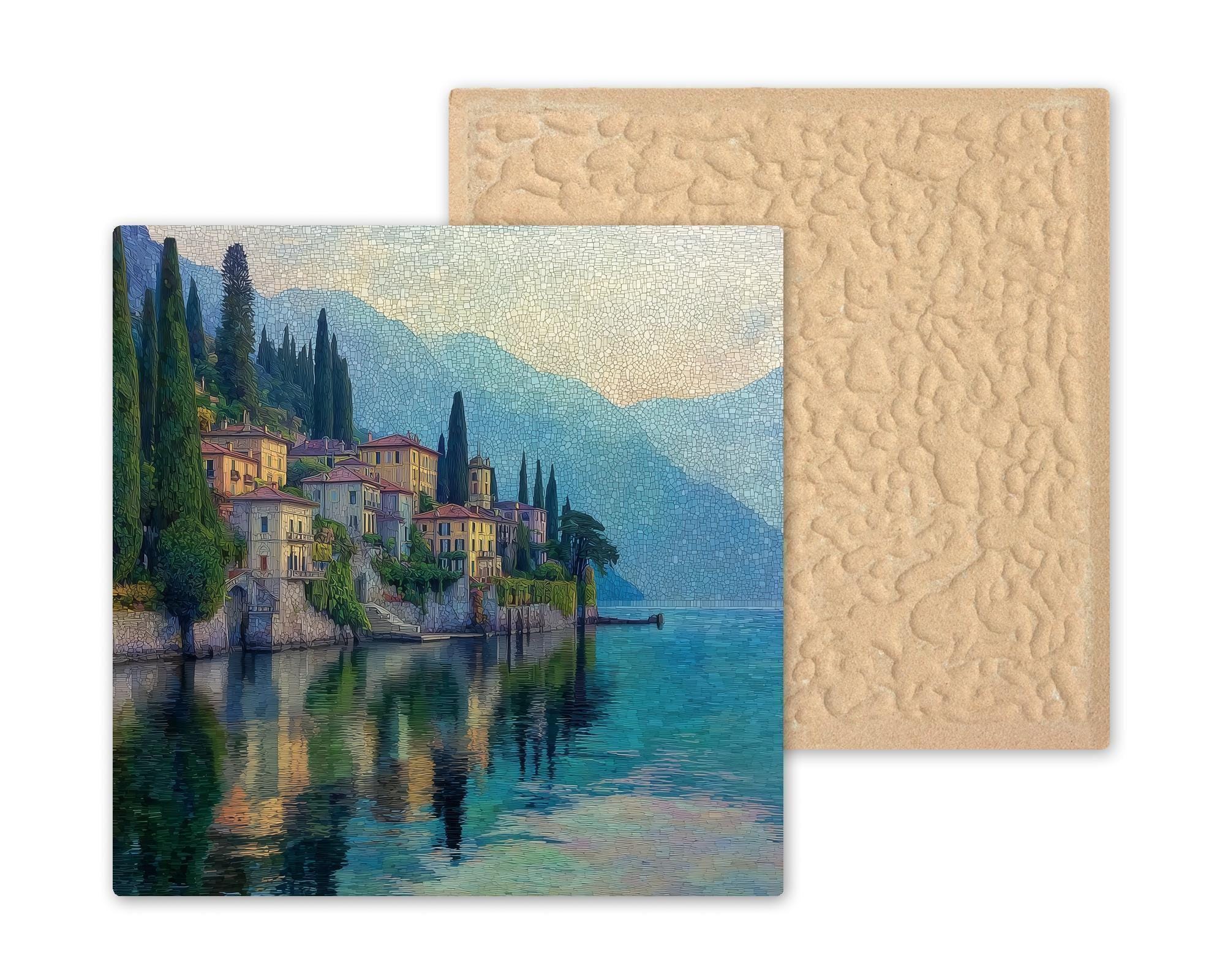 This Lake Como ceramic tile wall art celebrates the relaxed elegance of Italian lakeside living. The gentle water reflections, pastel architecture, and lush greenery create a peaceful visual that brings a sense of escape and calm into any room. It’s a perfect choice for those who love Italy, European travel, or refined coastal home decor with a Mediterranean influence.