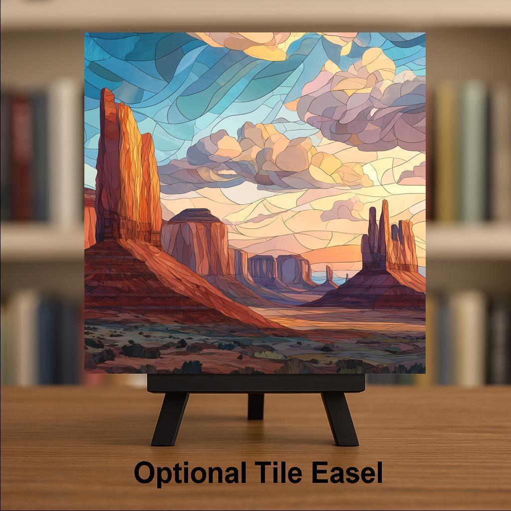 Monument Valley is known for its towering buttes, sweeping desert views, and unforgettable light—and this ceramic tile artwork brings that sense of scale and stillness into your home. The mosaic-style design emphasizes layered rock formations and expansive skies, making the scene feel both dramatic and peaceful.