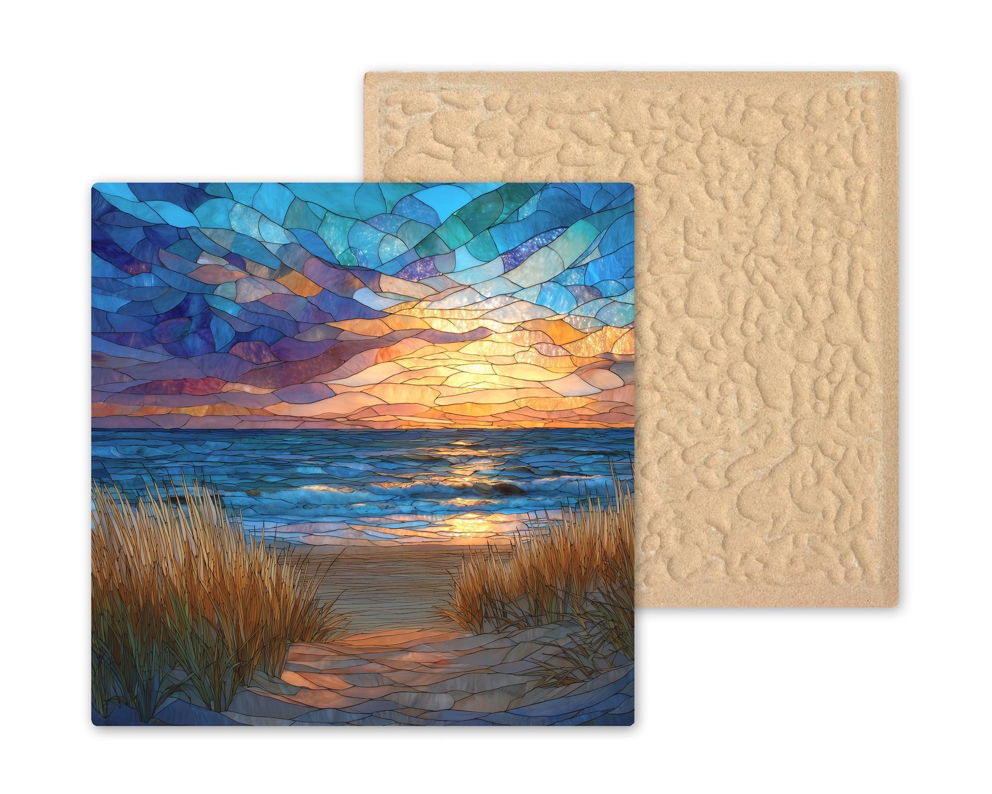This Cape Cod–inspired ceramic tile wall art is created for those who appreciate meaningful home decor with a strong sense of place. Drawing inspiration from the iconic dunes and glowing sunsets of Cape Cod, this piece blends coastal charm with a stained glass–style aesthetic that feels both classic and modern.