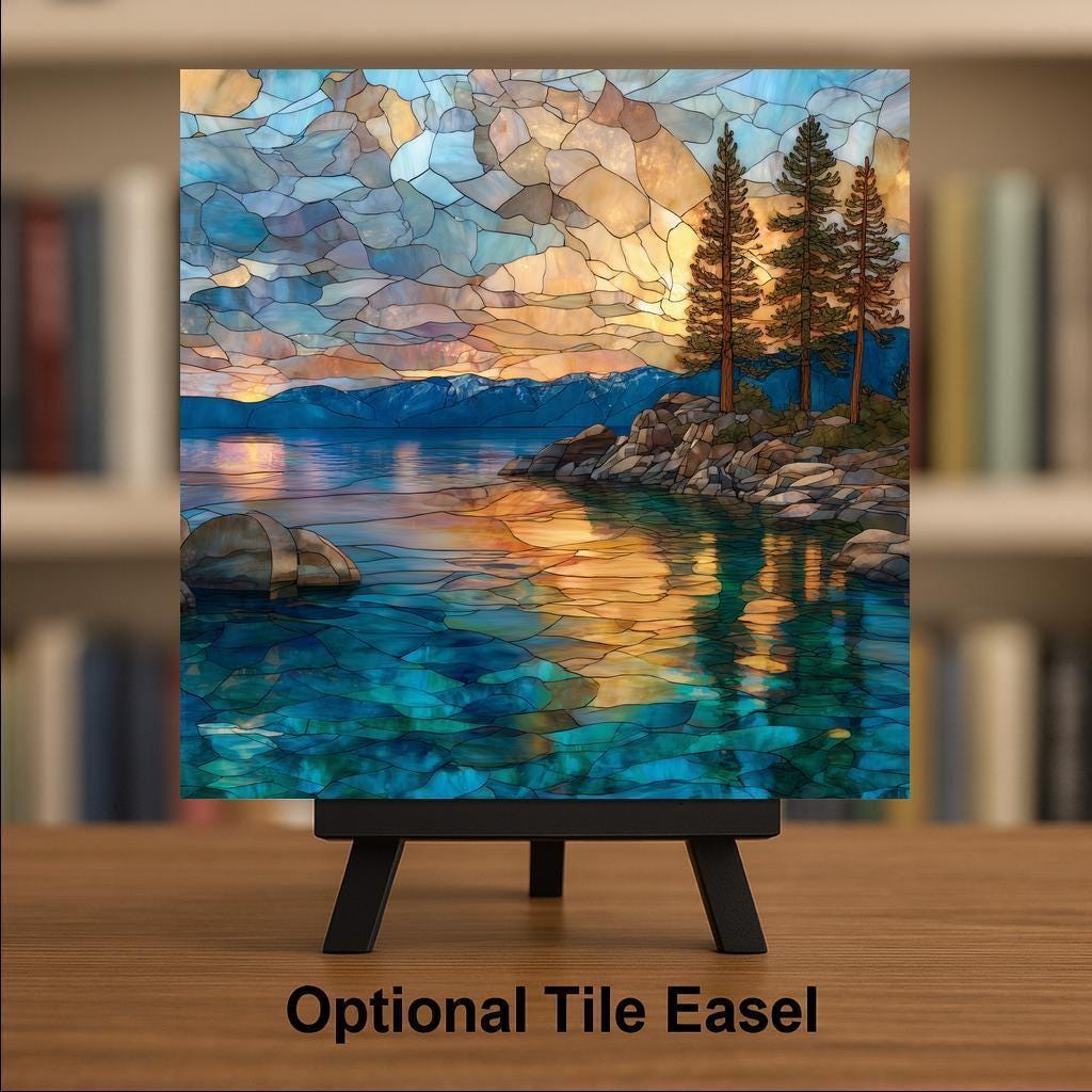 This Lake Tahoe ceramic tile wall decor captures the balance of water, sky, and forest that makes the region so iconic. The stillness of the lake, framed by evergreen trees and mountain silhouettes, creates a sense of calm that feels both grounding and uplifting.