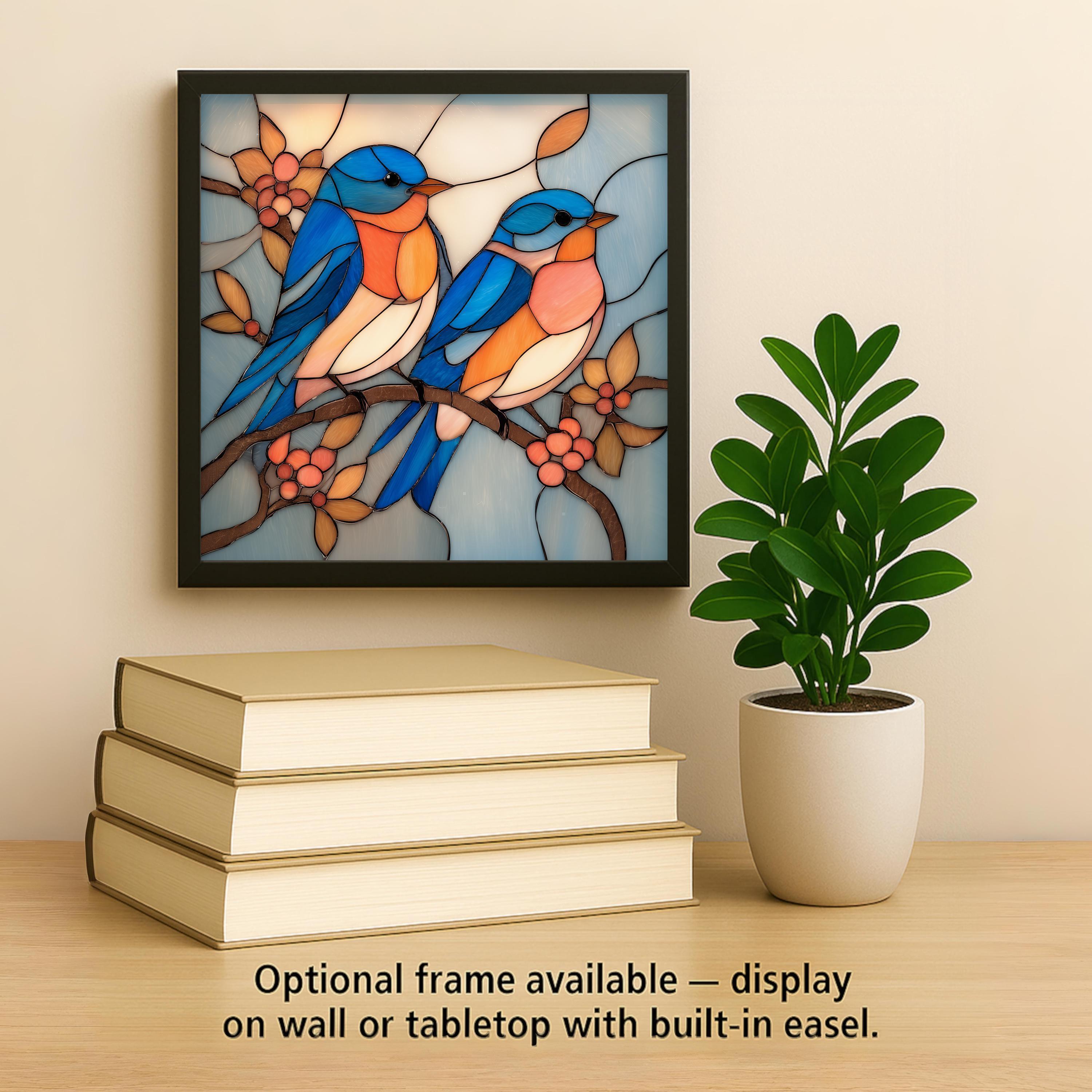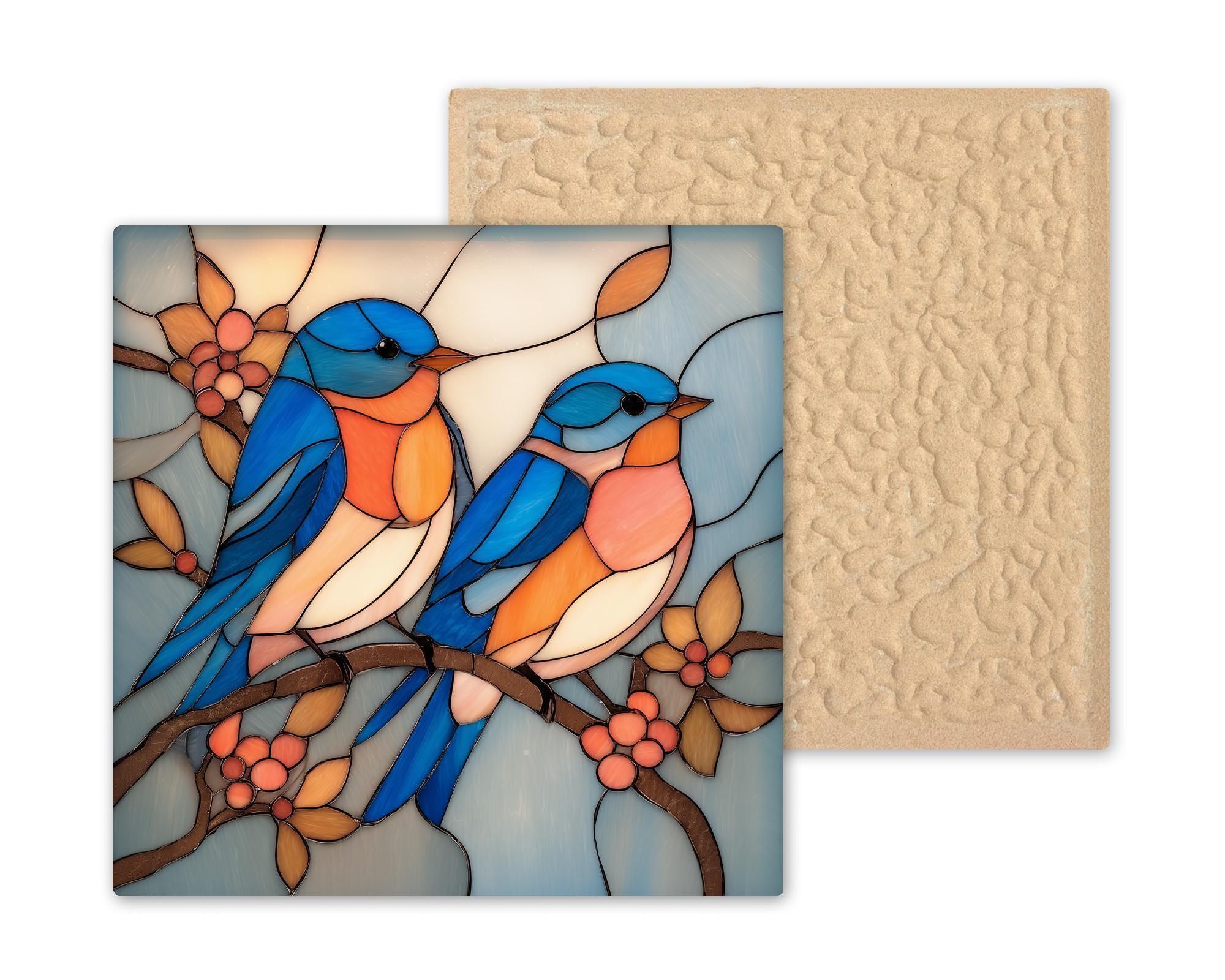 Bird artwork consistently performs well on Etsy, especially when paired with symbolism and soft color harmony. Bluebirds, in particular, are frequently searched as symbols of joy, peace, and enduring bonds. The paired composition adds an extra layer of meaning, making this tile an excellent choice for anniversary gifts, housewarming presents, or thoughtful memorial pieces.