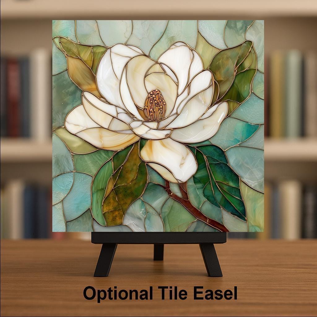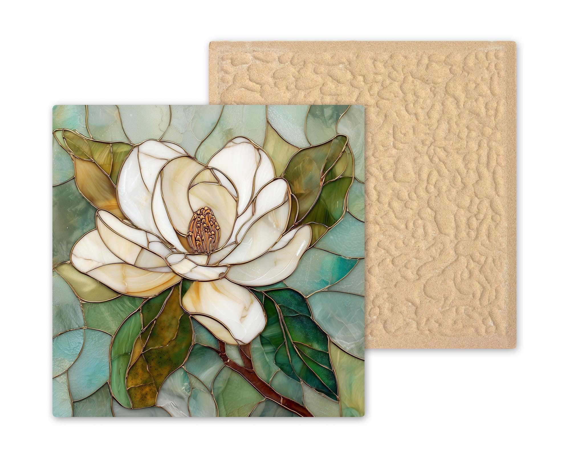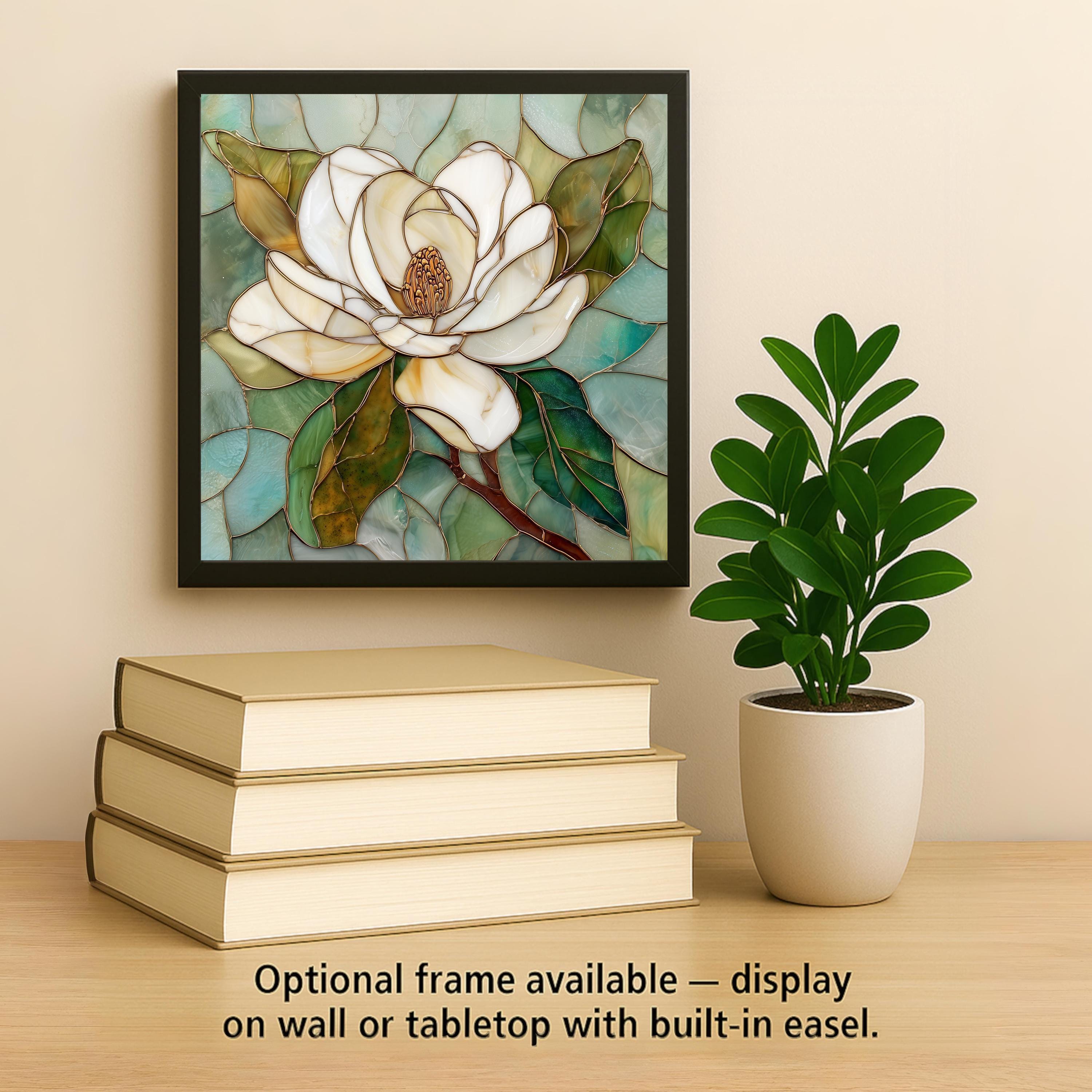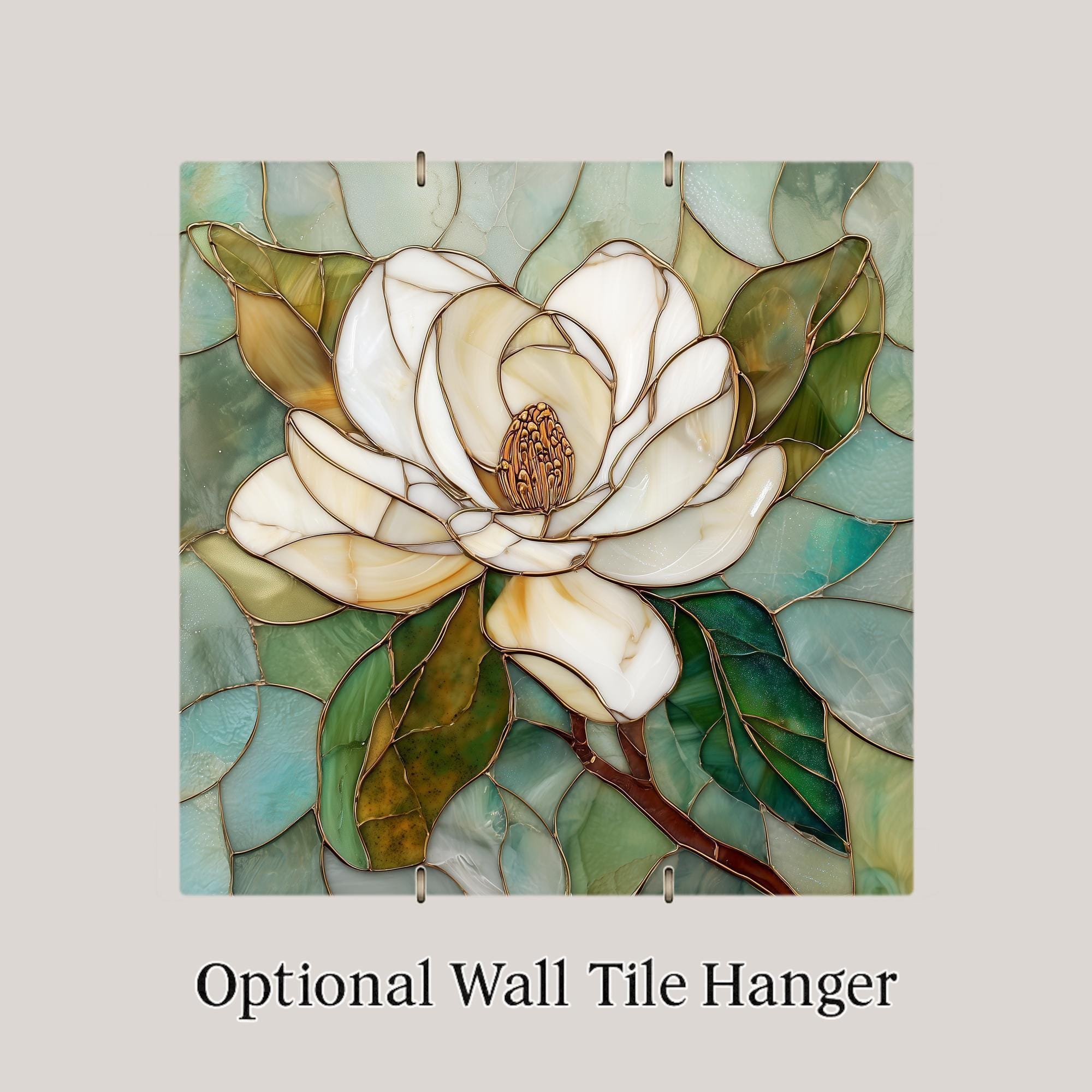 This stained glass–style magnolia tile is ideal for anyone seeking meaningful home decor that blends botanical beauty with timeless design. The flowing lines and layered glass-inspired shapes give the artwork a handcrafted feel while maintaining a clean, elegant presence that works in both modern and classic interiors.