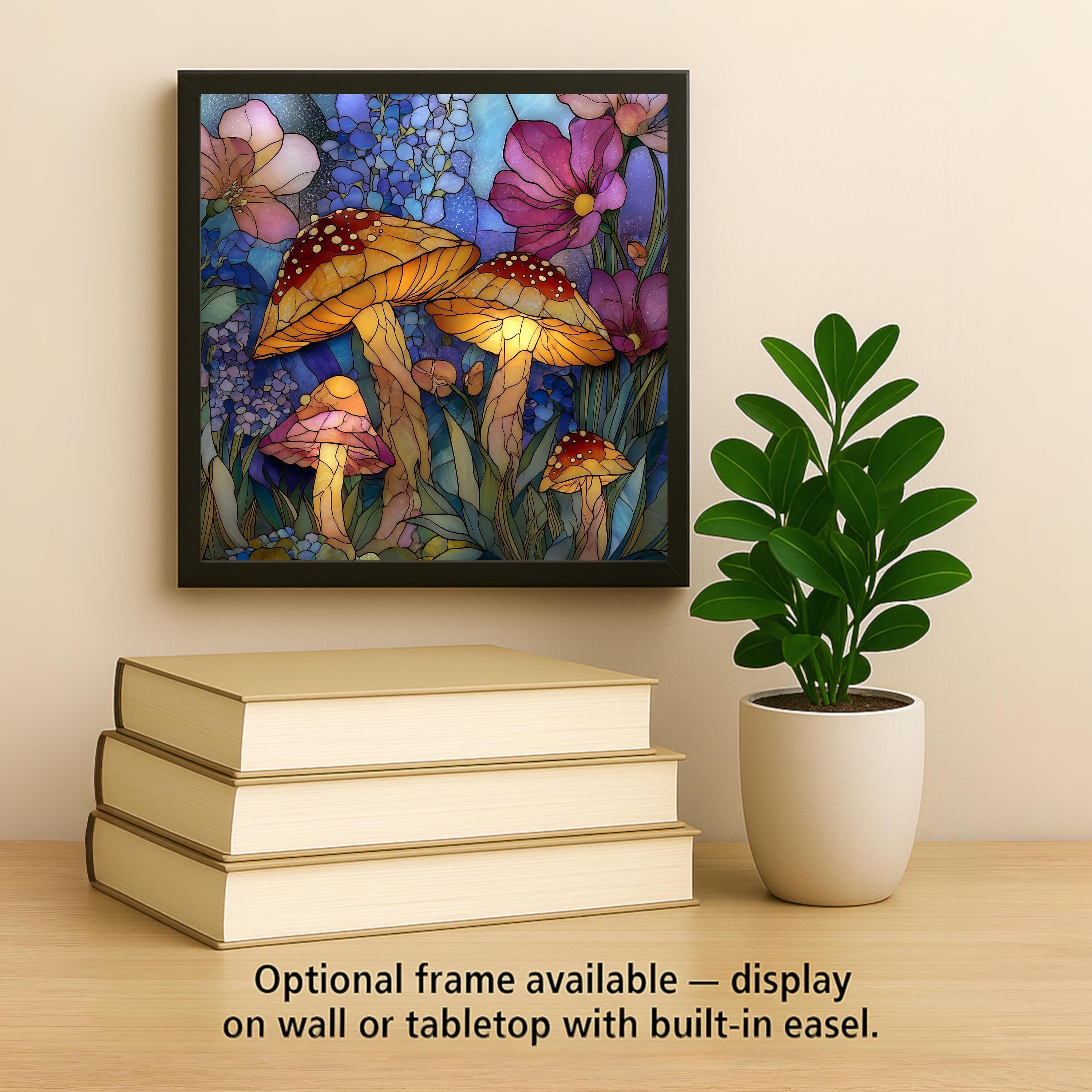 This mushroom wall decor pairs beautifully with cottage decor, fairycore aesthetics, rustic interiors, and nature-inspired spaces. Whether displayed alone or as part of a curated gallery wall, it adds warmth, personality, and visual storytelling. Optional accessories such as a tile wall hanger, easel tile stand, cork backing, or premium frame allow you to customize the presentation to suit your space.