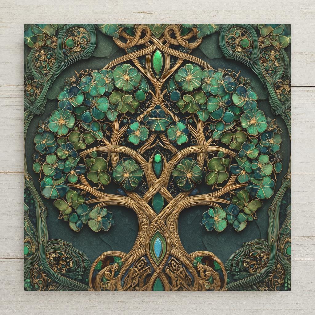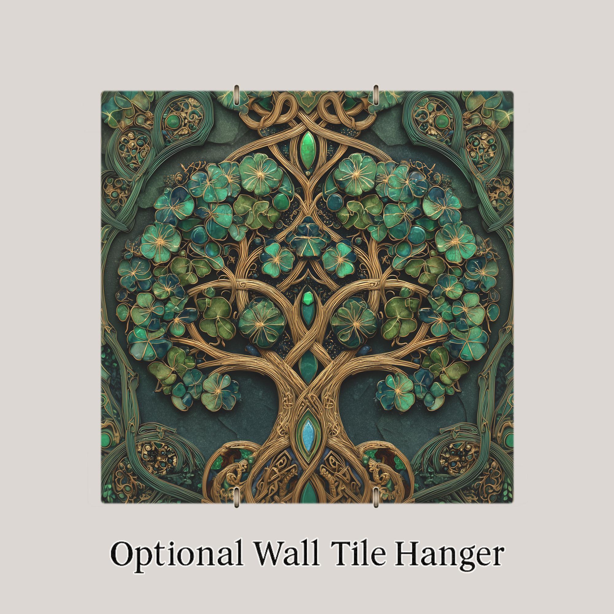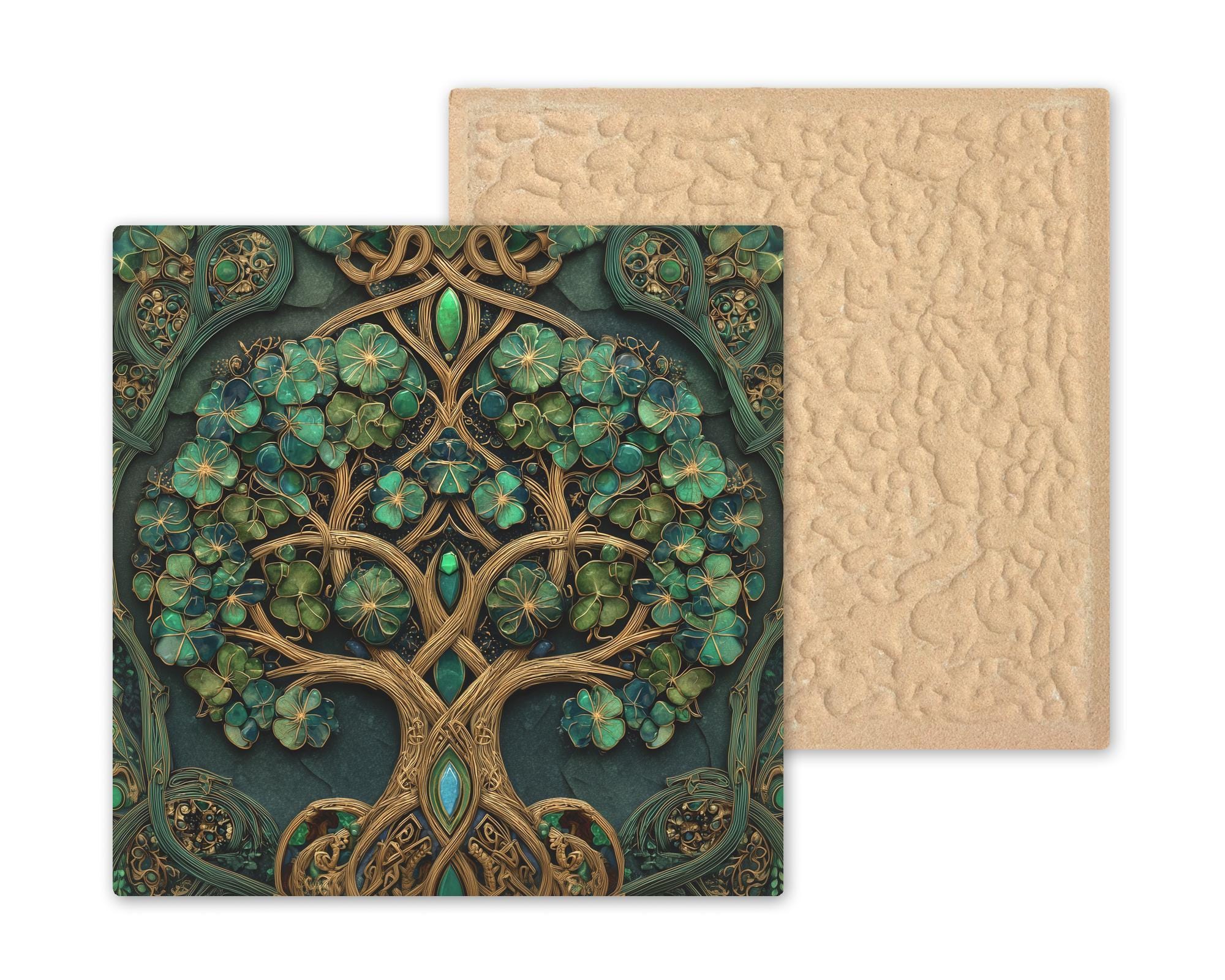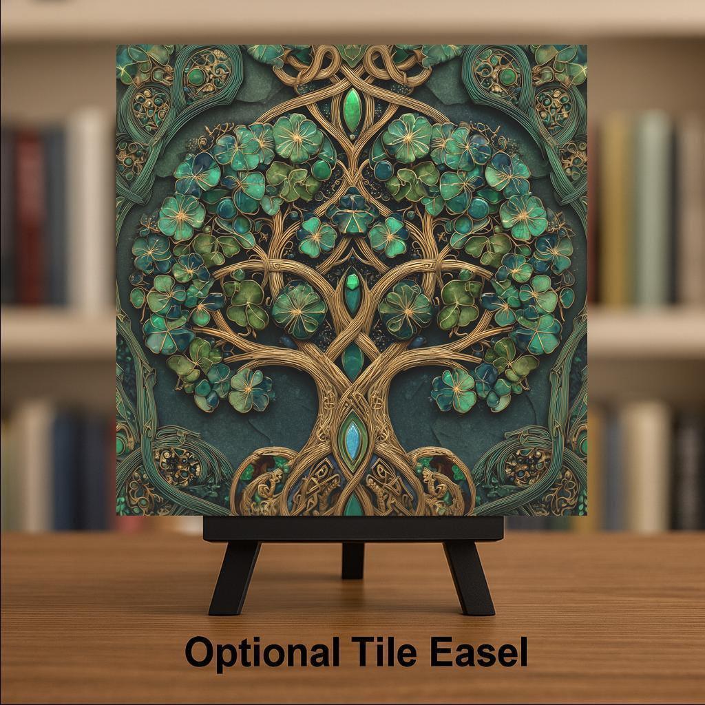 The Tree of Life is a timeless symbol representing balance, strength, ancestry, and connection to the natural world. This stained glass–style ceramic tile captures that symbolism through flowing knotwork branches and vibrant green tones often associated with Irish and Celtic traditions. The symmetrical design gives the piece a sense of harmony, making it ideal for those seeking symbolic wall art or art with meaning.
