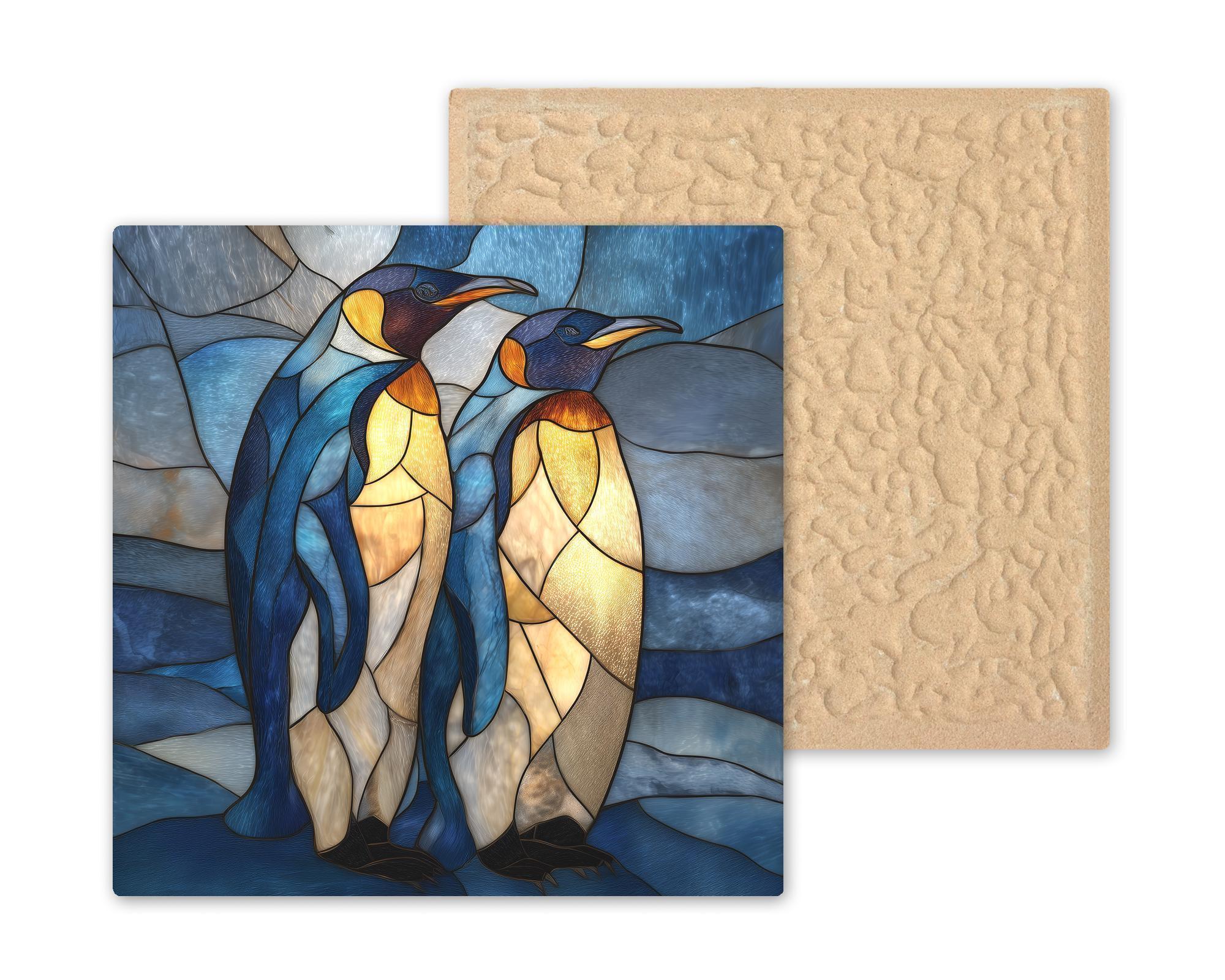 Penguins are often chosen as symbols of devotion and connection, making this artwork especially meaningful as a gift for couples, anniversaries, weddings, or as a comforting decorative piece for the home. The soft blues and neutral tones allow this tile to blend effortlessly into both minimalist and richly decorated interiors.