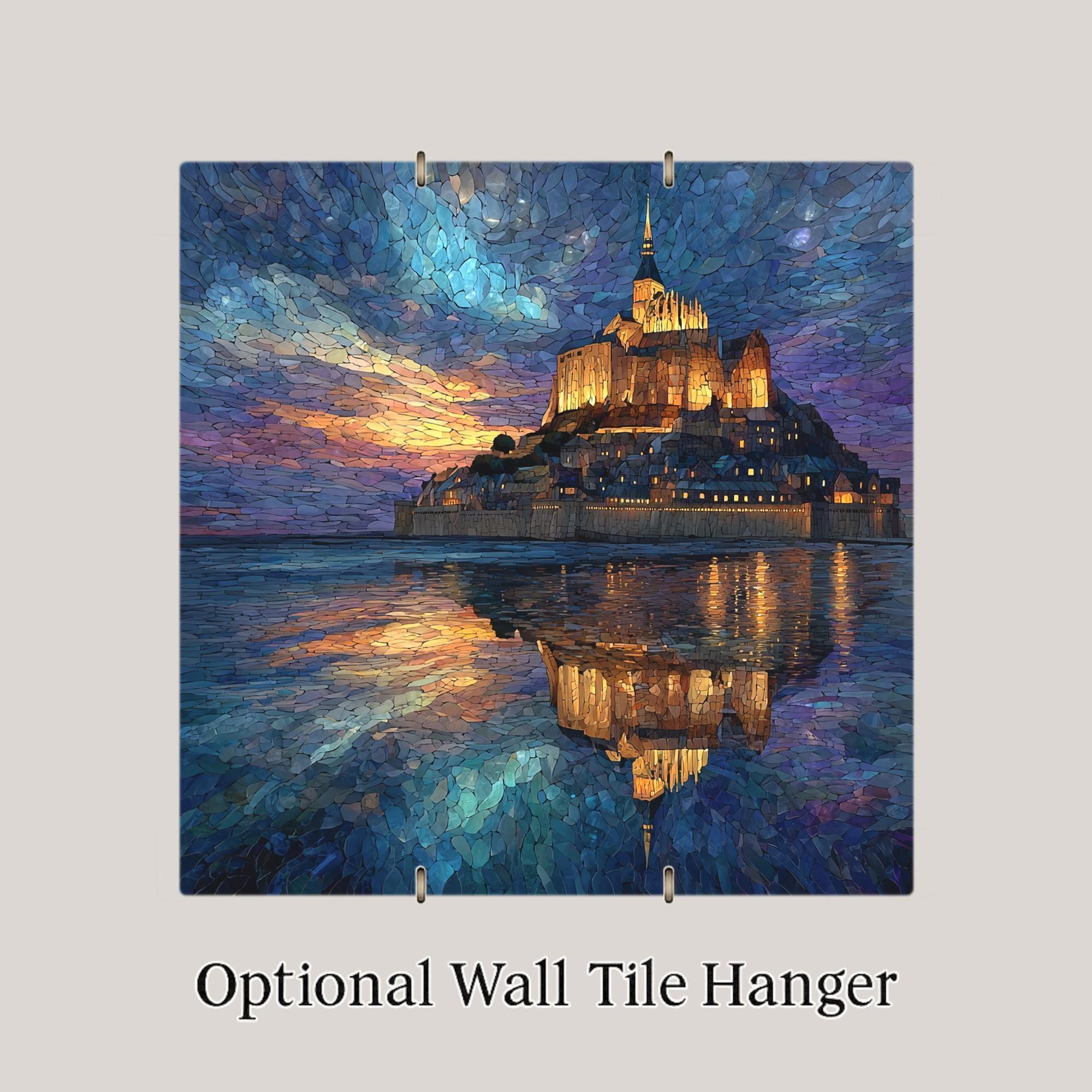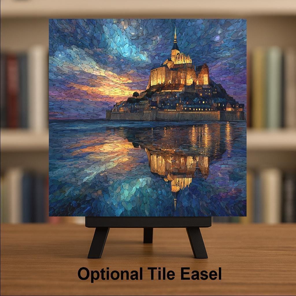 Display flexibility is built in. Choose an optional tile wall hanger for vertical display, an easel tile stand for shelves or mantels, cork backing for surface protection, or the premium frame option for a finished gallery look. Whether styled alone or paired with other landmark tiles, this Mont-Saint-Michel piece brings a sense of wonder, reflection, and calm—exactly the kind of wall art that draws people in and keeps them looking.