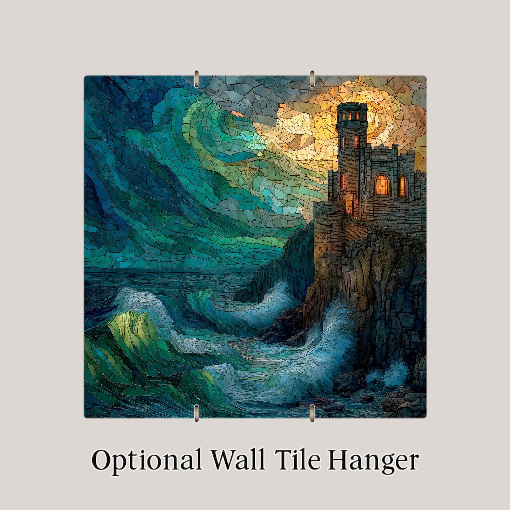 Inspired by legendary seaside fortresses and windswept coastlines, this ceramic tile wall art brings a sense of place and story into your home decor. The castle stands firm against rolling waves, symbolizing resilience, protection, and quiet strength. The stained glass style enhances the scene with layered color and texture, giving the impression of light filtering through glass even in low-light settings.