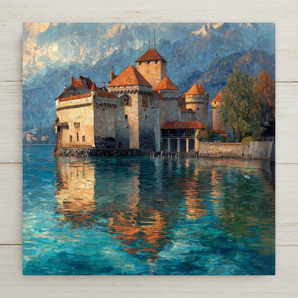 This Château de Chillon ceramic tile makes a thoughtful gift for travelers, history lovers, architecture enthusiasts, and anyone who feels connected to Switzerland or Lake Geneva. The stained glass–style design adds warmth and depth, catching light differently throughout the day and creating a calming, reflective presence in any space.