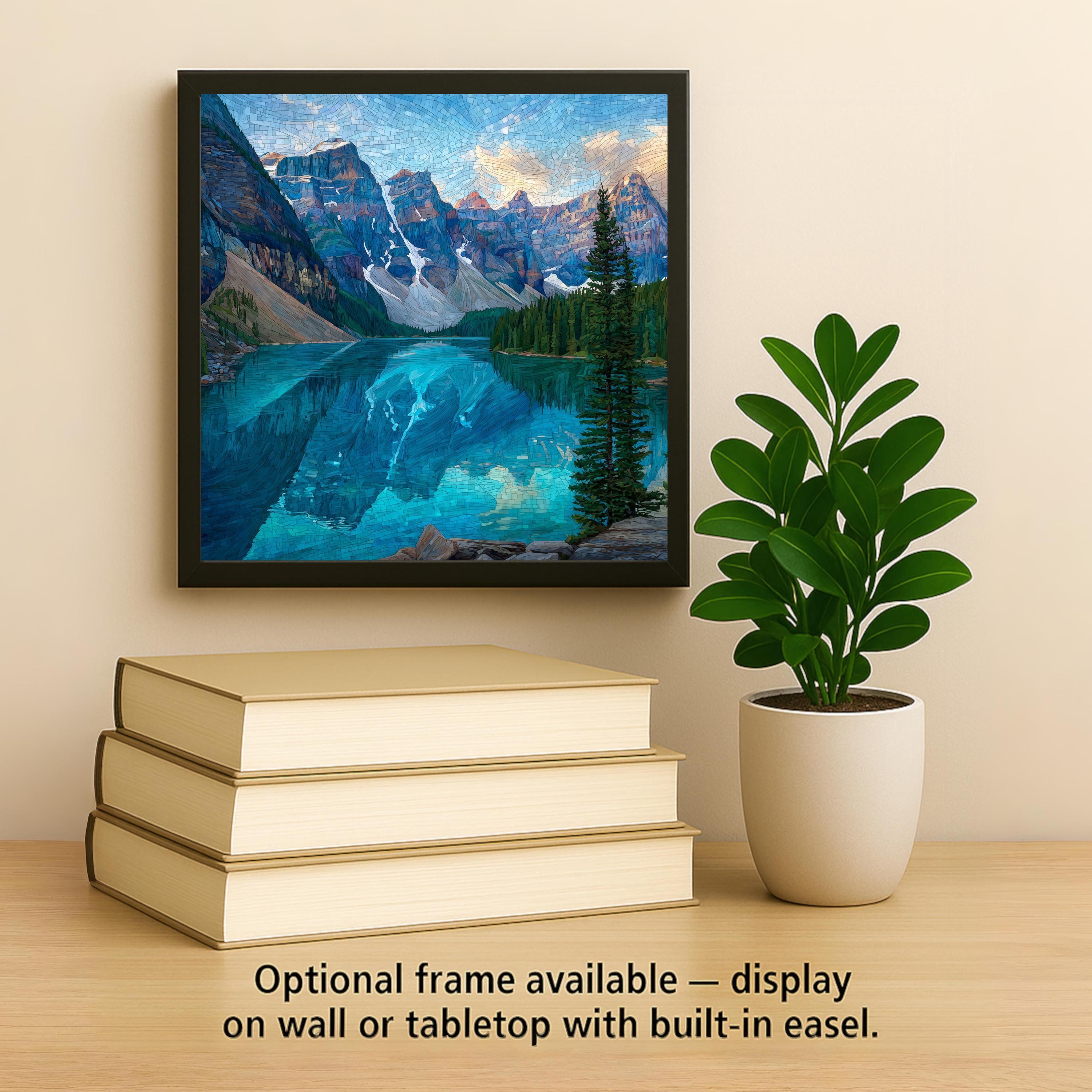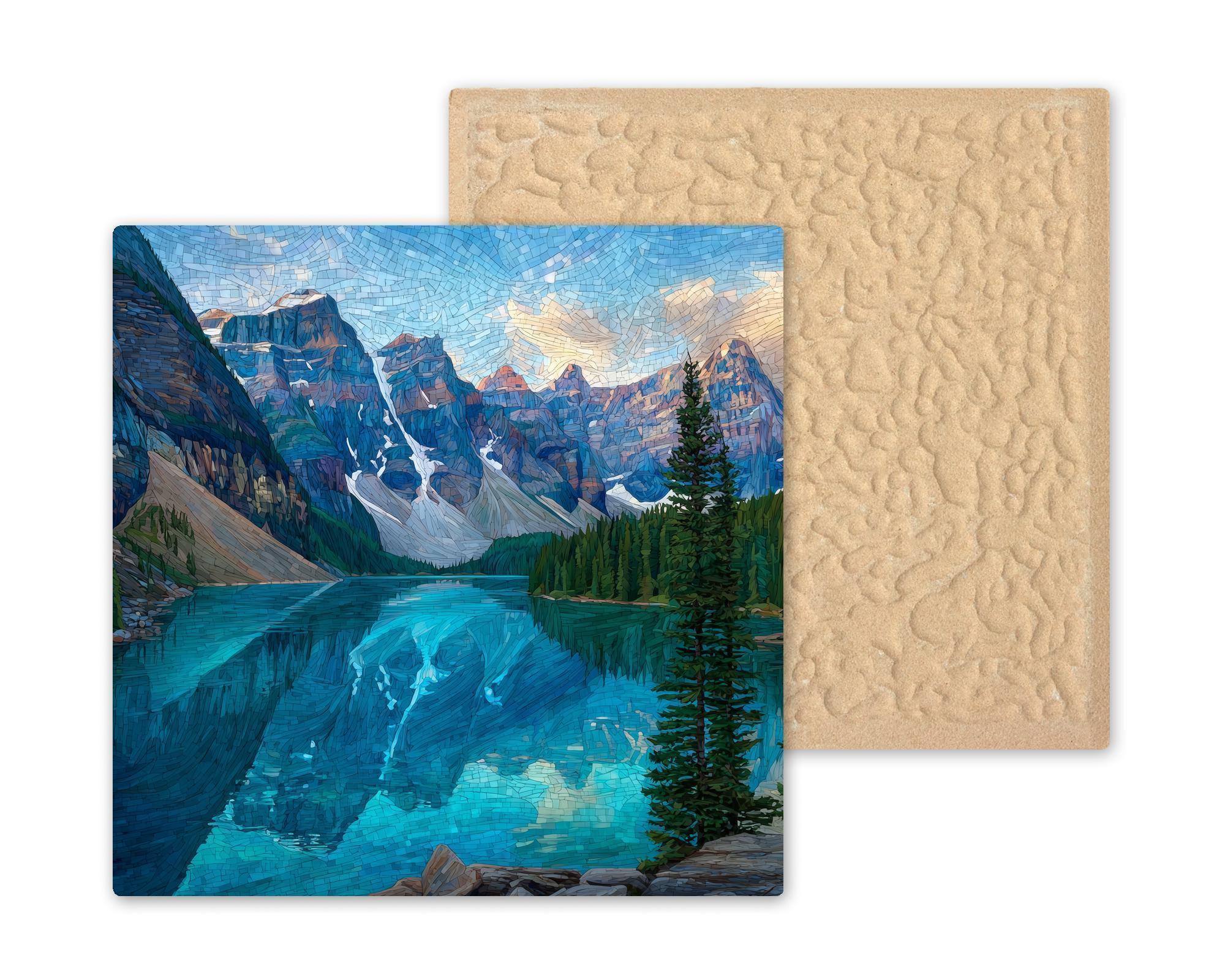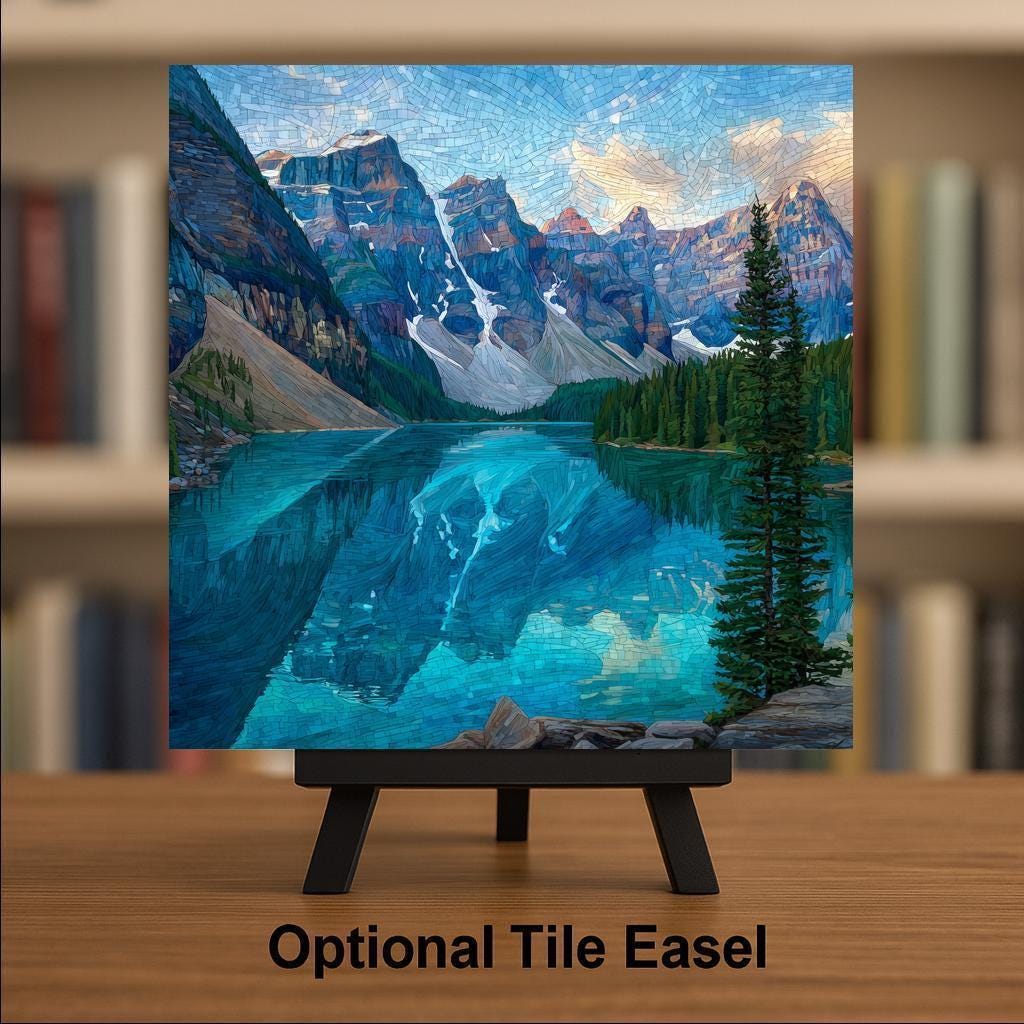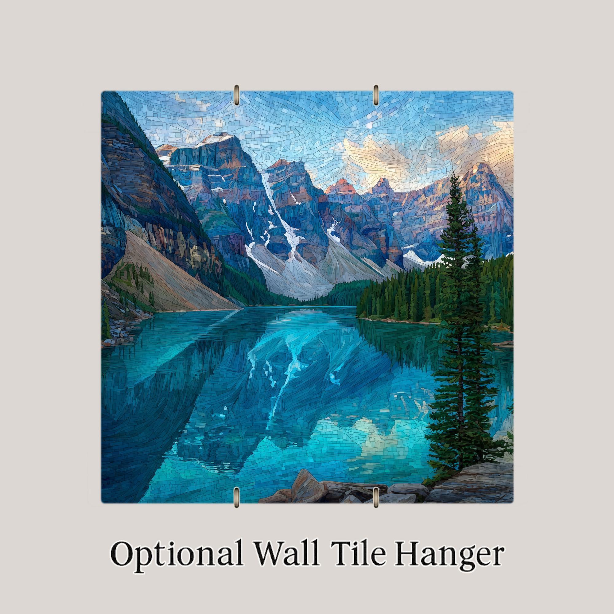 Each tile is made to order and carefully packaged for safe delivery. Optional accessories—including a tile wall hanger, easel tile stand, cork backing, or a premium frame—allow you to customize how the artwork is displayed. This Moraine Lake ceramic tile art is designed to bring lasting beauty and a sense of calm mountain escape into your home decor.