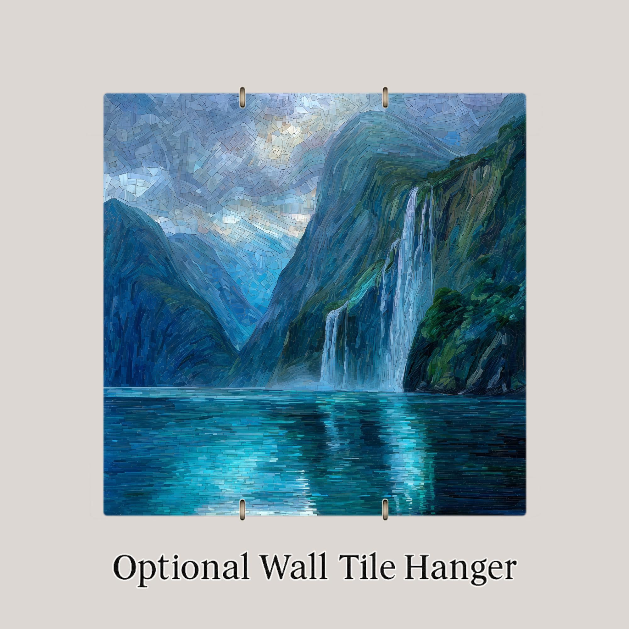 This Fiordland wall decor is popular with international travelers, outdoor enthusiasts, and collectors of location-based art. It pairs beautifully with other waterfall, mountain, or coastal ceramic tiles to create a curated travel-inspired display. The cool blue-green palette works especially well with neutral walls, natural wood accents, and minimalist interiors.