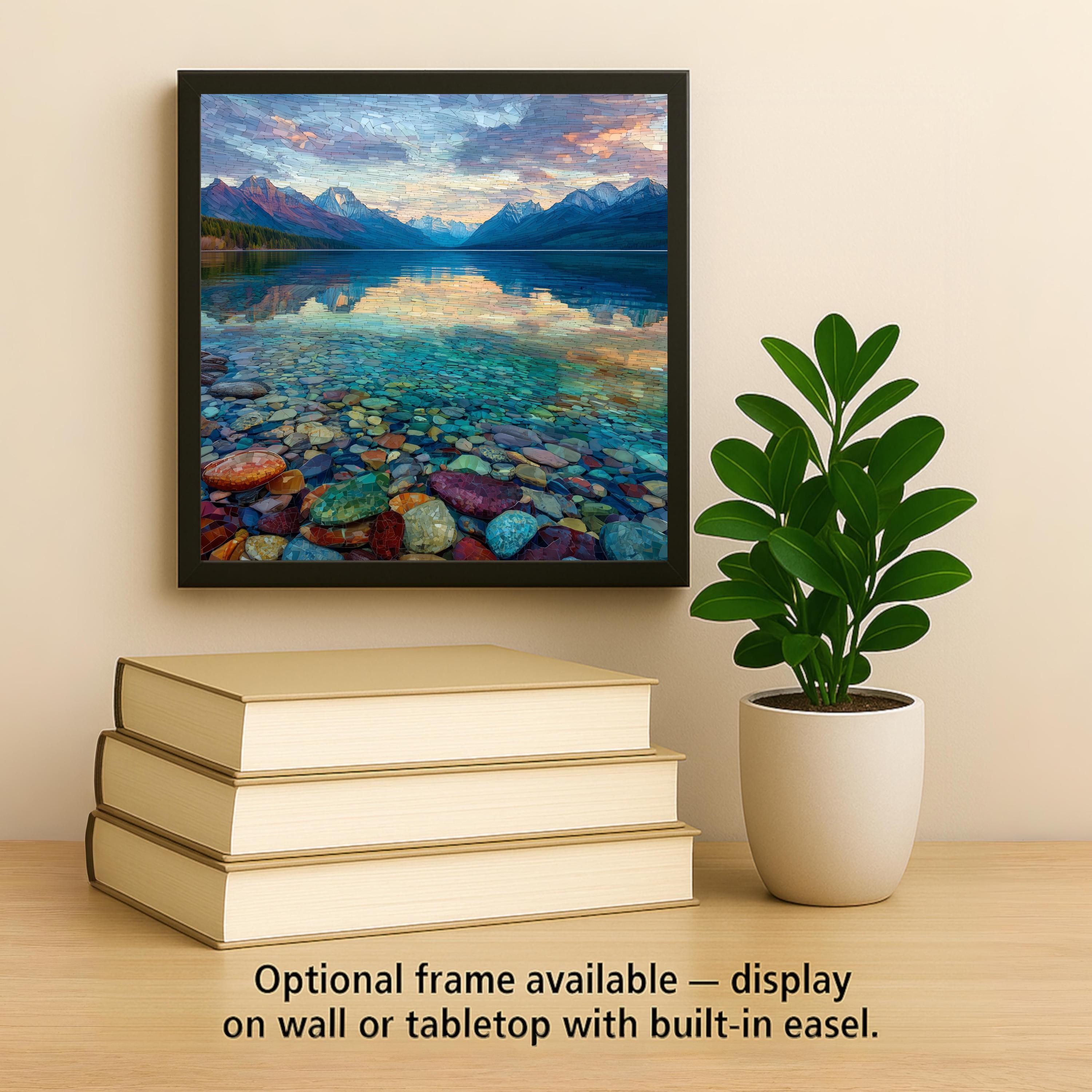 Each tile is made to order and carefully packaged for safe delivery. Optional accessories—including a tile wall hanger, easel tile stand, cork backing, or a premium frame—allow you to customize how the artwork is displayed. This Lake McDonald ceramic tile art is designed to bring lasting beauty and a sense of calm mountain escape into your home decor.