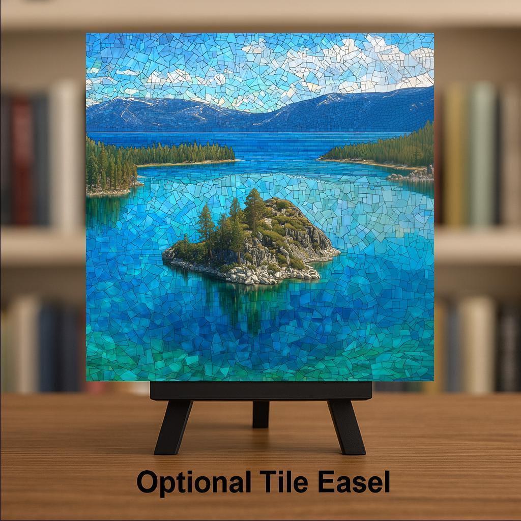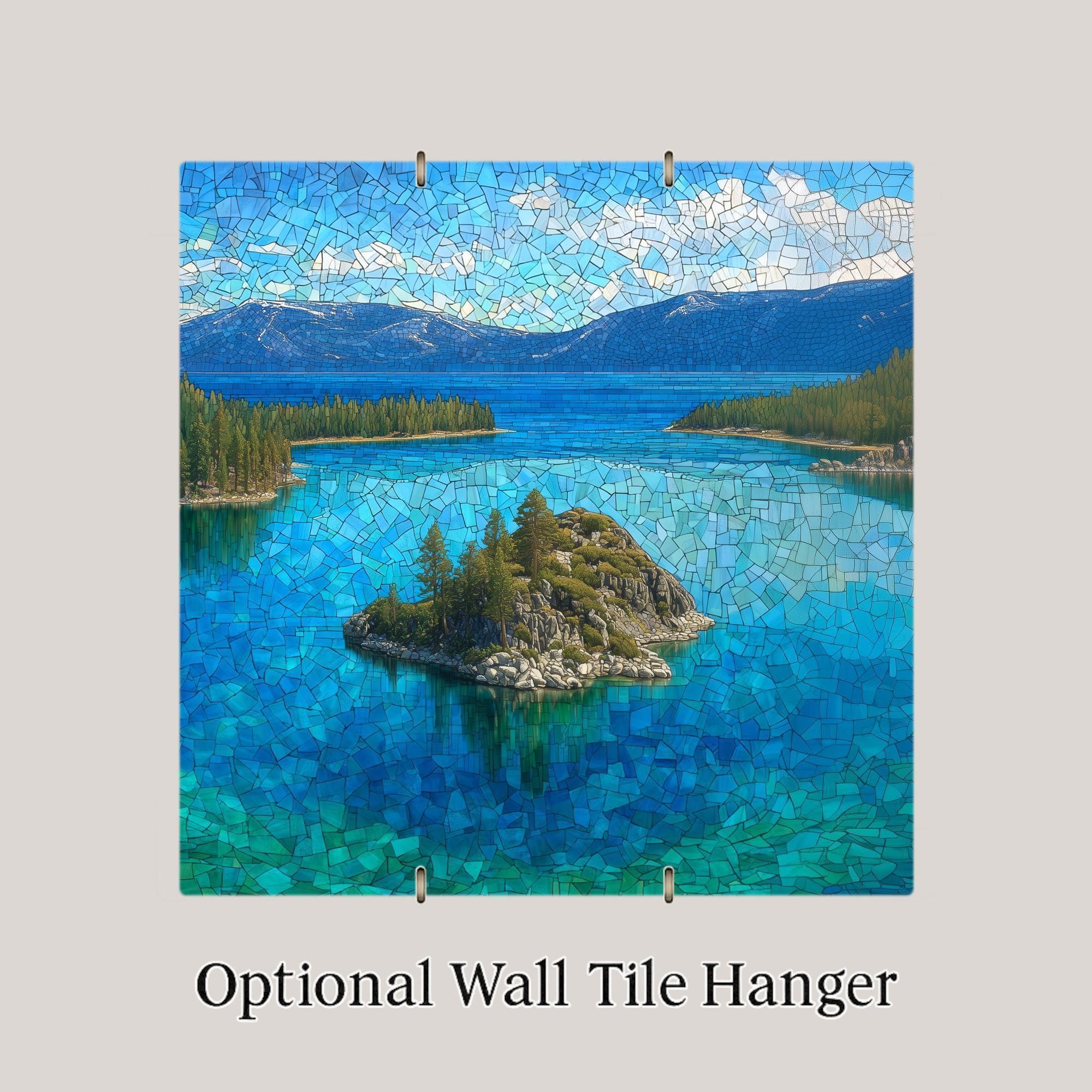 Each tile is made to order and carefully packaged for safe delivery. Optional accessories—including a tile wall hanger, easel tile stand, cork backing, or a premium frame—allow you to customize how the artwork is displayed. This Emerald Bay ceramic tile art is designed to bring lasting beauty and a sense of peaceful mountain retreat into your home decor.