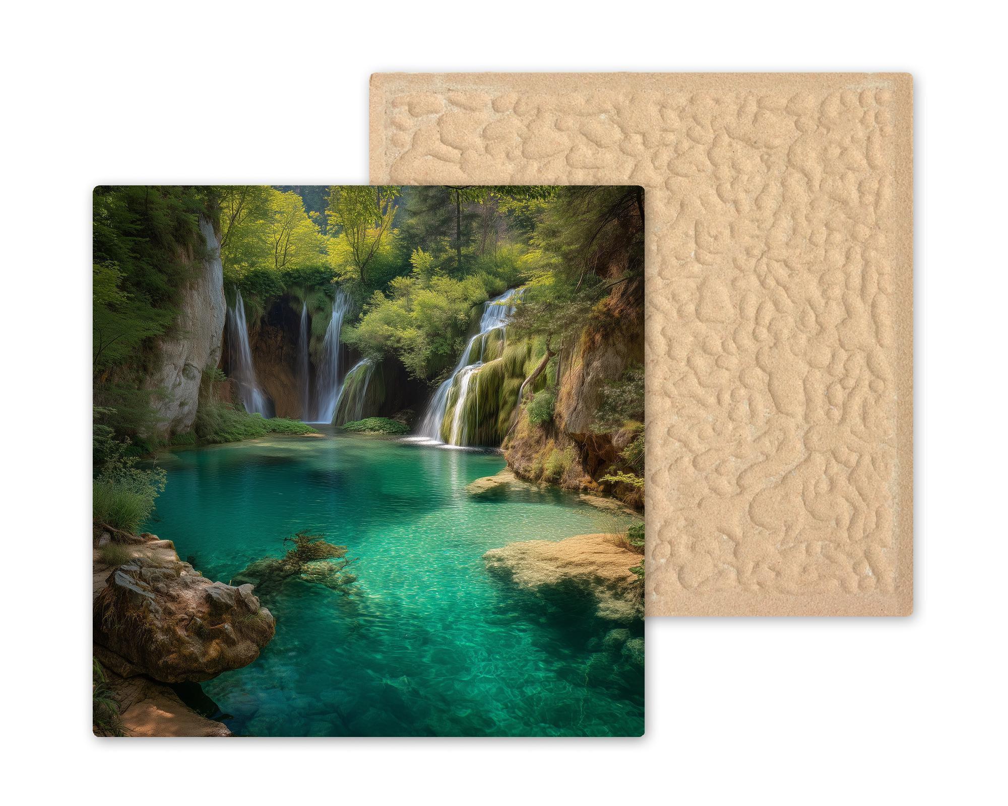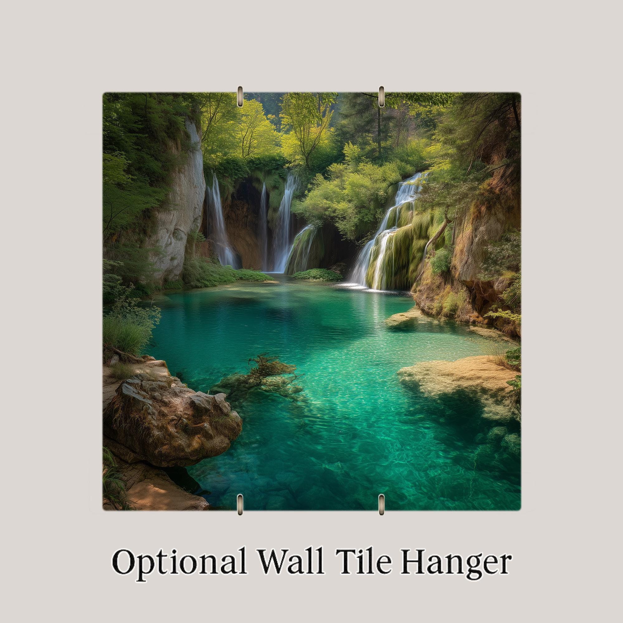 Plitvice Lakes National Park is celebrated for its layered waterfalls, tranquil pools, and ever-changing shades of blue and green. This ceramic tile wall art captures that atmosphere of natural harmony, making it a striking yet calming focal point for your space.