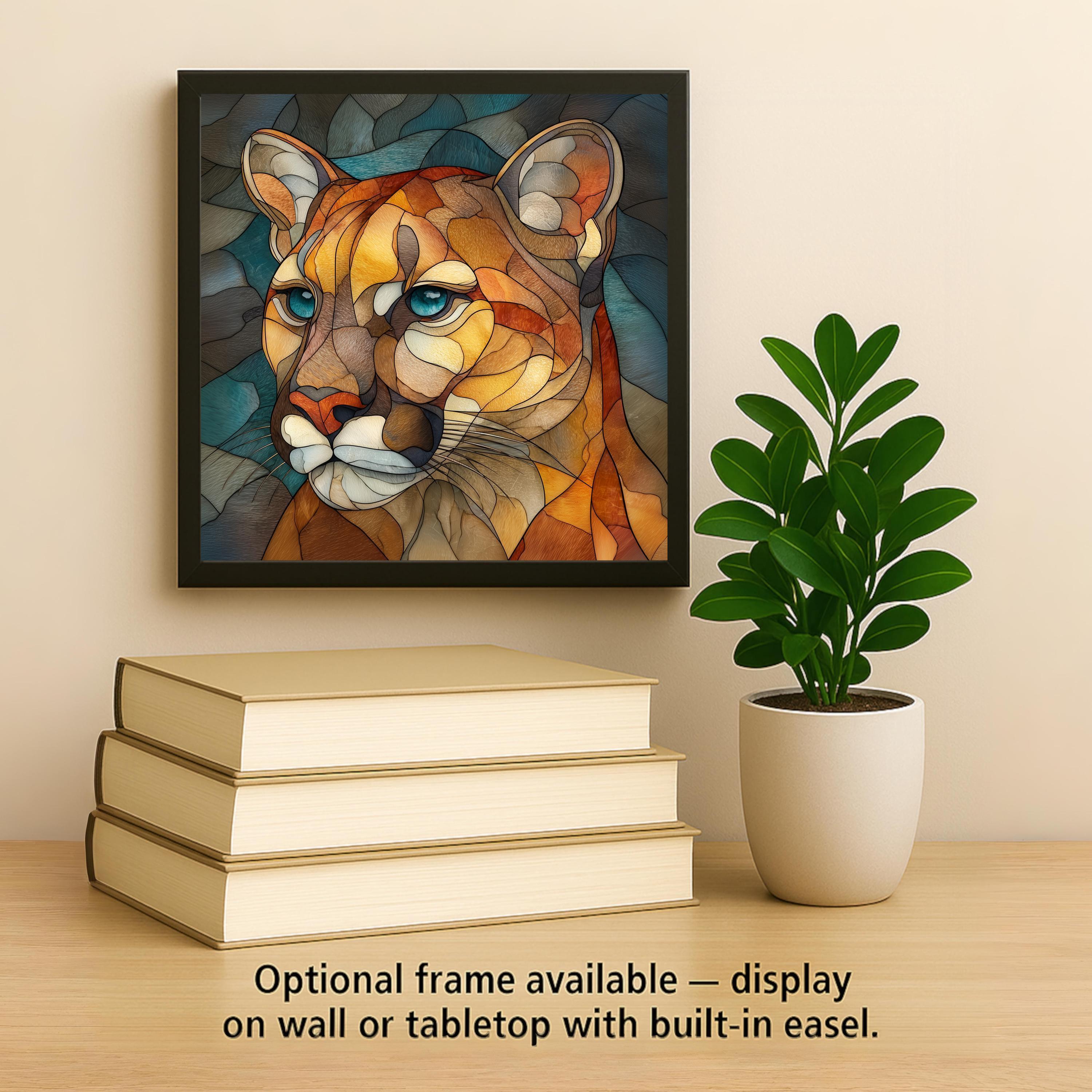 Inspired by the mountain lion’s role as a symbol of courage, awareness, and resilience, this ceramic tile wall art adds depth and intention to your home decor. The stained glass style enhances the natural contours of the cougar’s face, using warm highlights and cool shadows to create a balanced, visually engaging composition.