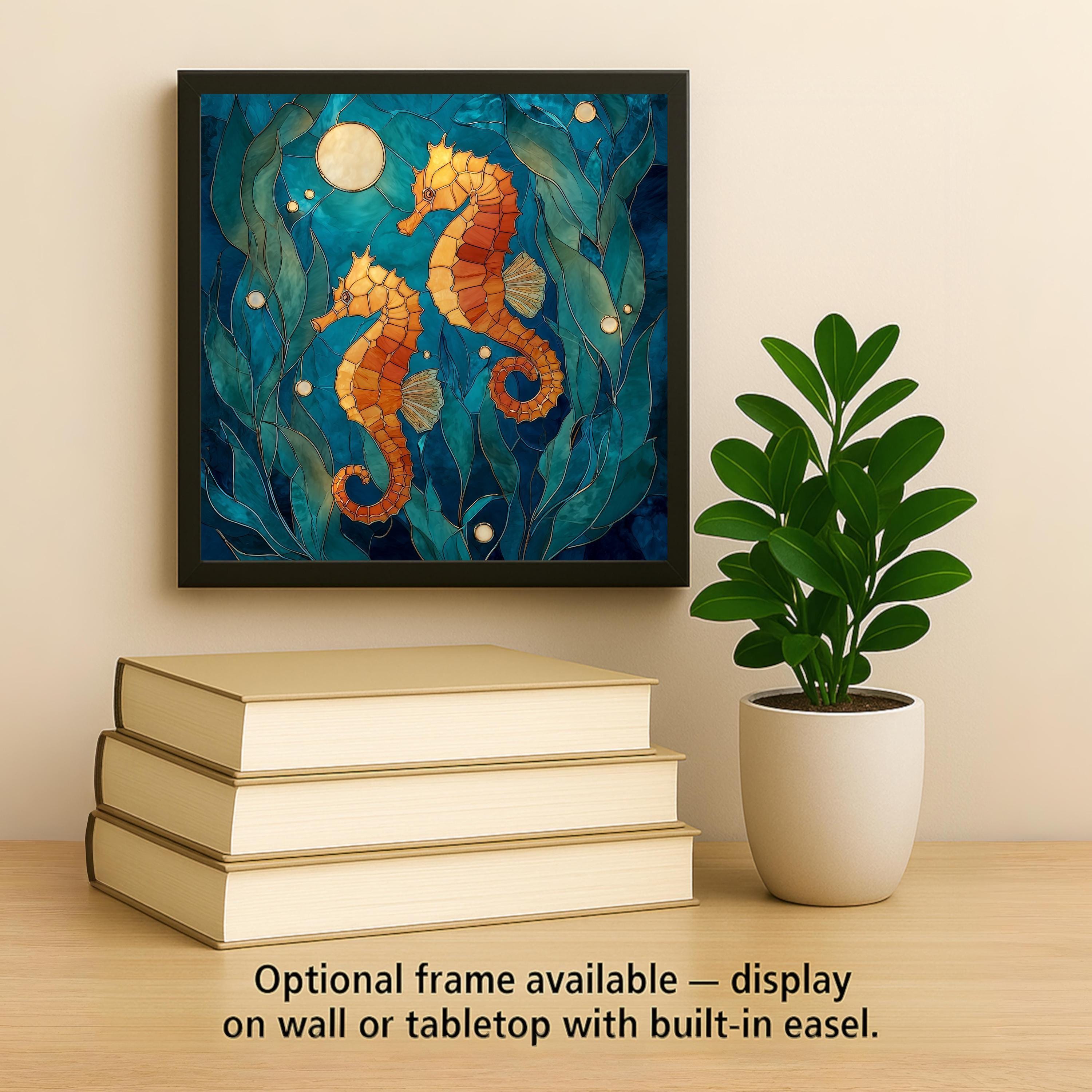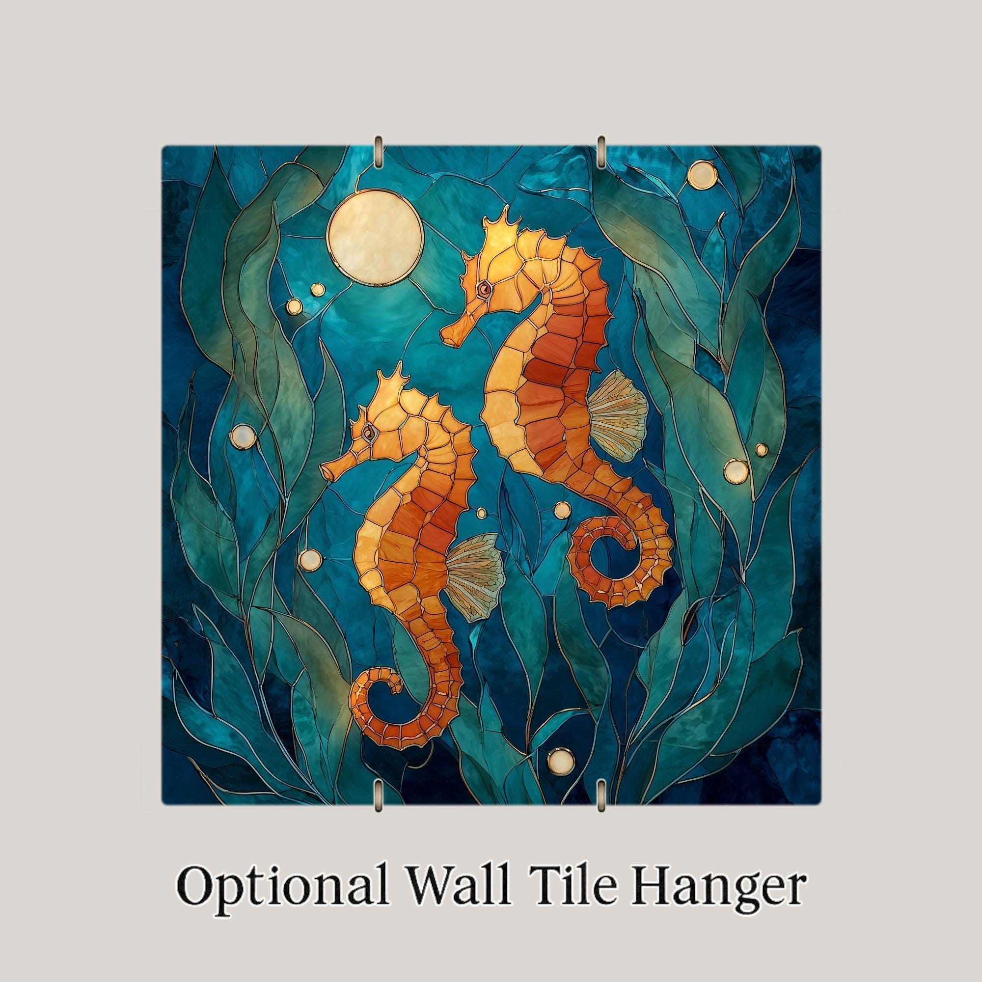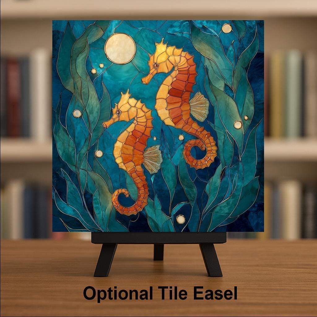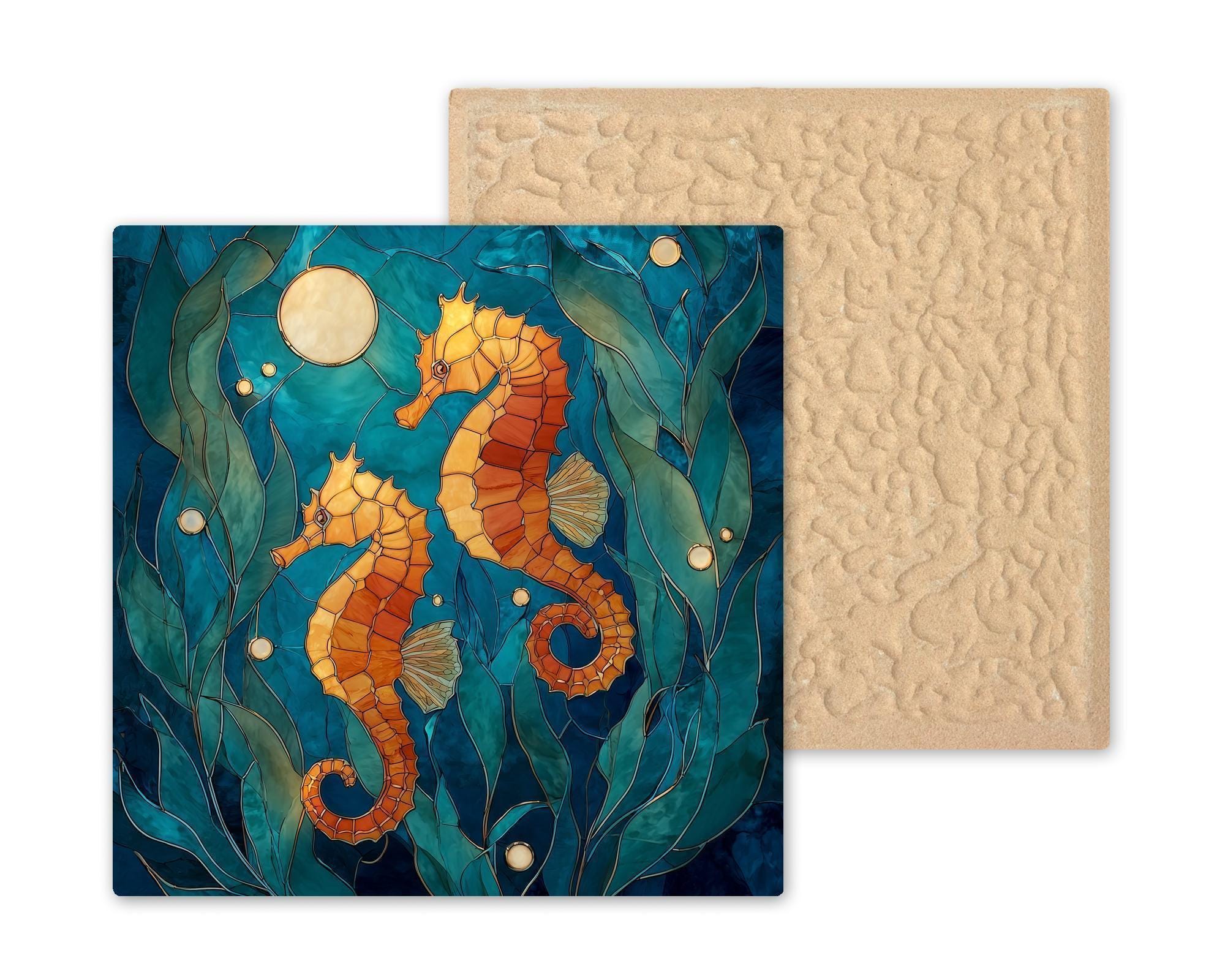 Designed for collectors who appreciate ocean-inspired wall decor with emotional resonance, this seahorse ceramic tile art brings together elegance, symbolism, and coastal charm. The stained glass aesthetic highlights layered textures and flowing contours that echo the movement of sea grass and tides, creating a peaceful focal point for your home decor.
