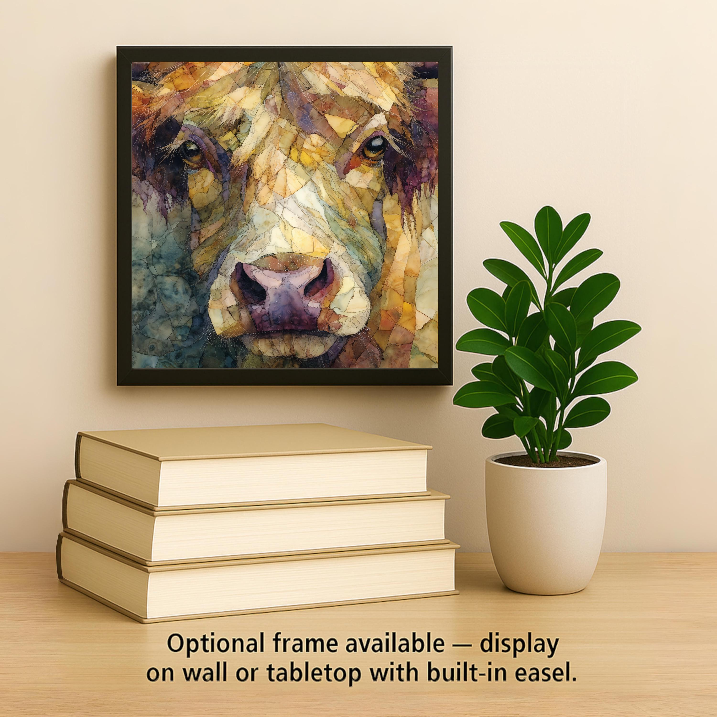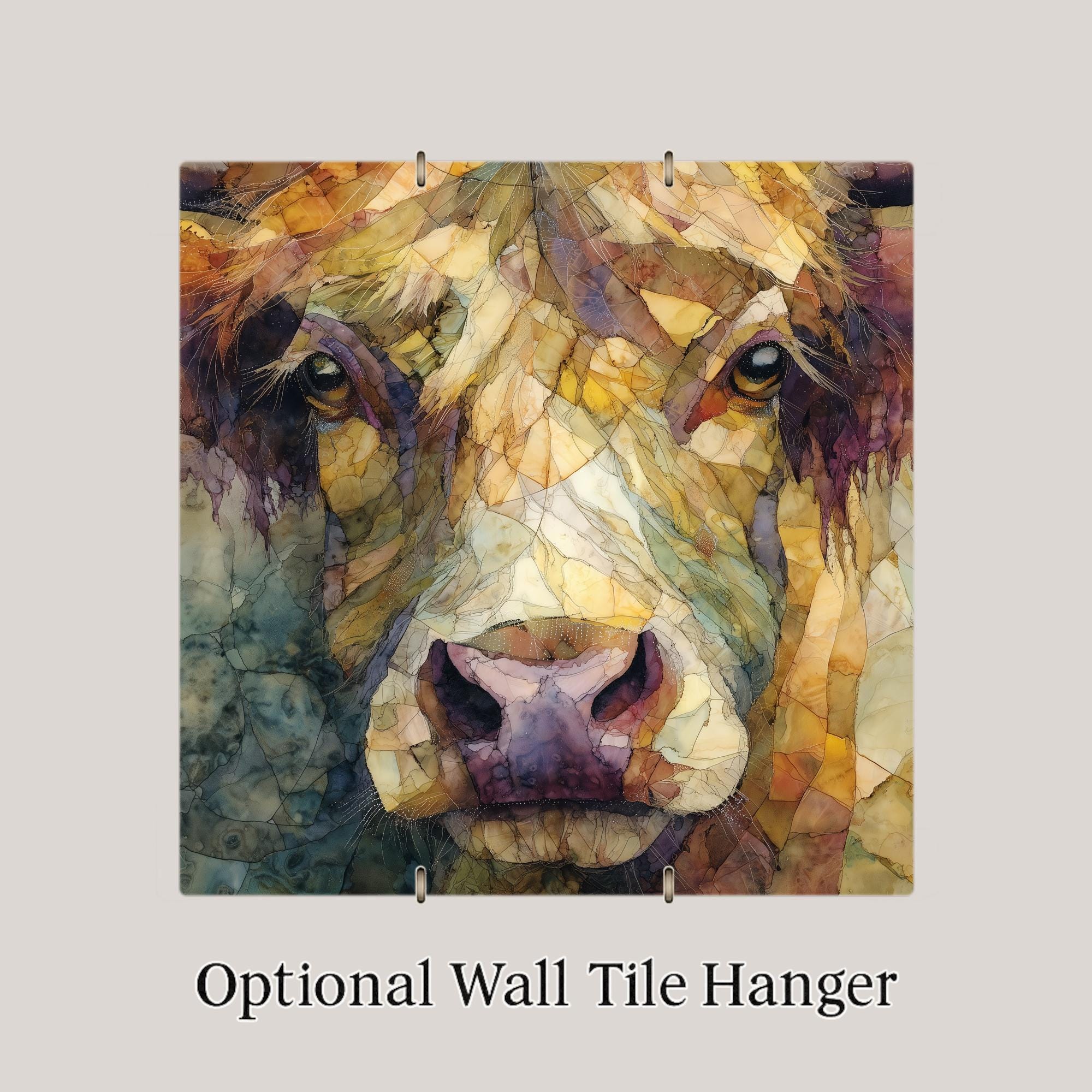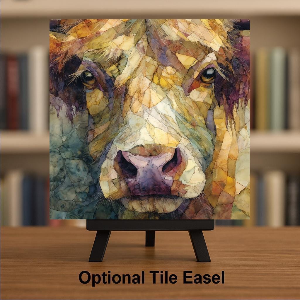 Whether purchased as a gift or as a personal decor piece, this cow portrait tile offers a unique alternative to traditional prints or canvases. Optional add-ons include a tile wall hanger, easel tile stand, cork backing, or premium frame, allowing you to customize how the tile is displayed in your space.