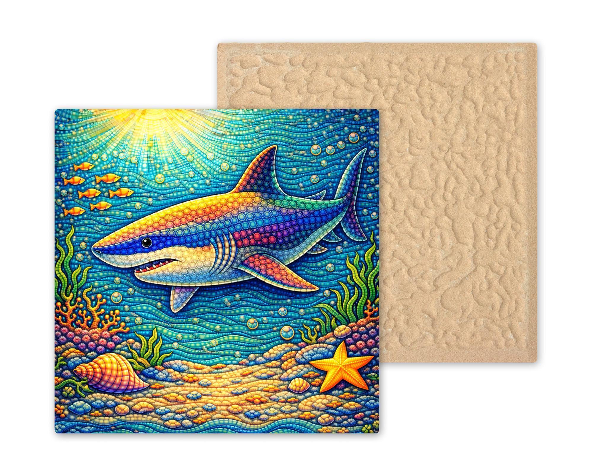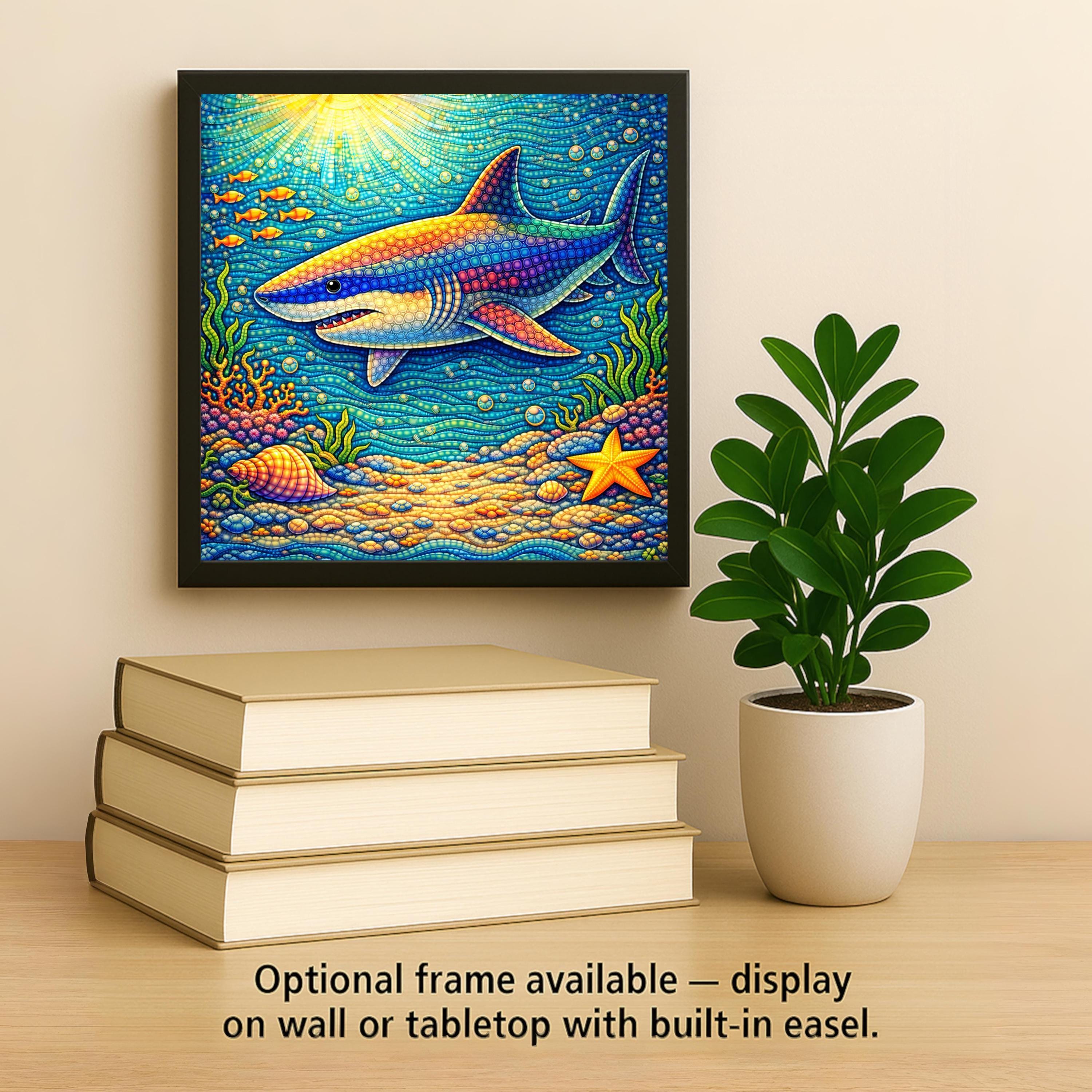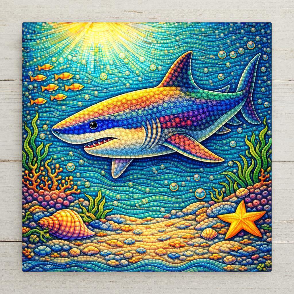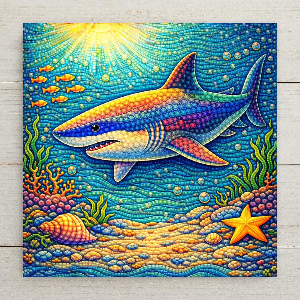This colorful shark wall decor is designed to spark imagination and joy. The soft curves, mosaic textures, and friendly expression make this piece feel approachable and fun rather than intimidating, which is why it performs so well as nursery wall art and whimsical home decor. It pairs beautifully with ocean themes, coastal nurseries, sea life decor, and beach-inspired interiors.