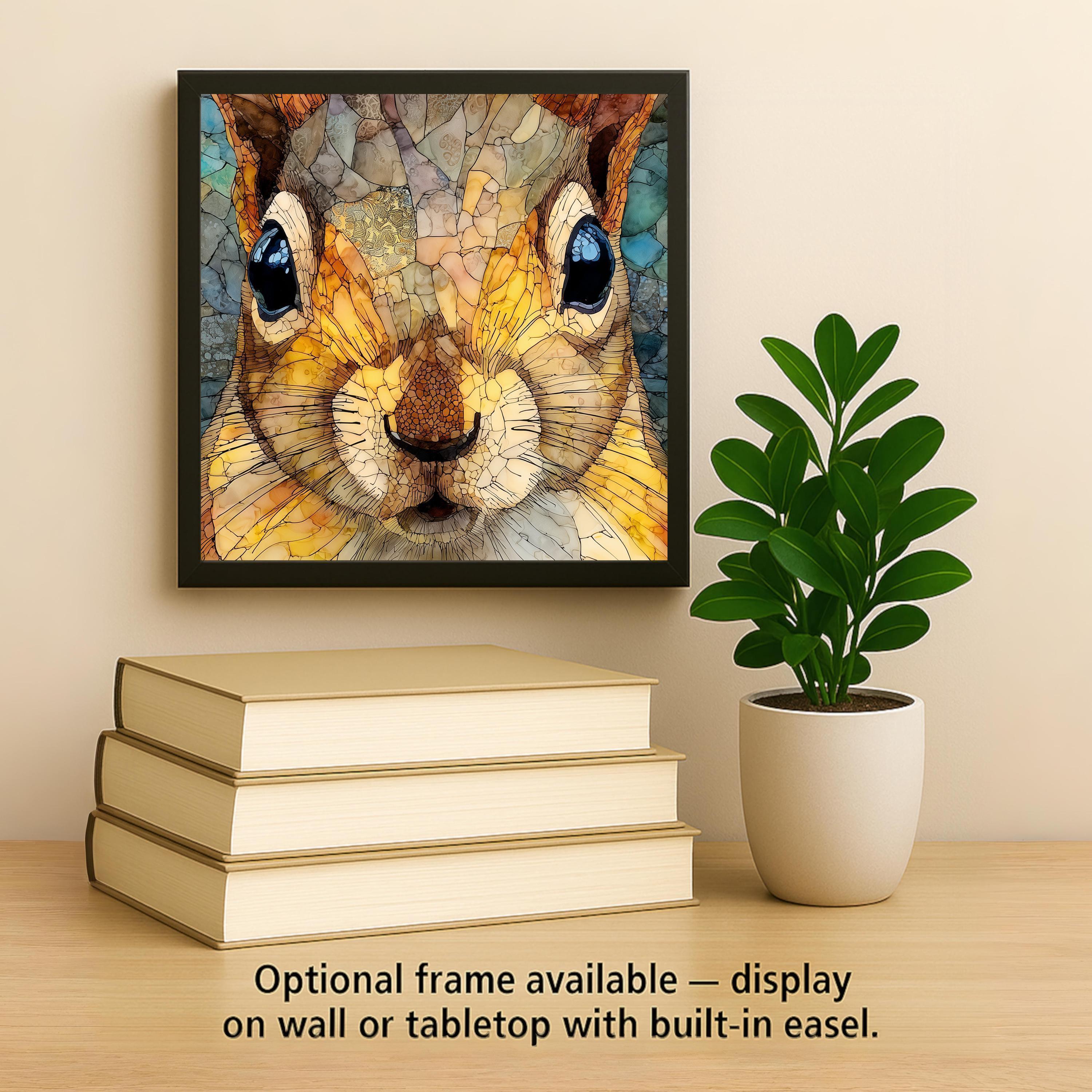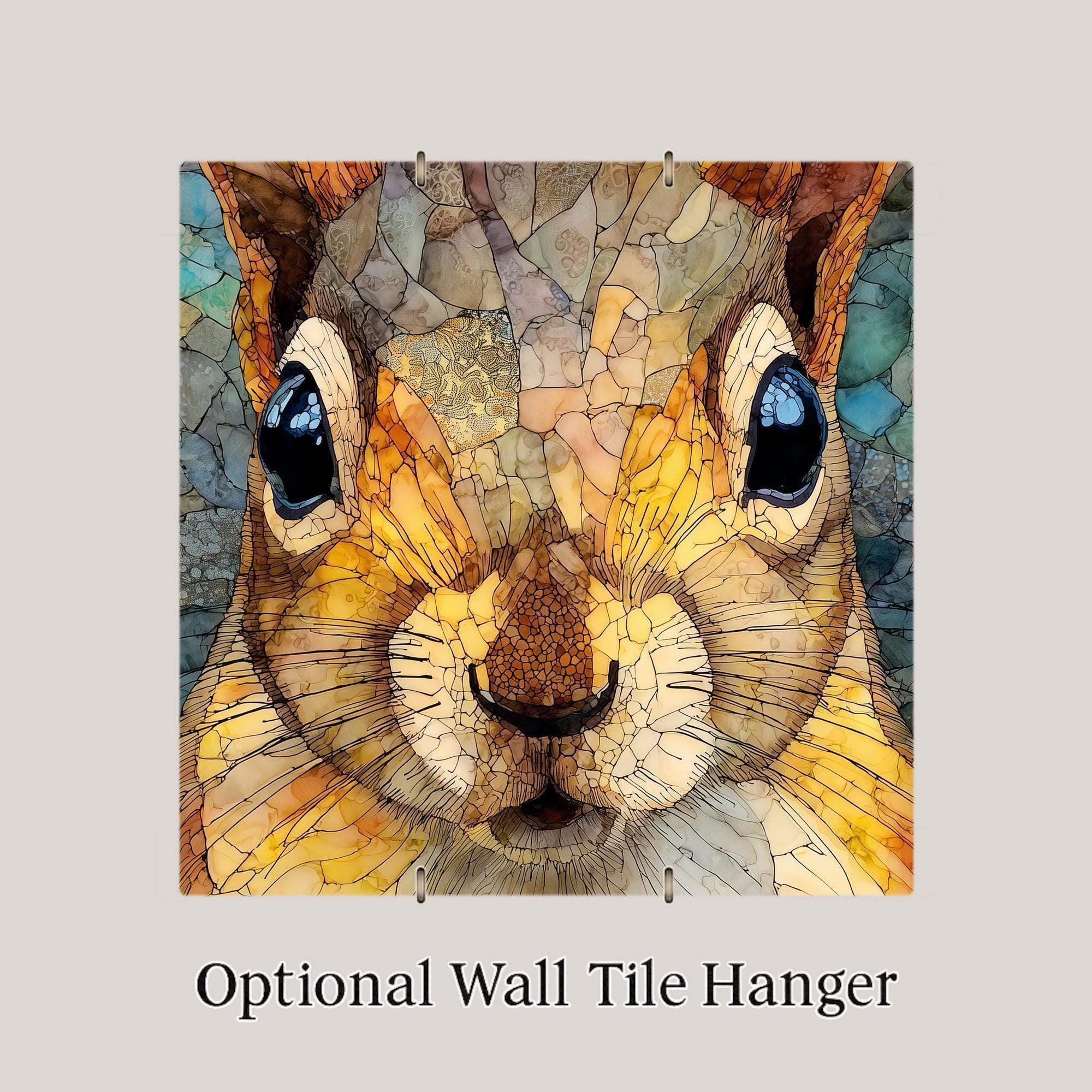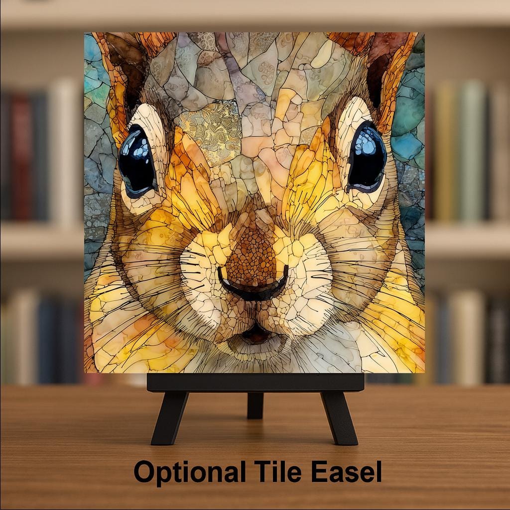 This wildlife ceramic tile captures the quiet intelligence and playful spirit of a squirrel through a stained glass aesthetic that feels timeless yet modern. The mosaic-style linework enhances the fur texture and facial features, while the soft earth-tone palette blends easily with rustic, cottage, farmhouse, and nature-themed home decor styles.