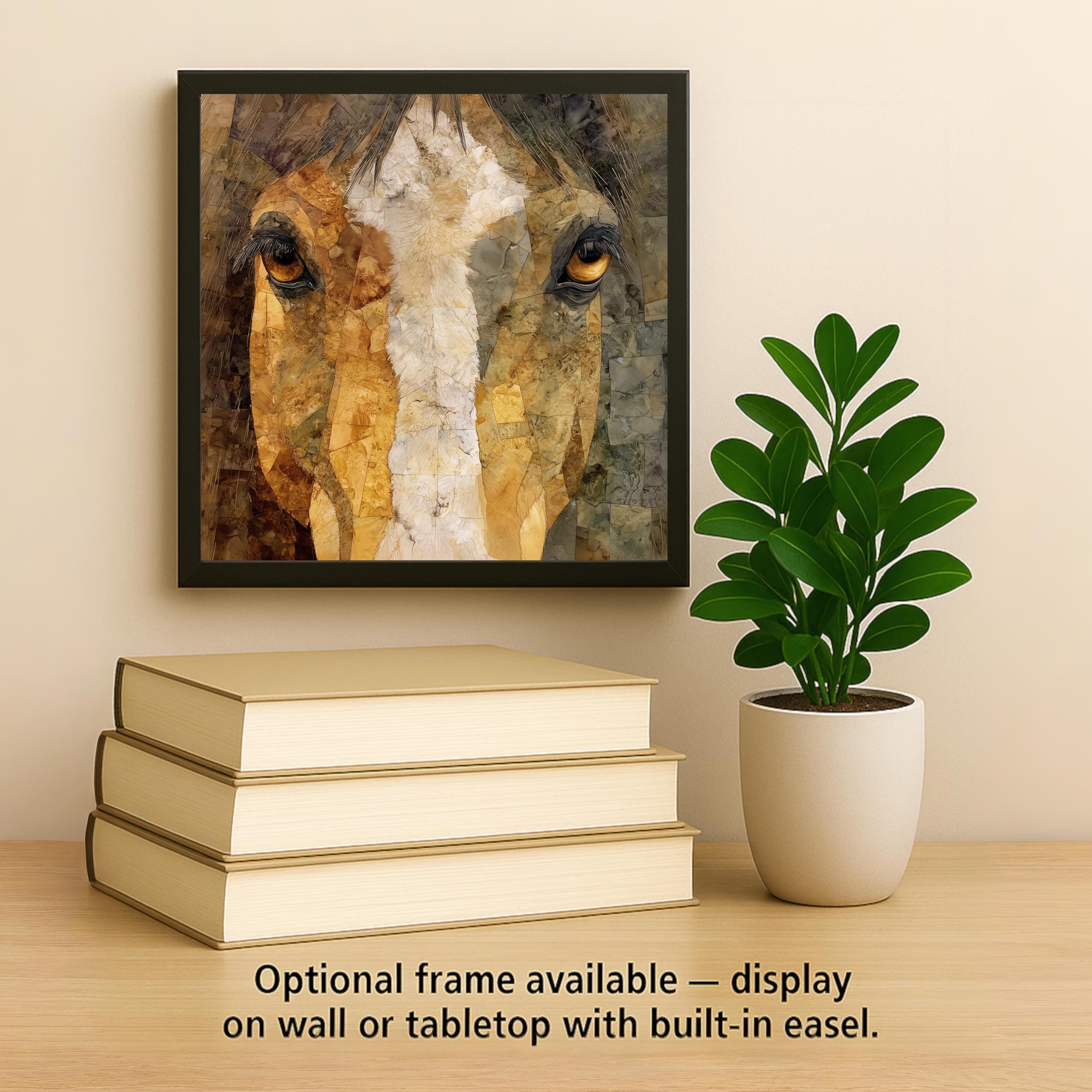 Horses are symbols of freedom, strength, loyalty, and grace, making this artwork especially meaningful for horse lovers and equestrian enthusiasts. The close-up composition creates an emotional connection, drawing attention to the horse’s soulful gaze and natural beauty.