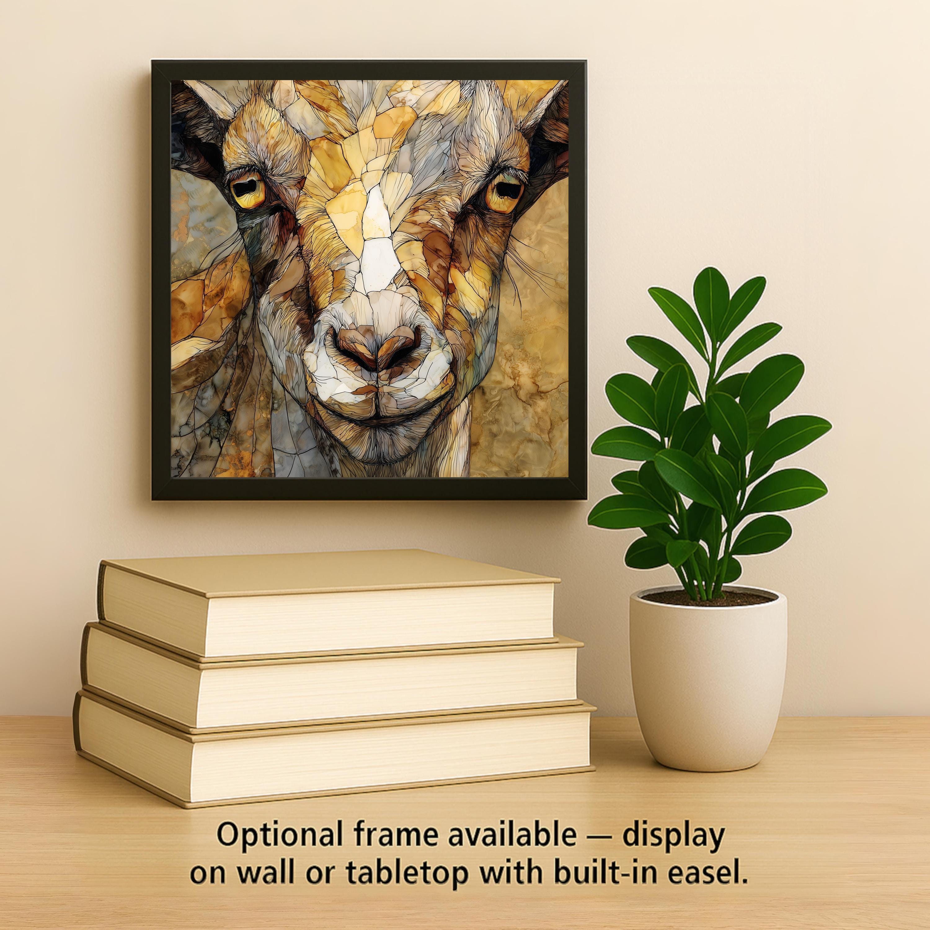 Goats symbolize curiosity, resilience, and playful charm, making this artwork especially appealing to animal lovers and rustic home decor fans. The intimate portrait style draws the viewer in, while the neutral, earthy palette blends seamlessly with farmhouse, cottagecore, and modern rustic interiors.