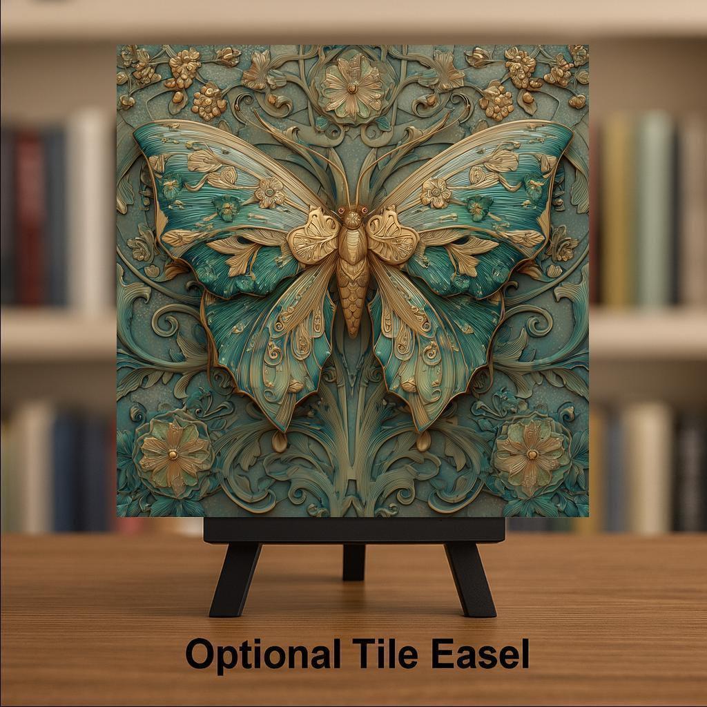 Add a sense of elegance and quiet beauty to your space with this Art Nouveau butterfly ceramic tile wall art. The symmetrical wings, flowing botanical elements, and stained glass–style colors give this piece a timeless look that blends easily with both vintage and modern interiors. This nature-inspired wall decor is designed to feel calming, intentional, and visually balanced.