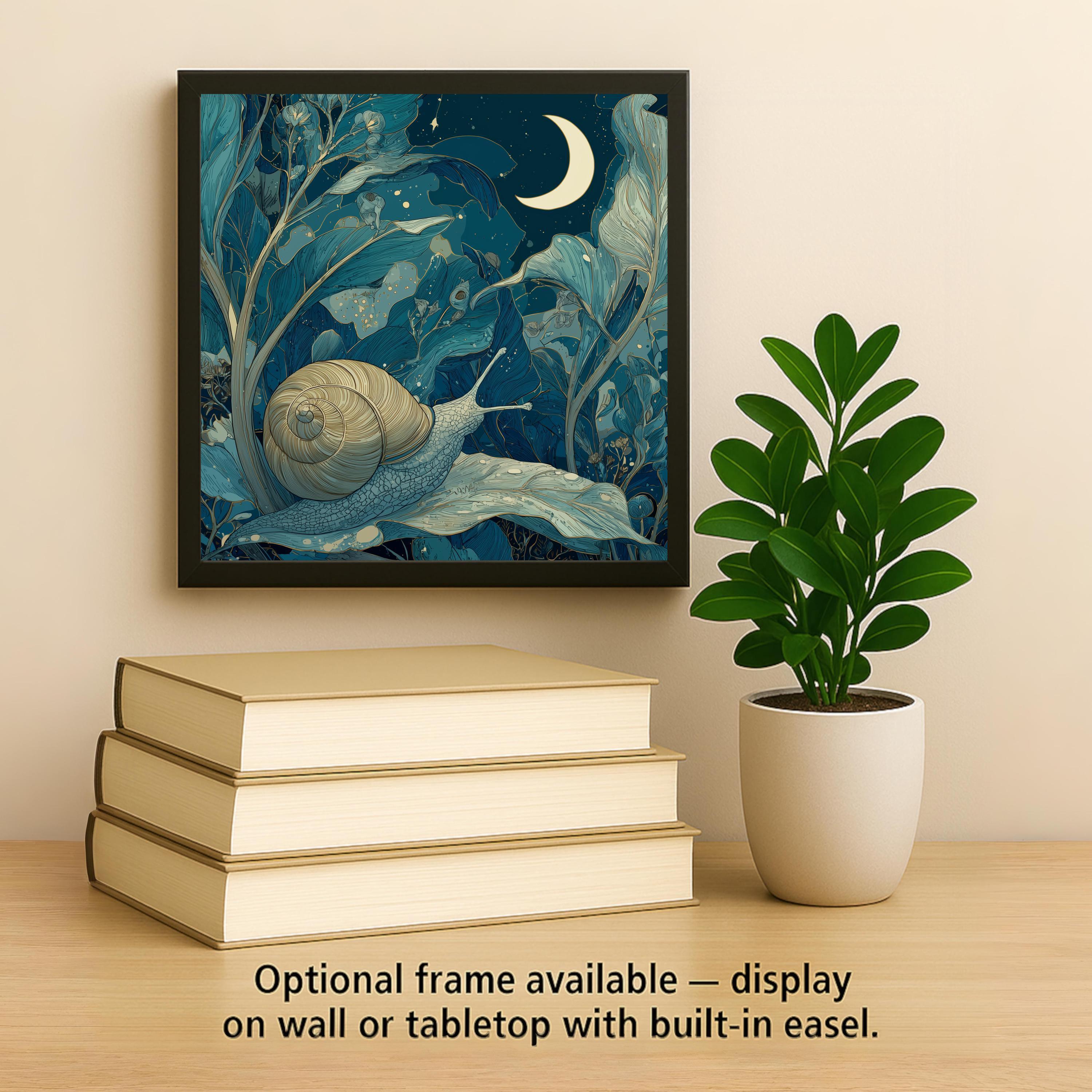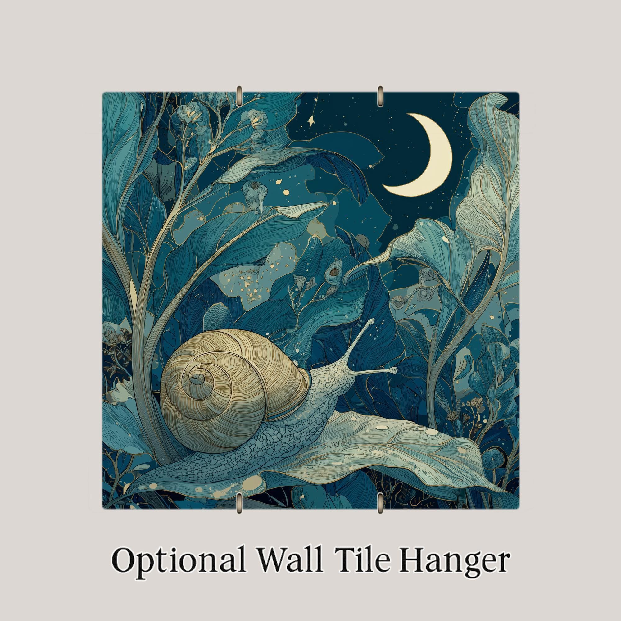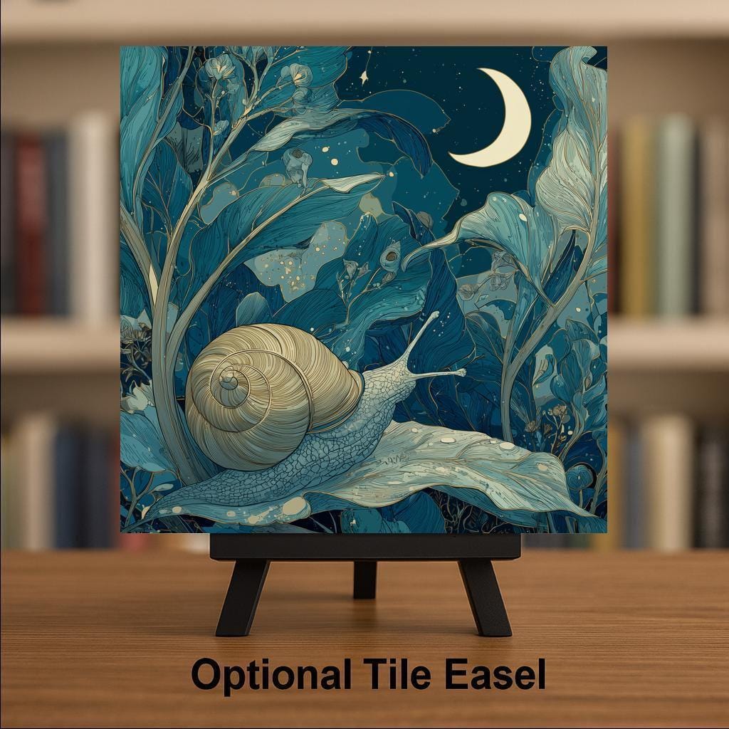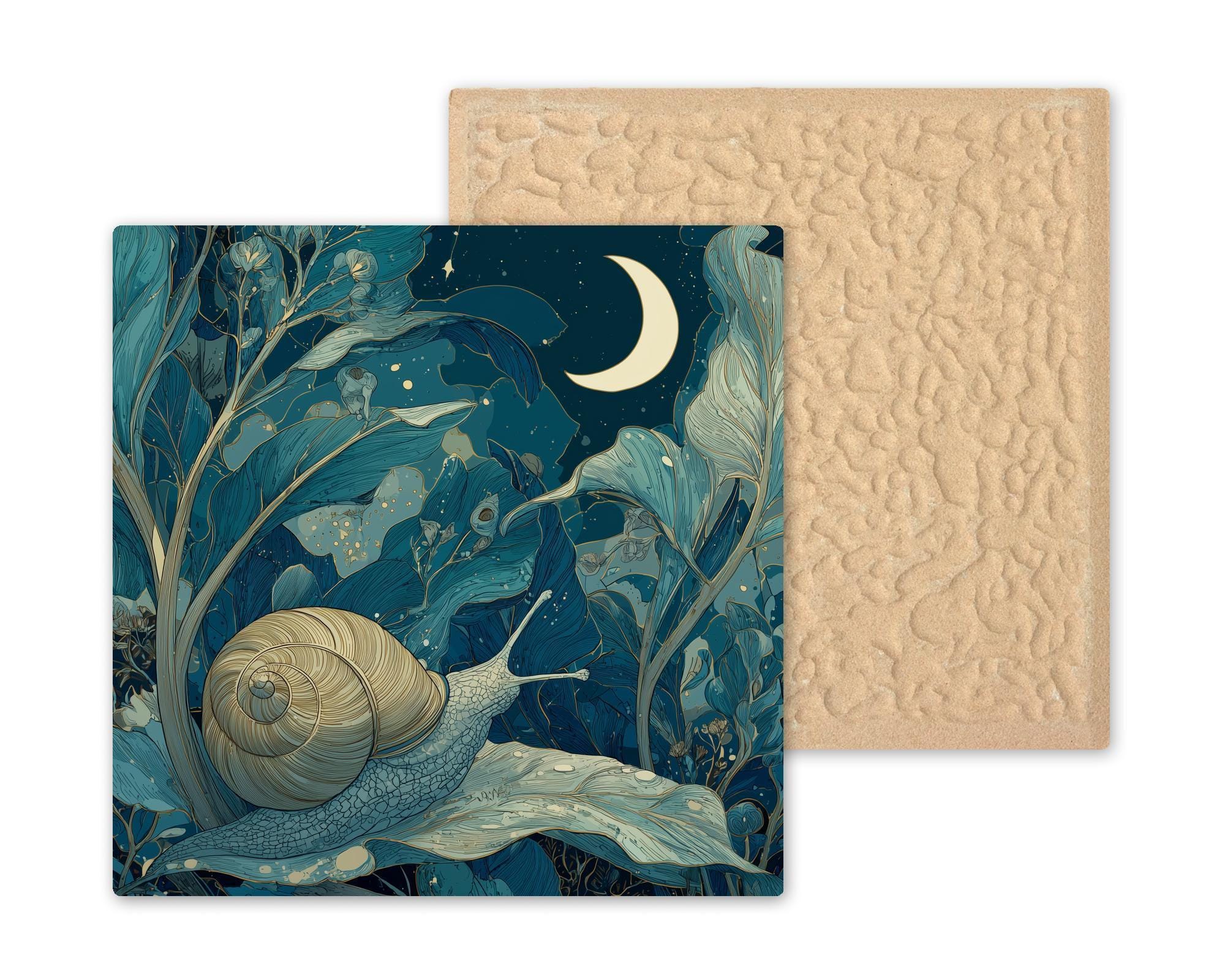 Designed for lovers of whimsical home decor and story-inspired art, this moonlit snail ceramic tile brings a gentle sense of wonder into any space. The artwork blends flowing botanical shapes, soft night tones, and a glowing crescent moon to create a calming focal point that feels intimate and poetic.