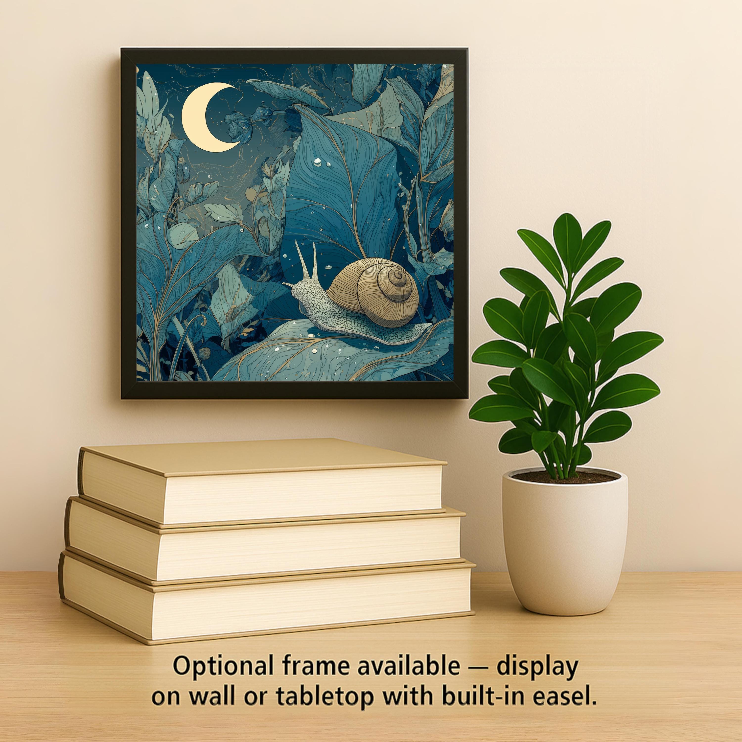 Many customers choose this piece as nursery wall decor, bedroom art, or a soothing accent in meditation spaces and cozy reading corners. It also makes a thoughtful gift for gardeners, snail lovers, nature enthusiasts, or anyone who appreciates whimsical artwork with a quiet, poetic feel.