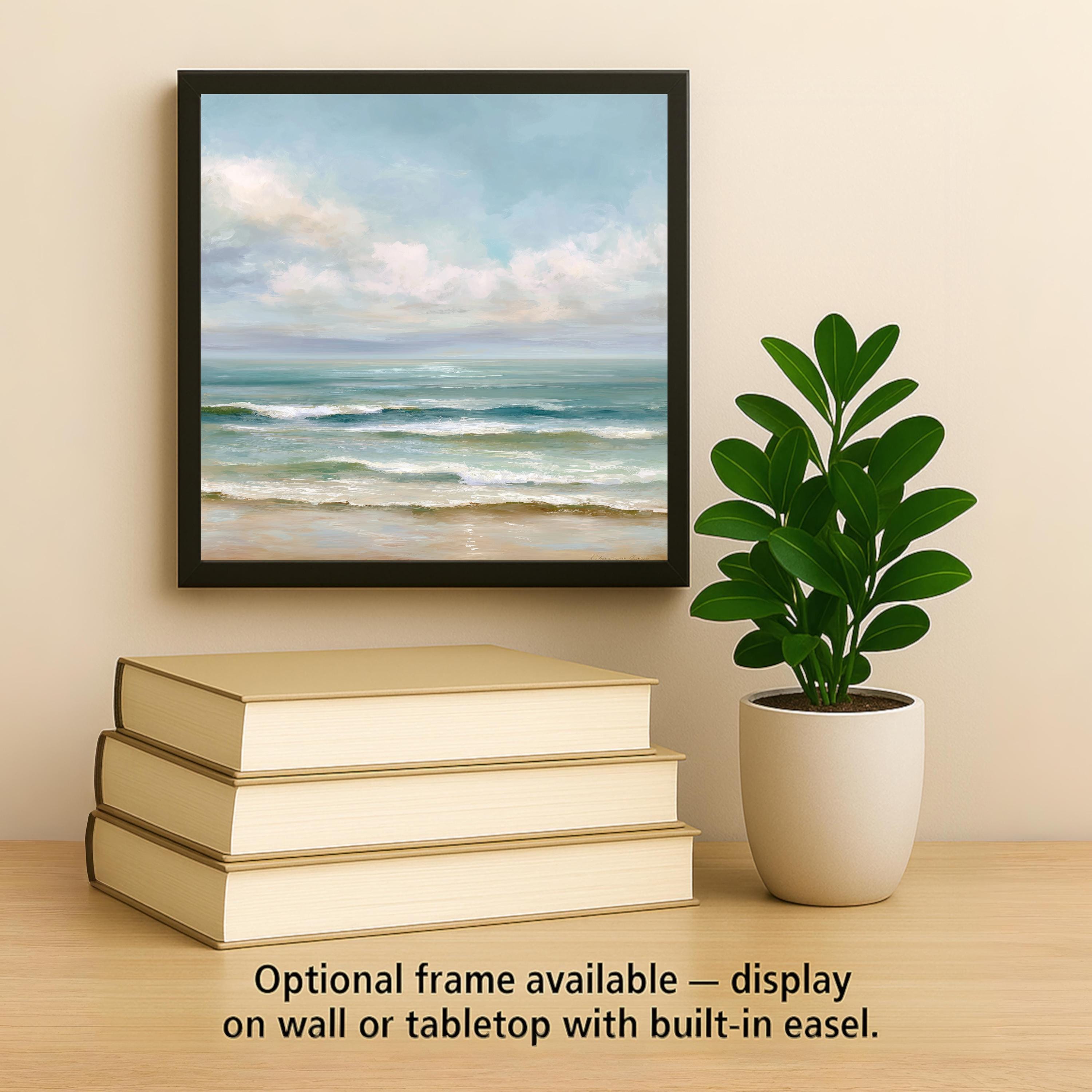 Optional display accessories allow you to customize how it’s shown in your home. Choose a tile wall hanger for vertical display, a cork backing for tabletop use, or an easel tile stand for shelves and consoles. A premium frame upgrade is also available, offering a polished, ready-to-display presentation.