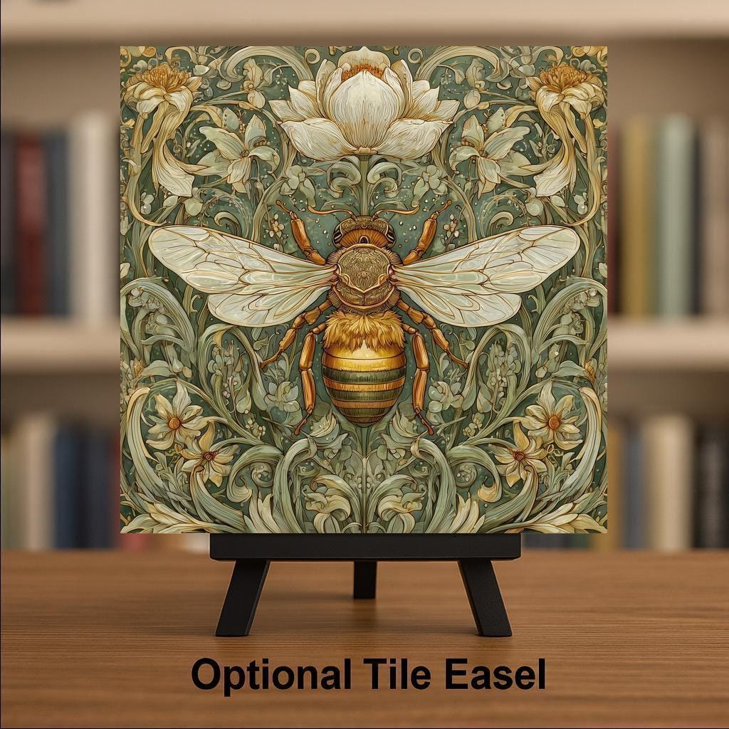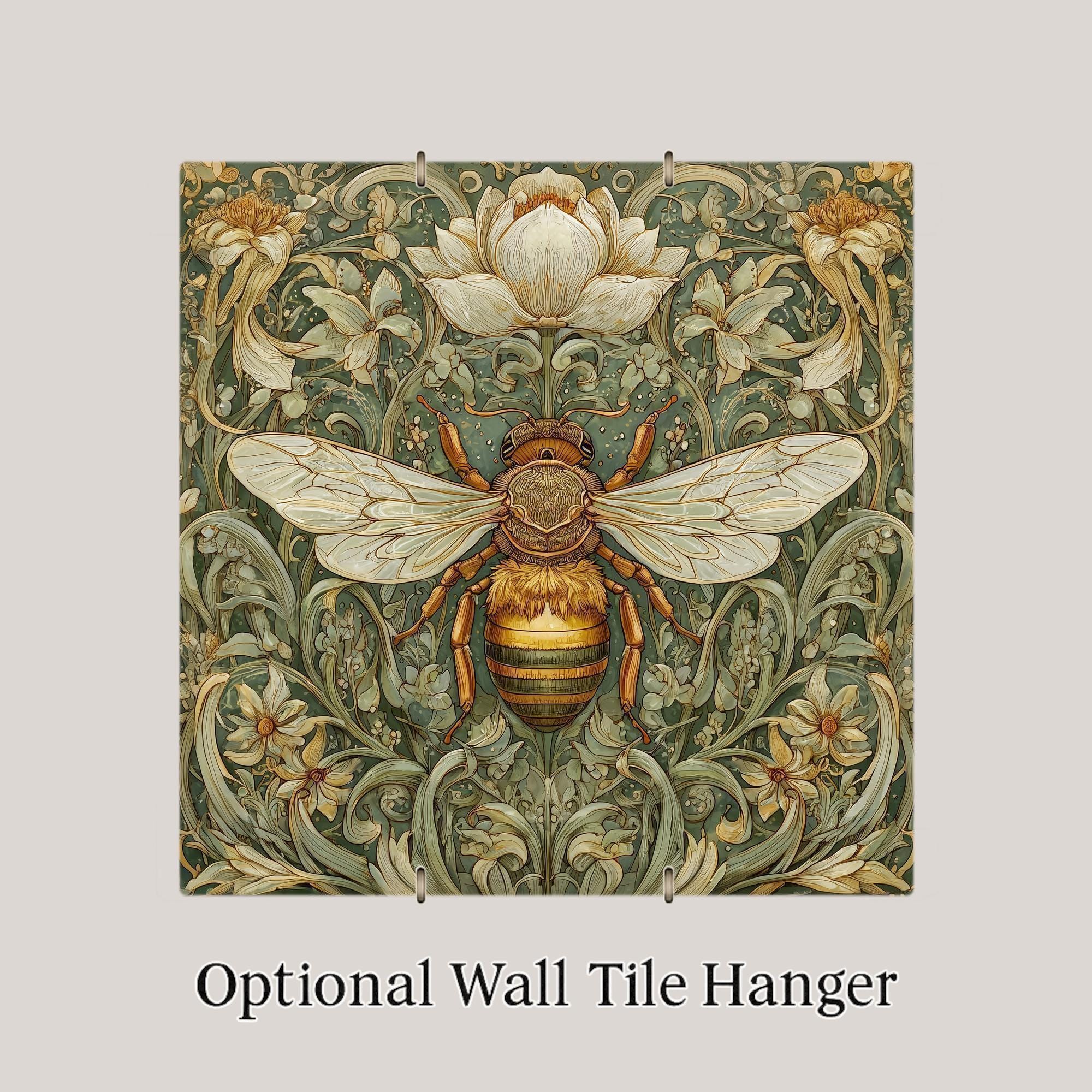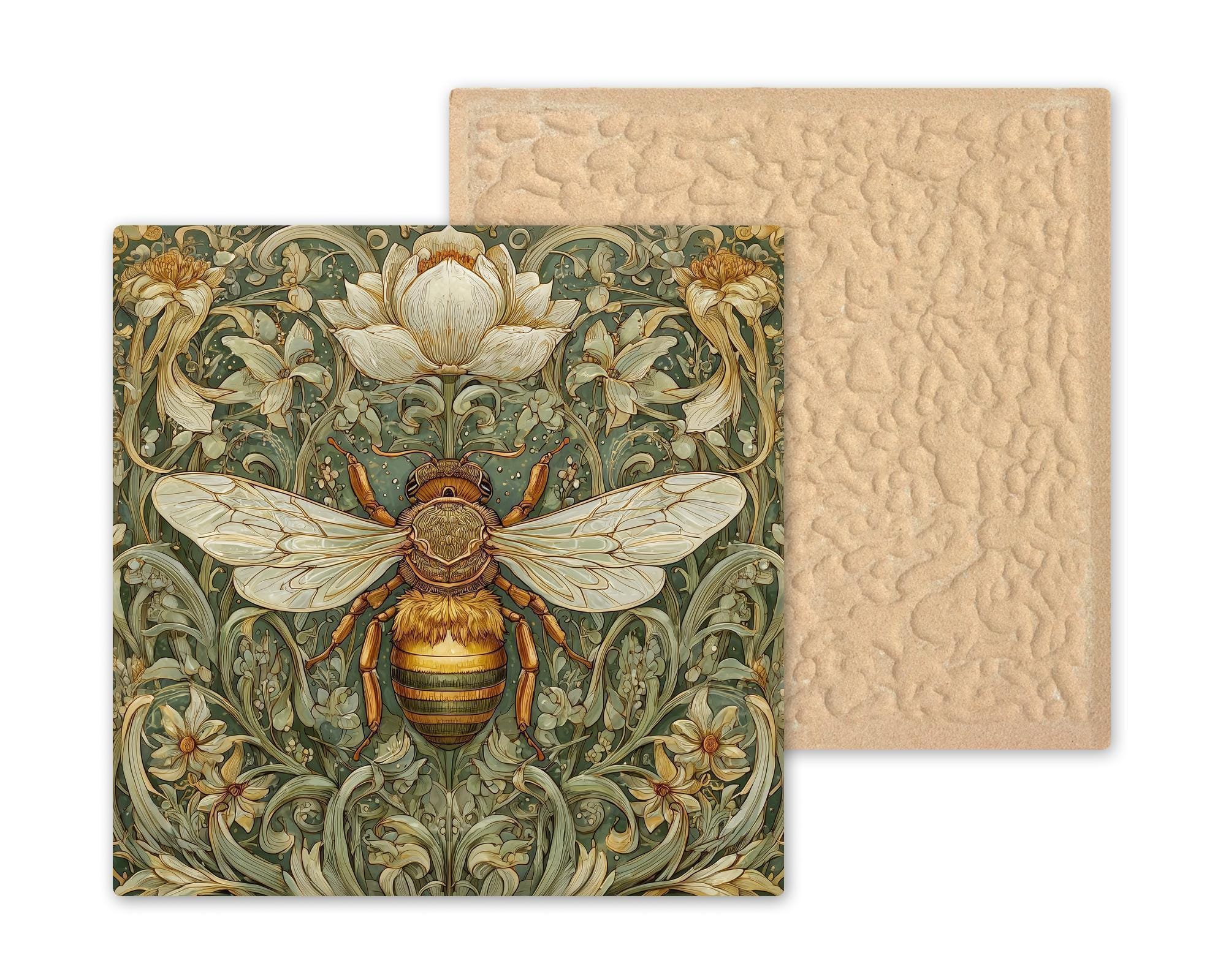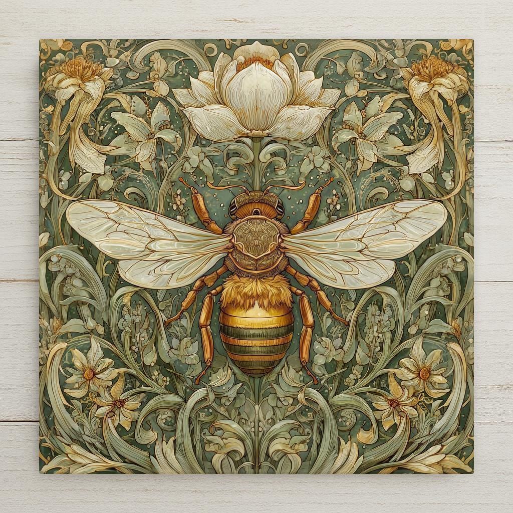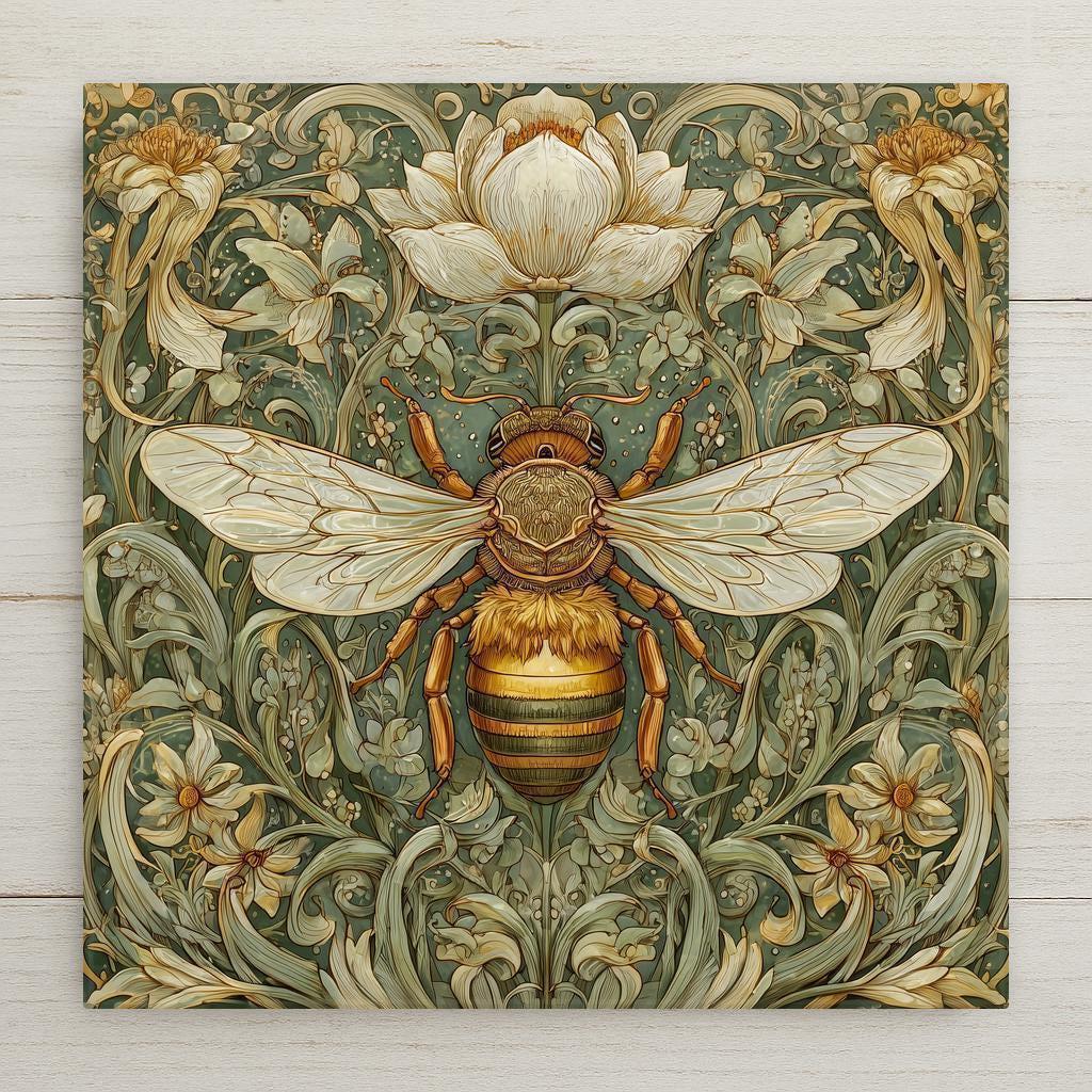 This botanical bee ceramic tile wall art blends classic Art Nouveau aesthetics with modern production techniques, making it both visually striking and easy to display. The symmetrical bee motif symbolizes growth, harmony, and creativity, while the flowing floral background adds a calming, organic rhythm to the design.