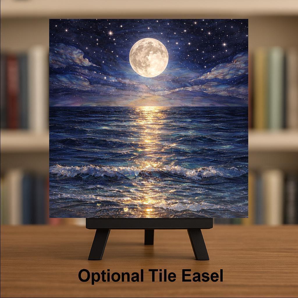 This tile wall art makes a thoughtful gift for moon lovers, coastal homeowners, or anyone who appreciates calming nature scenes. It also pairs beautifully with other coastal or celestial tiles for a collected display.