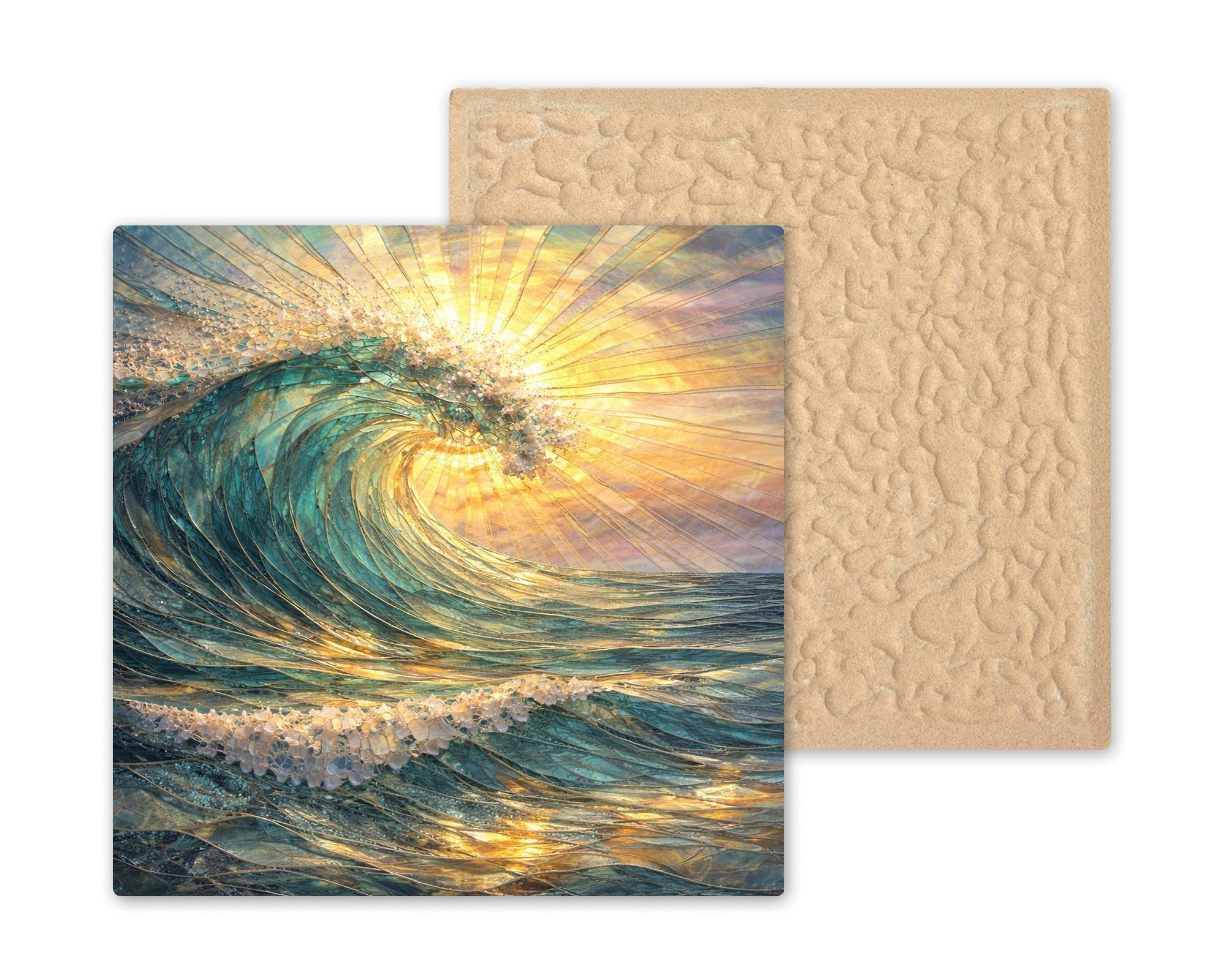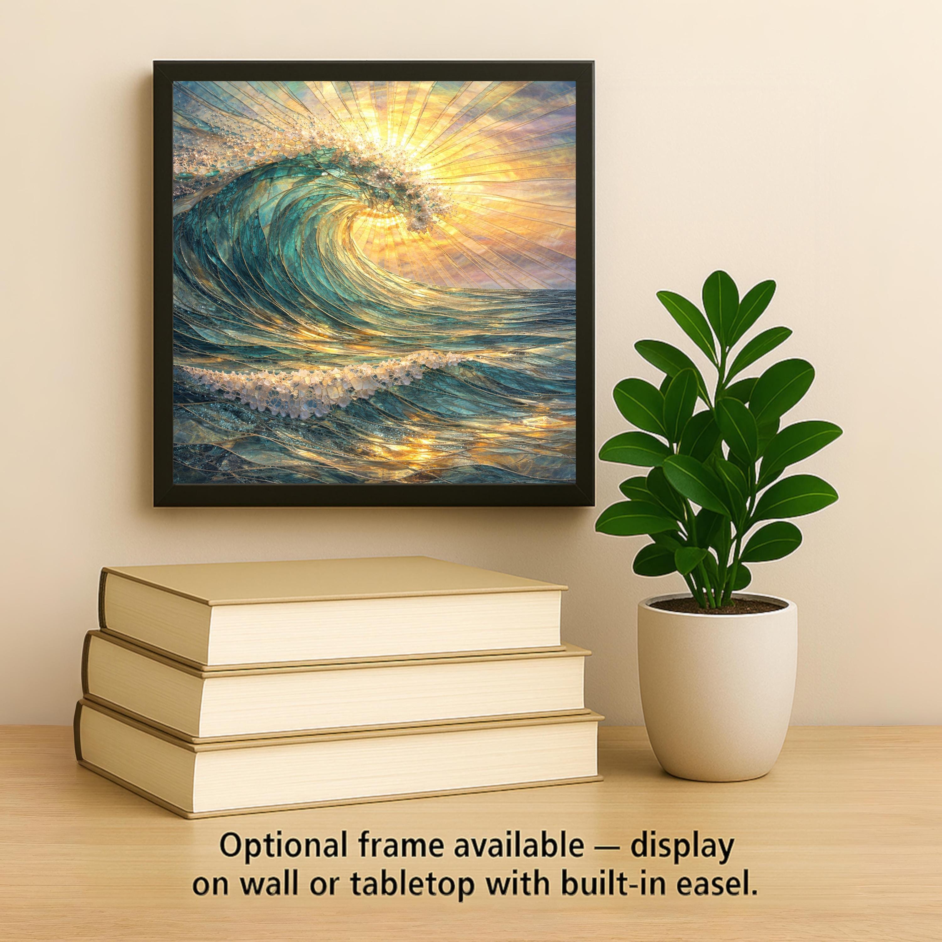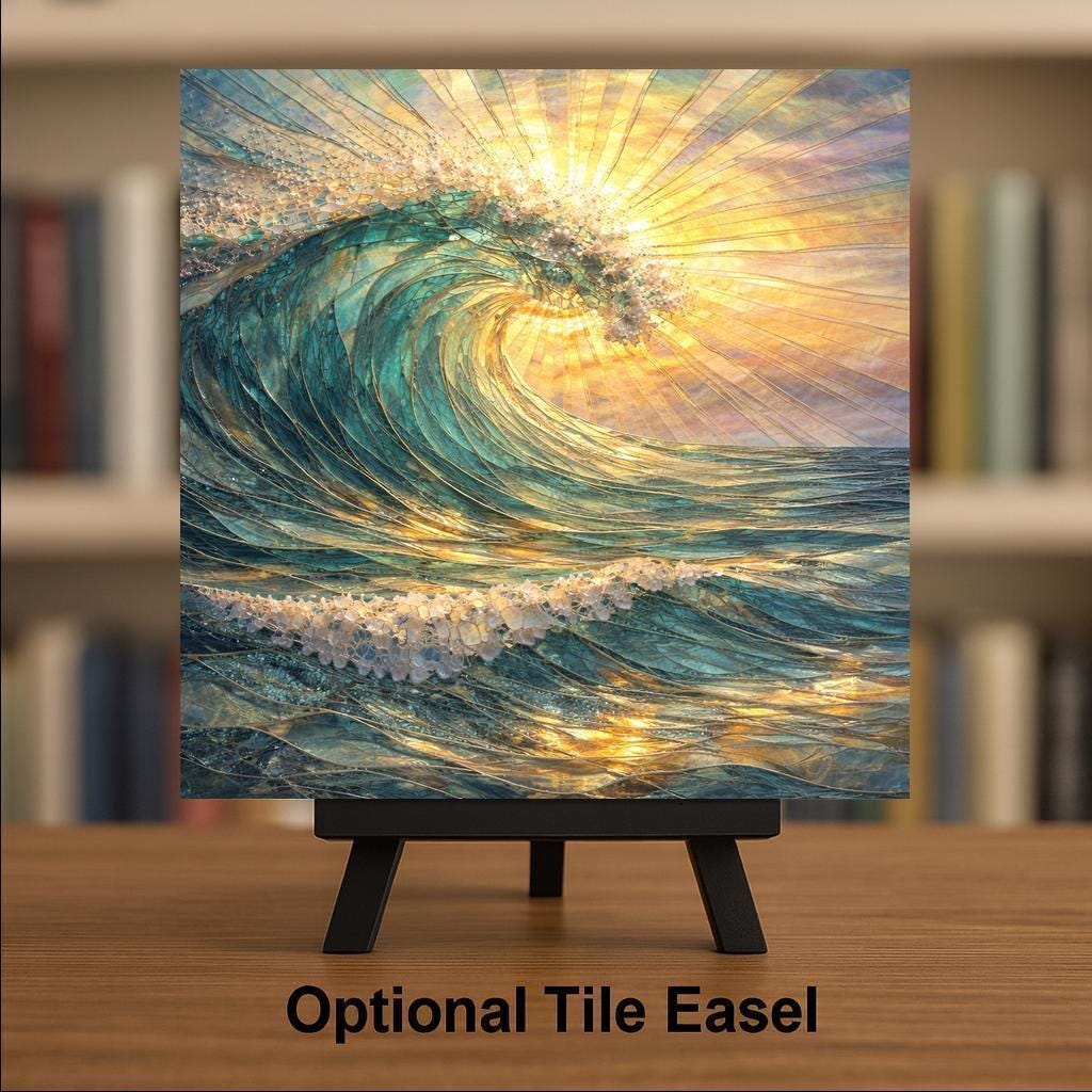 Display options allow the tile to adapt to different environments. A tile wall hanger integrates cleanly into a gallery wall, while an easel tile stand or premium frame option allows it to function as a tabletop or shelf focal point. This piece pairs naturally with other ocean, wave, or coastal tiles to create a cohesive visual narrative.