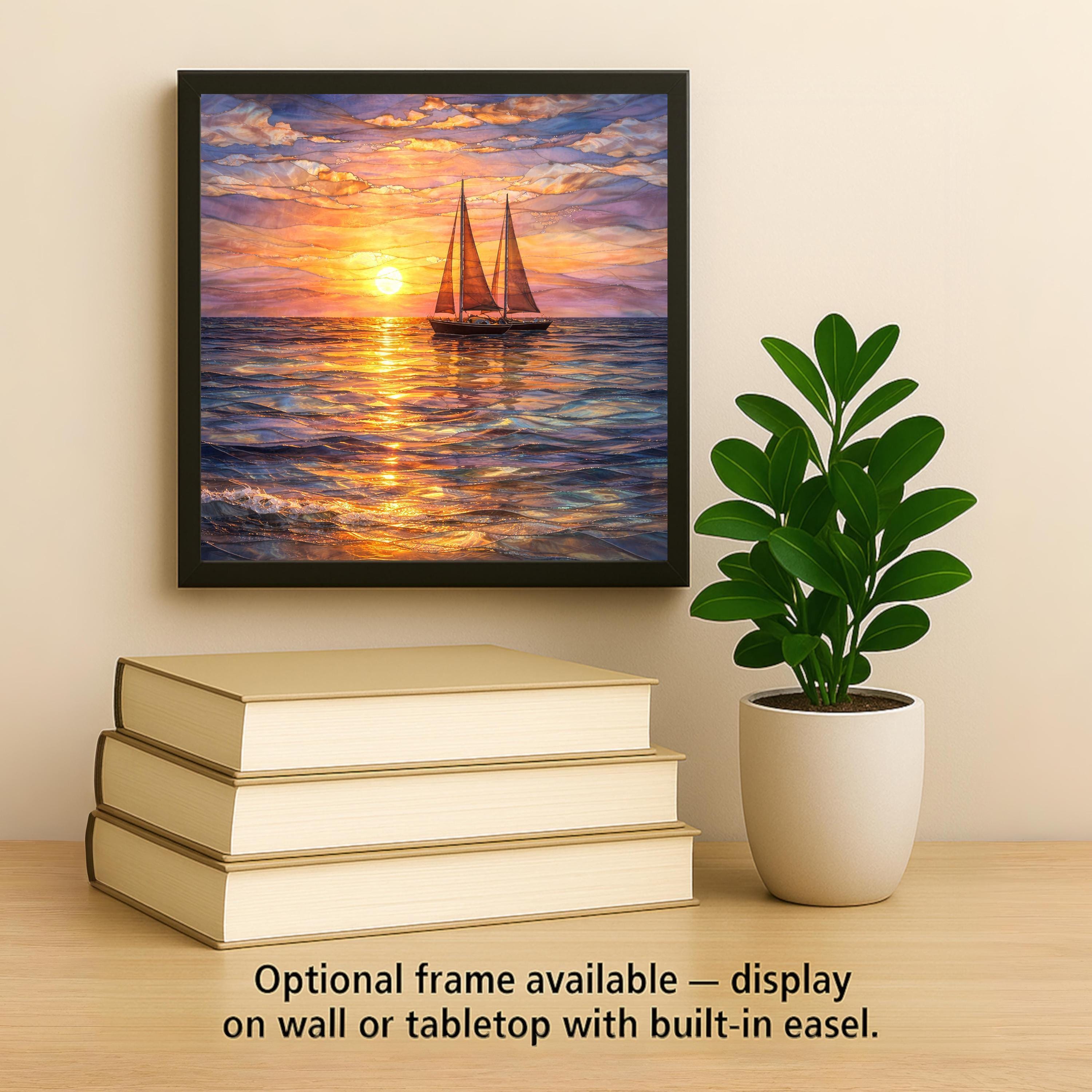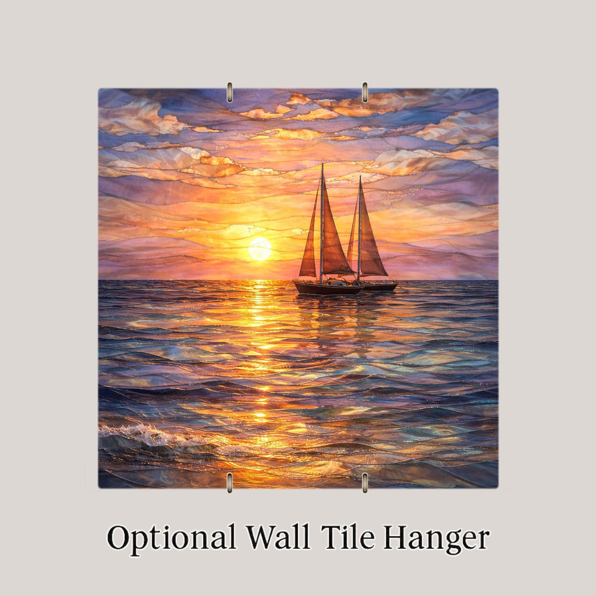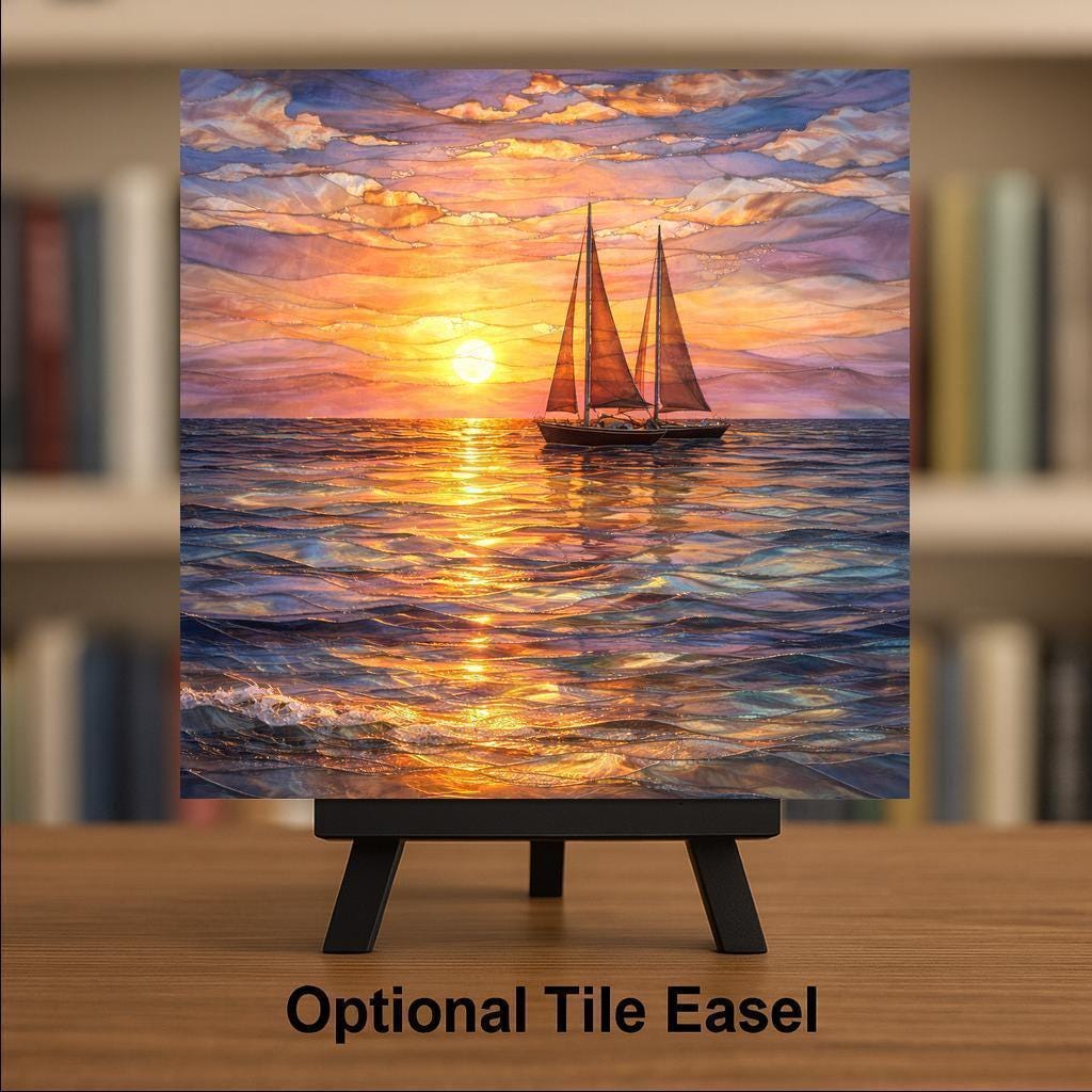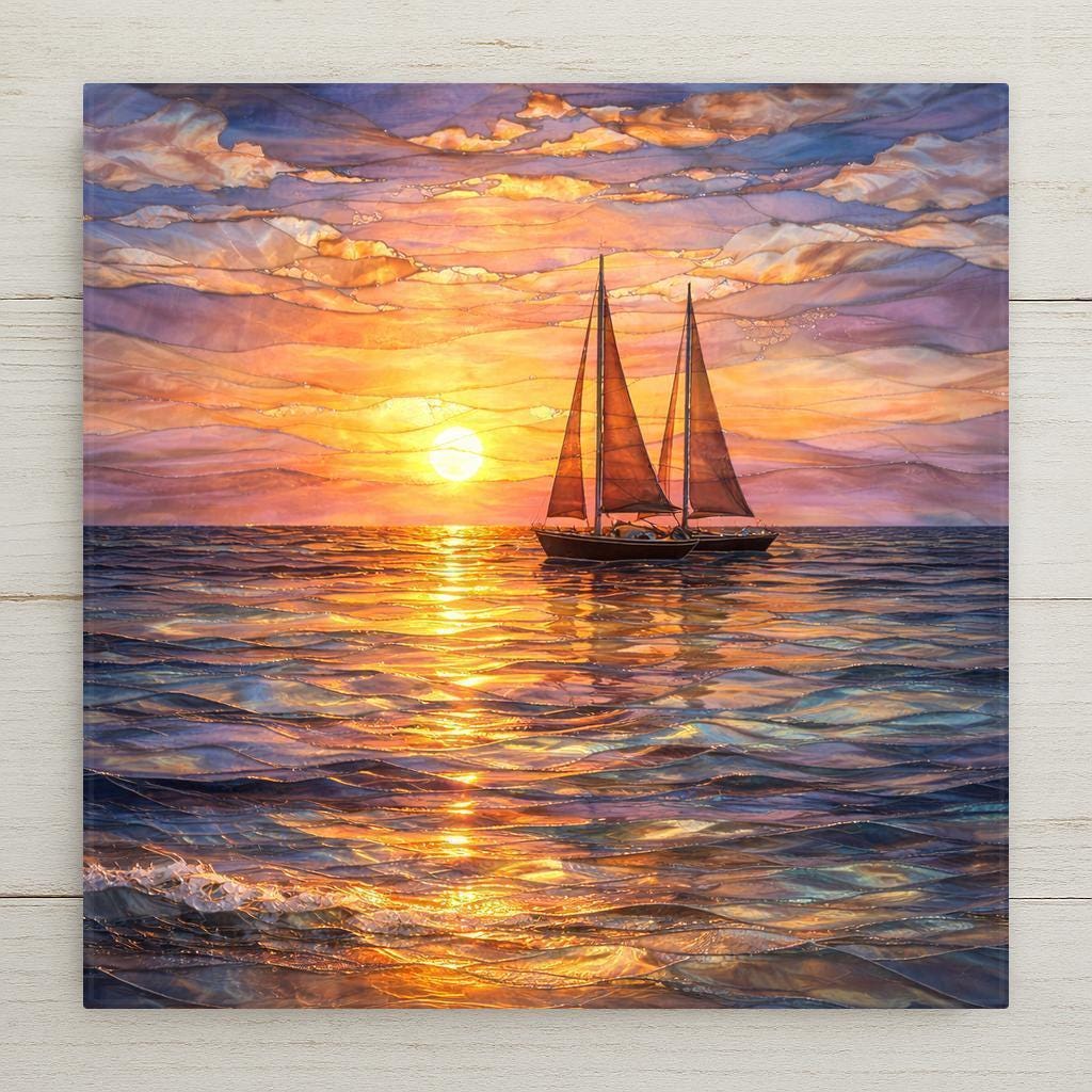 This sailboat ceramic tile wall decor captures a quiet moment on open water, where the day fades into evening and the sea reflects glowing sunset light. Gentle waves, warm sky colors, and the silhouette of a sailing boat create a calming composition that feels both reflective and inspiring.