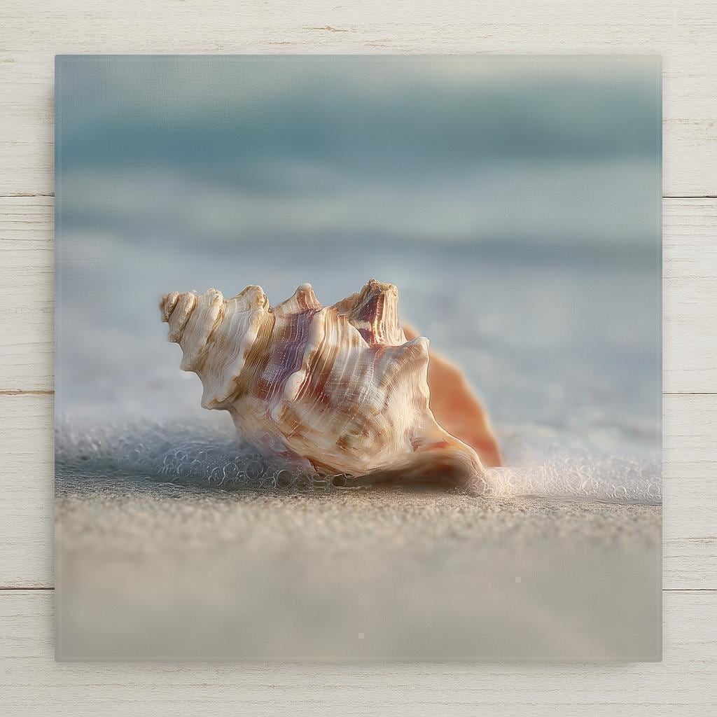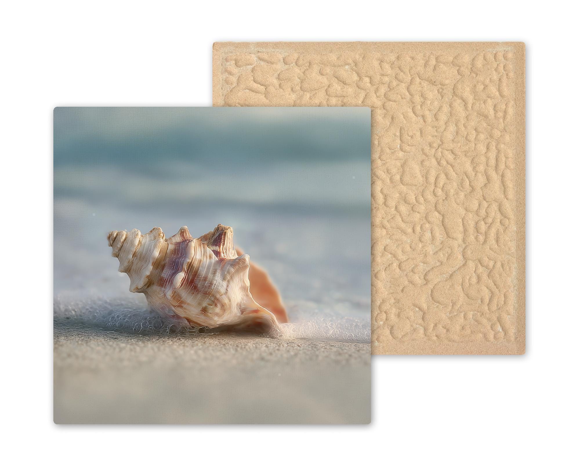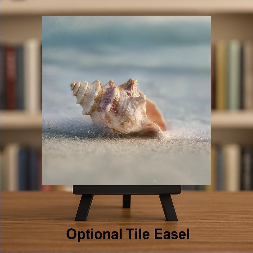 Each ceramic tile is printed with precision to highlight the subtle textures, gentle shadows, and natural color variations within the design. Although the artwork resembles stained glass or sculpted shell art, it is a high-quality printed image on ceramic tile, ensuring durability, consistency, and ease of care. This allows you to enjoy coastal artwork without the fragility of traditional materials.