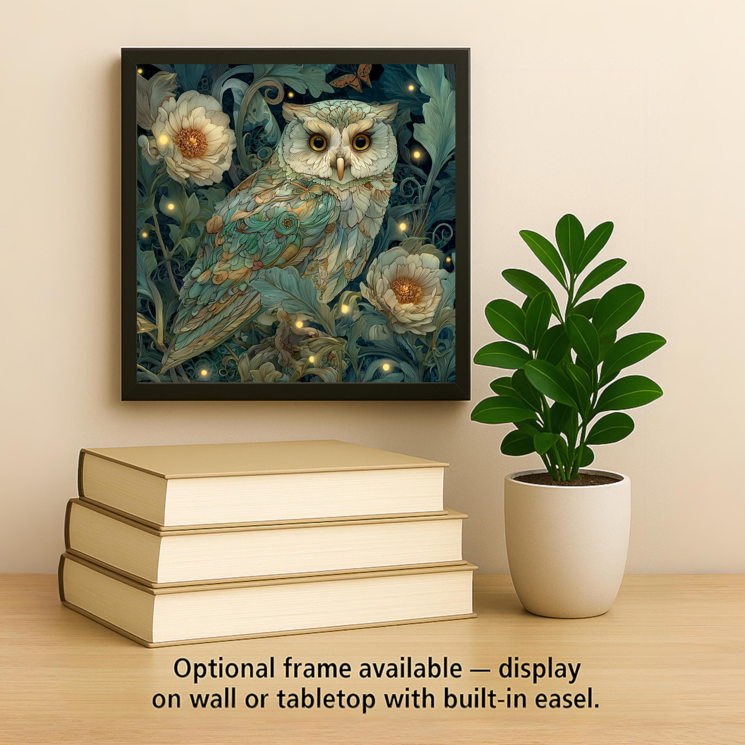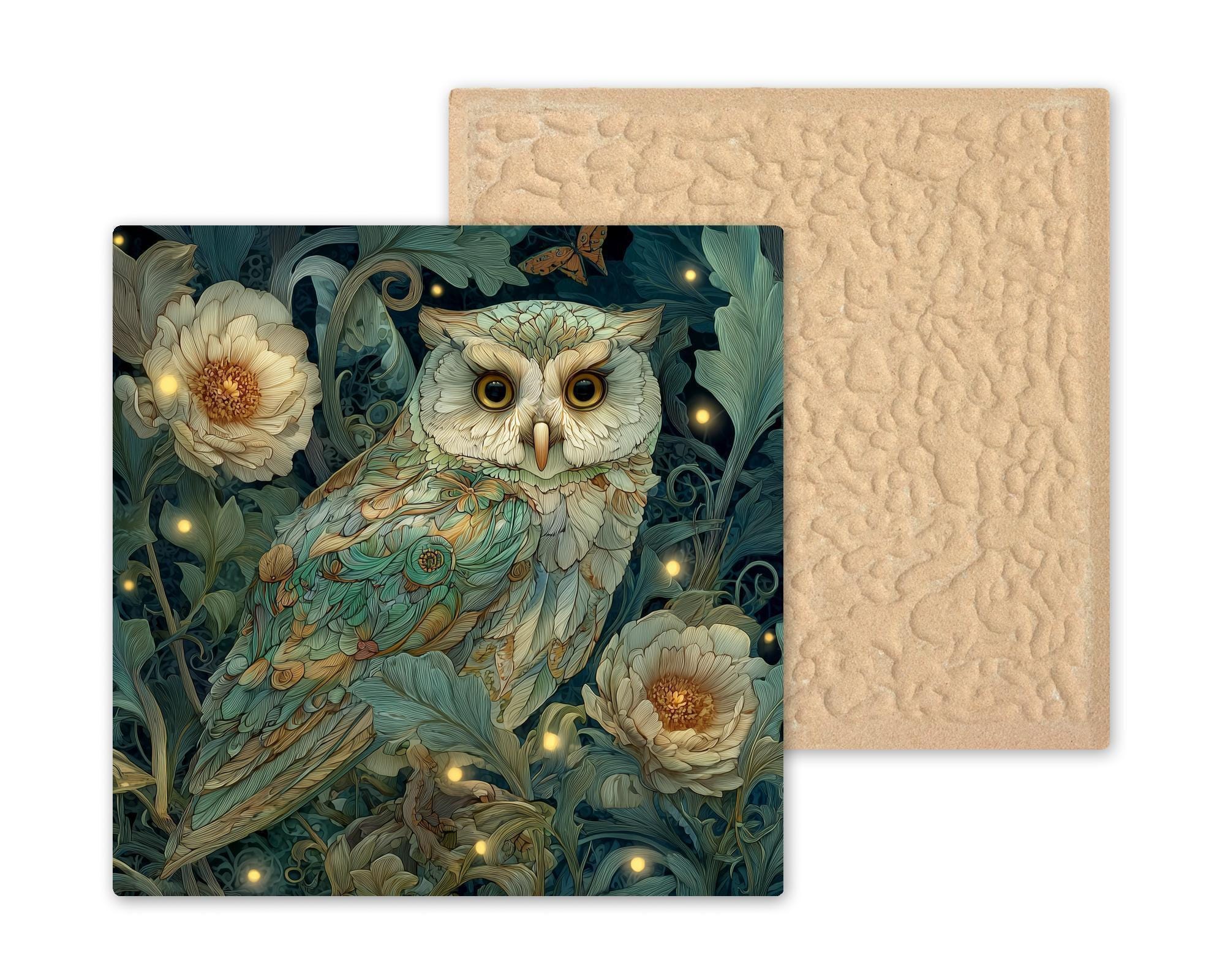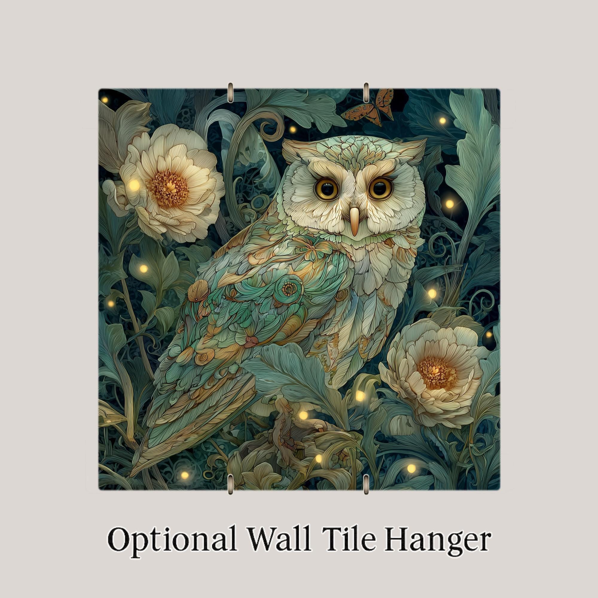 This owl wall decor tile works well as a statement piece or as part of a coordinated nature or animal art collection. It is ideal for gift giving and especially appealing to collectors of owl art, botanical decor, and nature-inspired home decor.