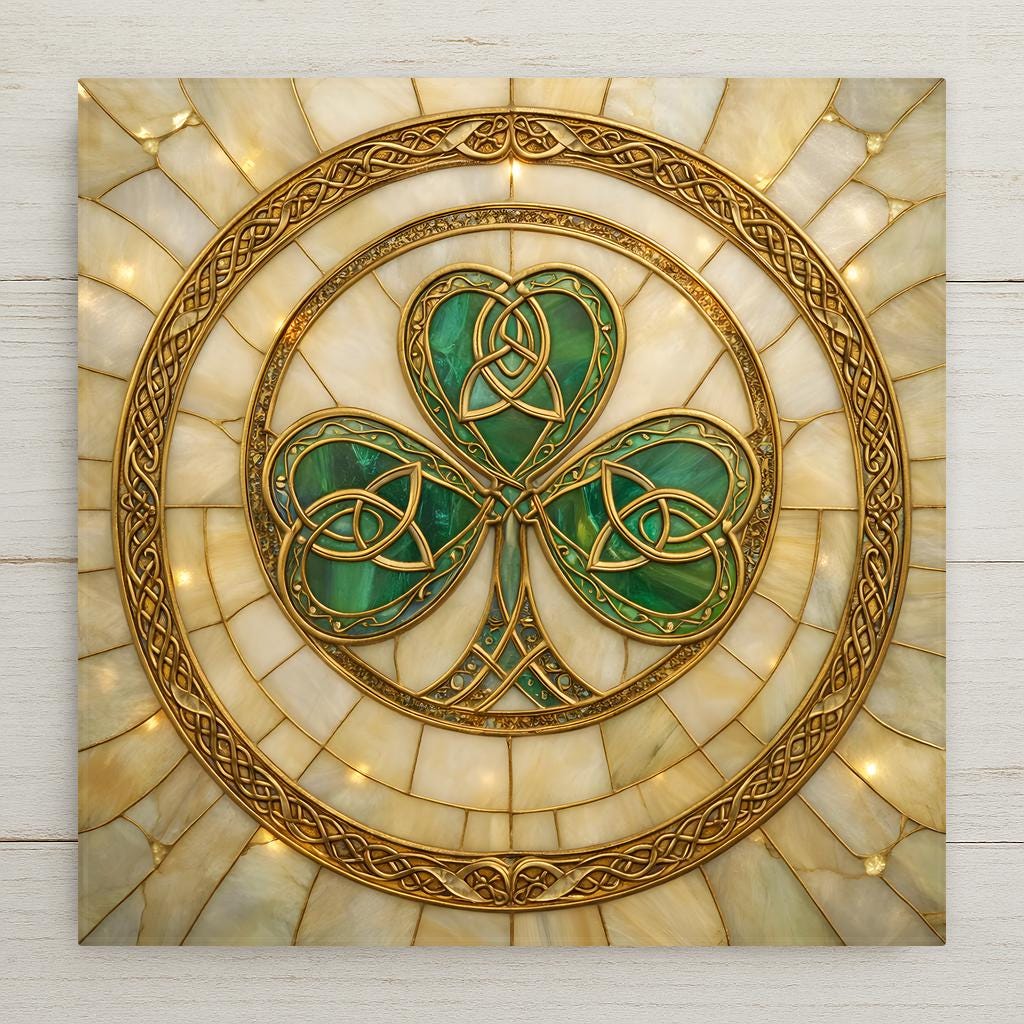 This Celtic shamrock wall art ceramic tile is part of a curated collection inspired by traditional symbols and stained glass–style artistry. The layered knotwork border and radiant color palette create a sense of depth and craftsmanship that elevates the piece beyond everyday decor.