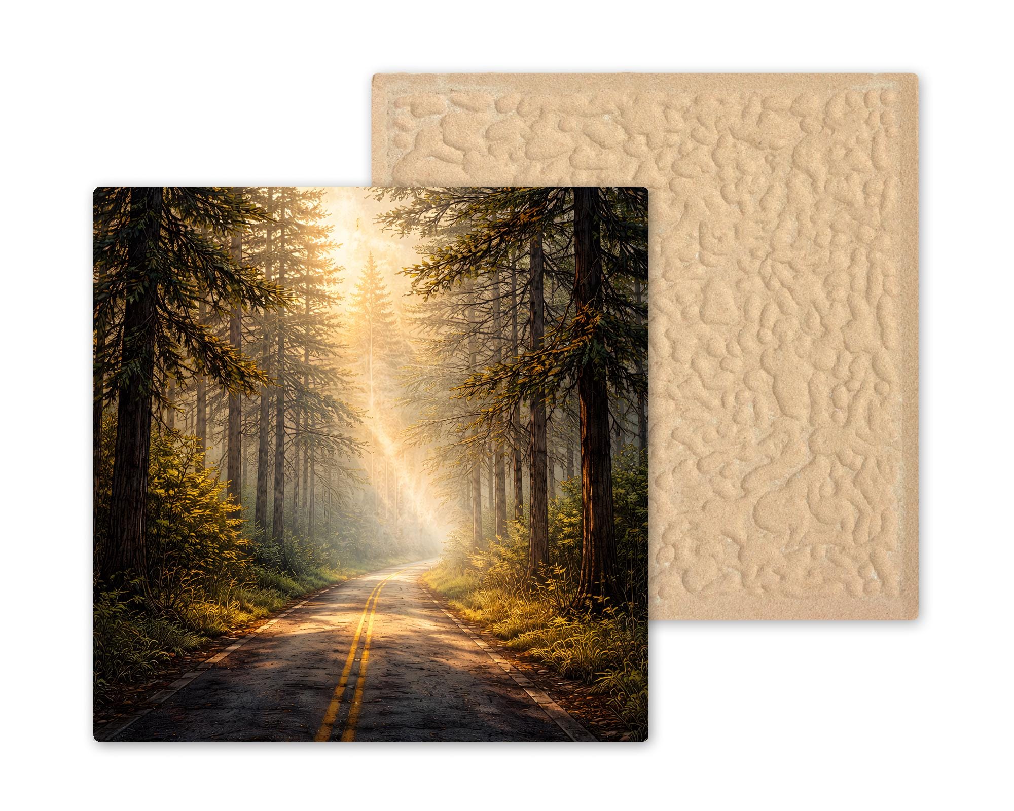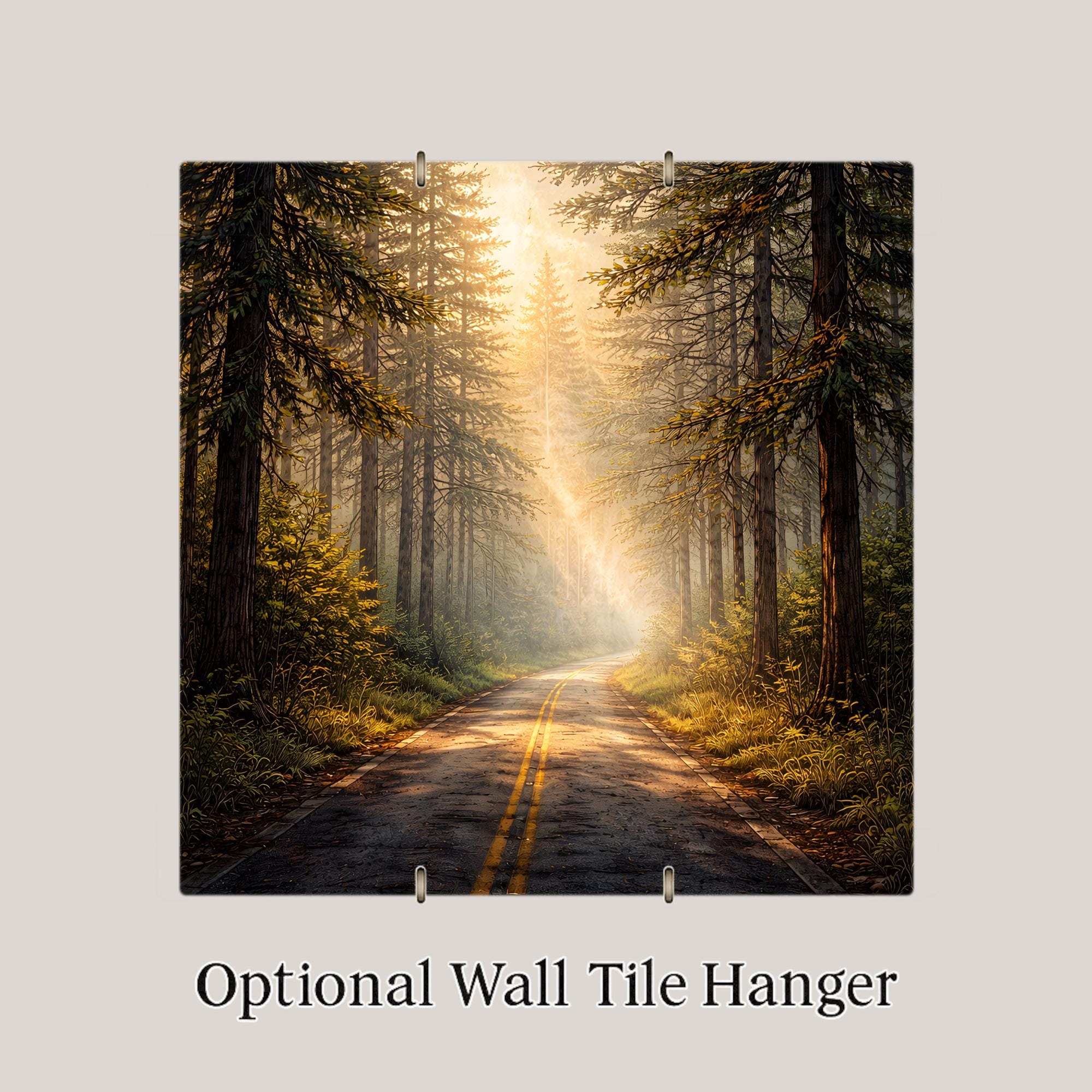 Display options make the tile adaptable to different environments. A tile wall hanger integrates it into a gallery wall, while an easel tile stand or premium frame option allows it to function as a tabletop or shelf focal point. This piece pairs naturally with other forest, landscape, or nature-themed tiles to build a cohesive visual collection.