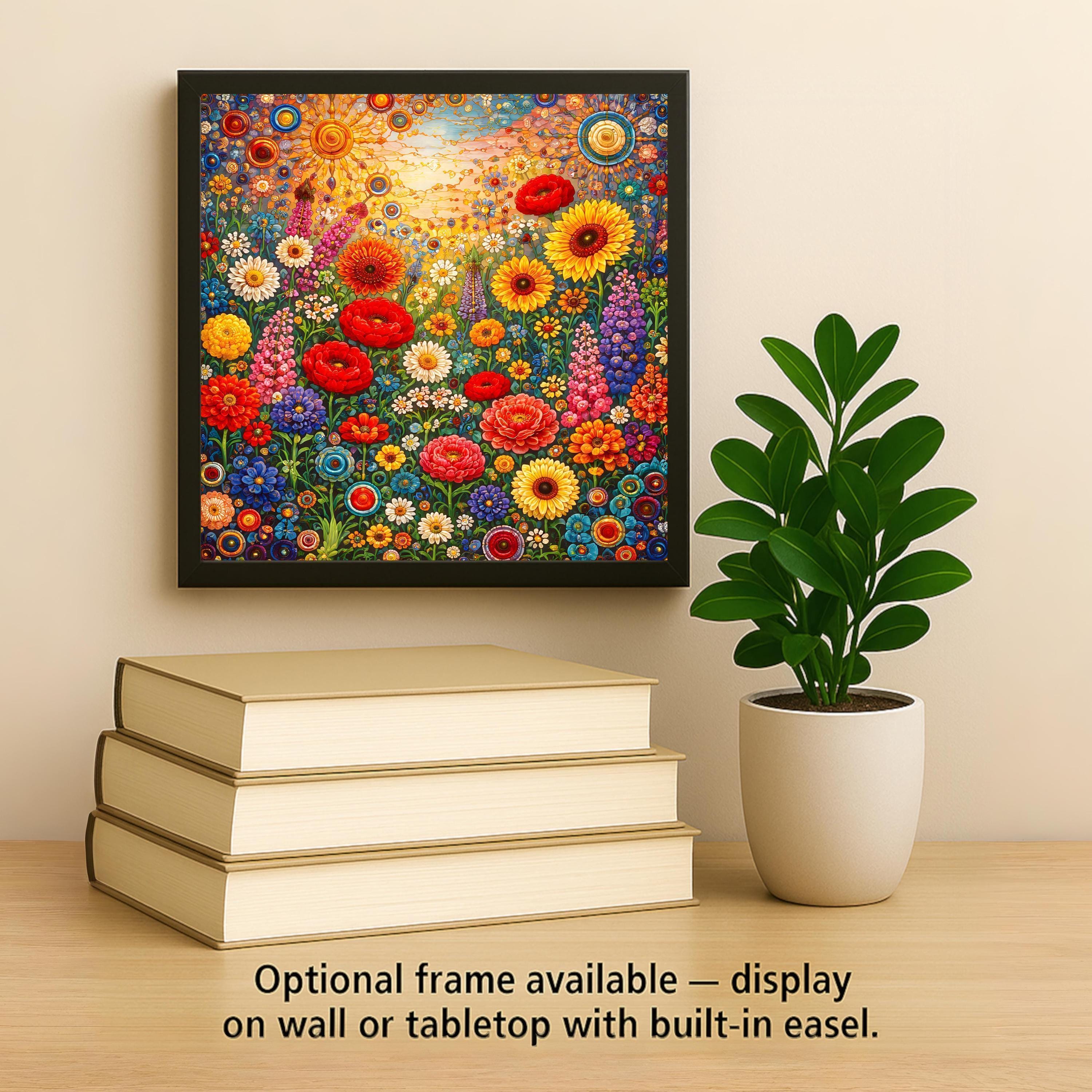 Rather than depicting a realistic landscape, the focus is on emotional response—how color, repetition, and organic shapes interact to create joy and visual flow. It’s botanical wall art meant to energize a space, not fade into the background.